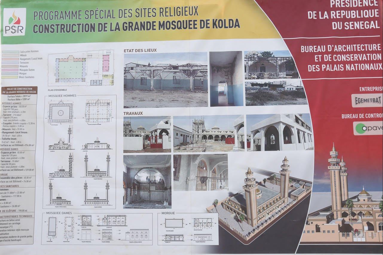 Le Chef de l’État Macky Sall s’est rendu, le samedi 24 décembre dans l’après-midi sur le chantier de la grande Mosquée de Kolda, lors de sa venue pour la Journée de l’Elevage.