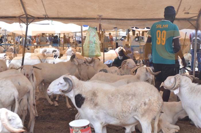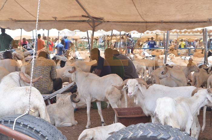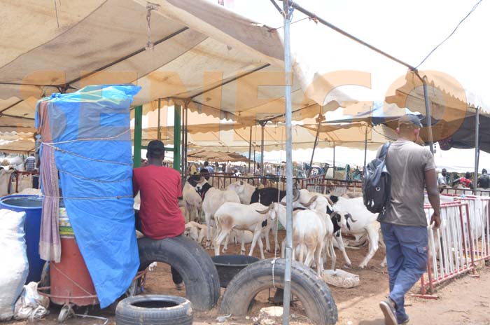 Pas très loin, les moutons du thiogal sont dans un enclos et attendent preneurs. Un client en pourparlers explique : « Je viens sonder les prix, mais je vais revenir après 18 heures voir si la tendance est à la baisse. »