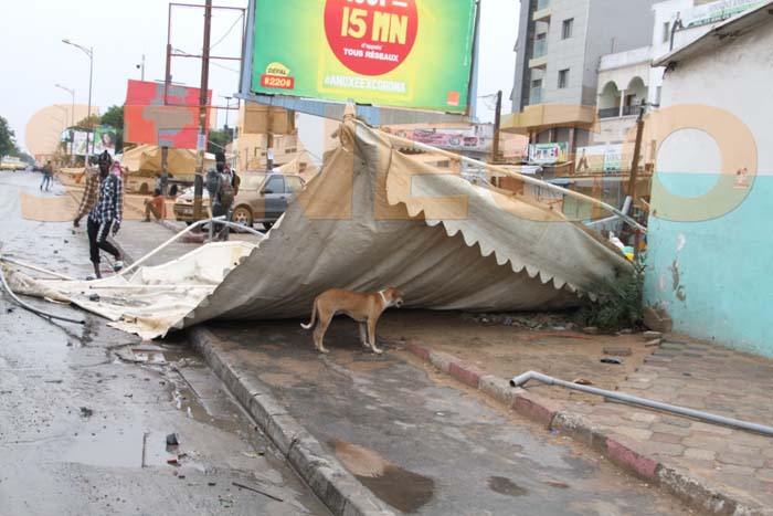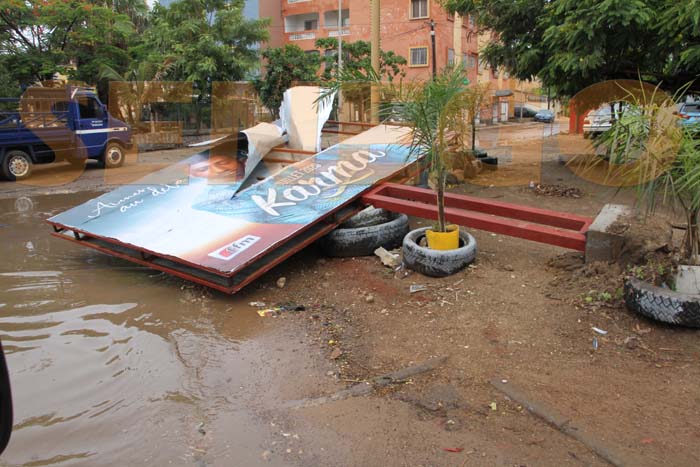 Ce mardi matin, la pluie a rendu la circulation difficile : tôles, zinc, bâches emportés par un vent violent. Des arbres et panneaux publicitaires déracinés, des véhicules endommagés, accidentés avec la chaussée arrosée …..