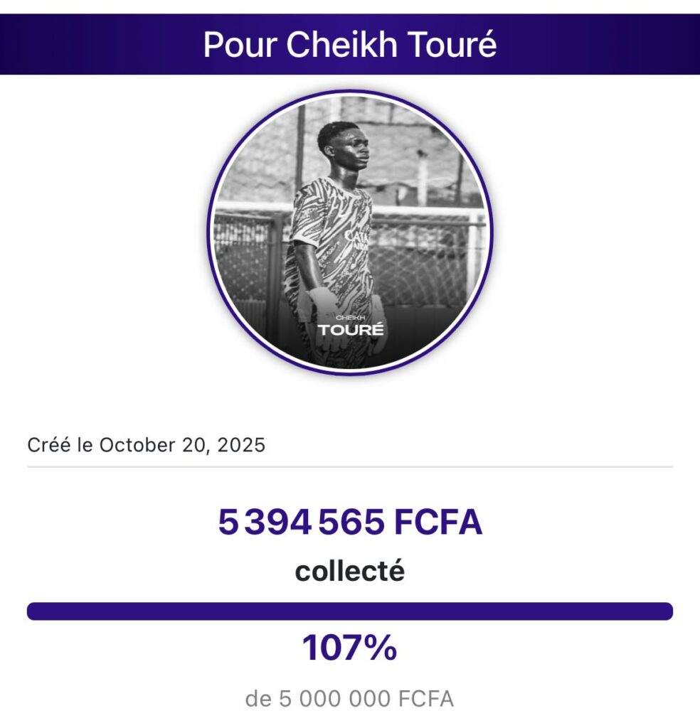 Suite au décès tragique du jeune footballeur Cheikh, l’influenceur Mame Balla Mbow a lancé une cagnotte en ligne de cinq millions de francs CFA ( 5 millions) en faveur de la famille du défunt, et plus particulièrement la mère de Cheikh. Grâce à l’engagement et à la mobilisation en ligne, l’objectif a été rapidement atteint. Ce geste vise à soulager la douleur de la famille et à lui apporter un soutien financier en cette période difficile.