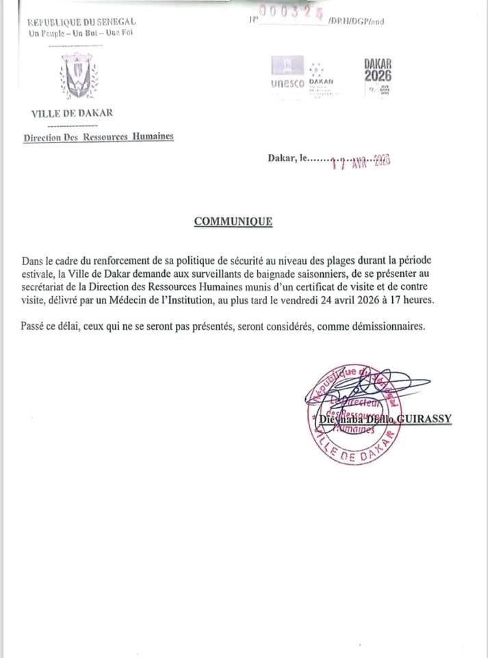 Dans un communiqué publié, les surveillants de baignade saisonniers sont invités à se présenter à la Direction des Ressources Humaines dans le cadre du renforcement du dispositif de sécurité sur les plages durant la période estivale.