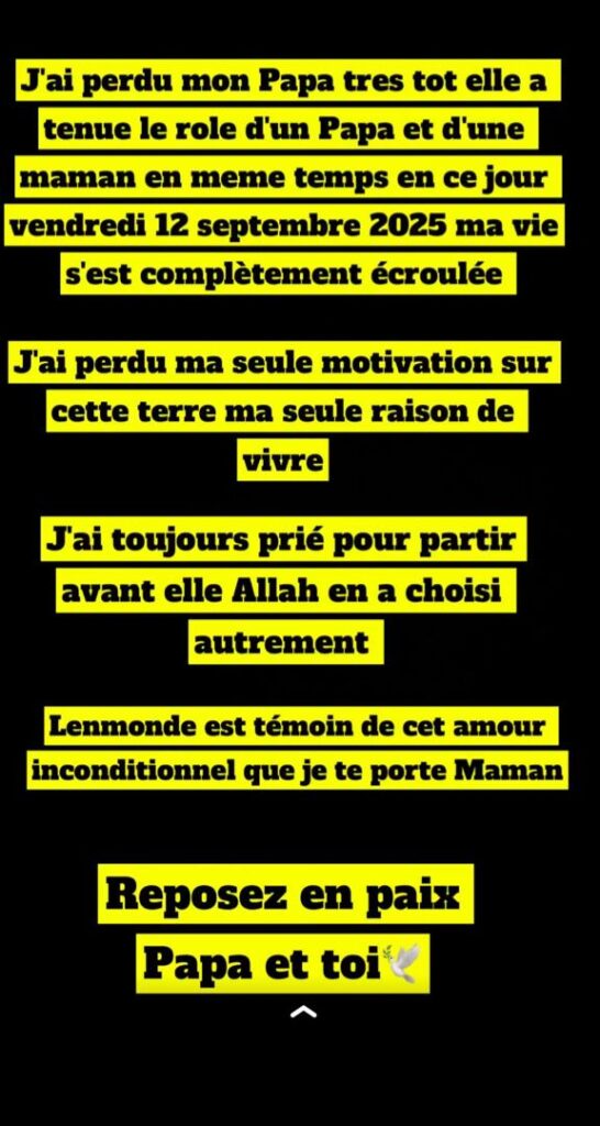 L’influenceuse Adja Everywhere est dévastée par le rappel à Dieu de sa mère. Sur son compte Snapchat, Adja pleure celle qui a joué à la fois le rôle de mère et de père après le décès de son père. La tristesse transparaît dans ses mots : une période très difficile pour elle. »