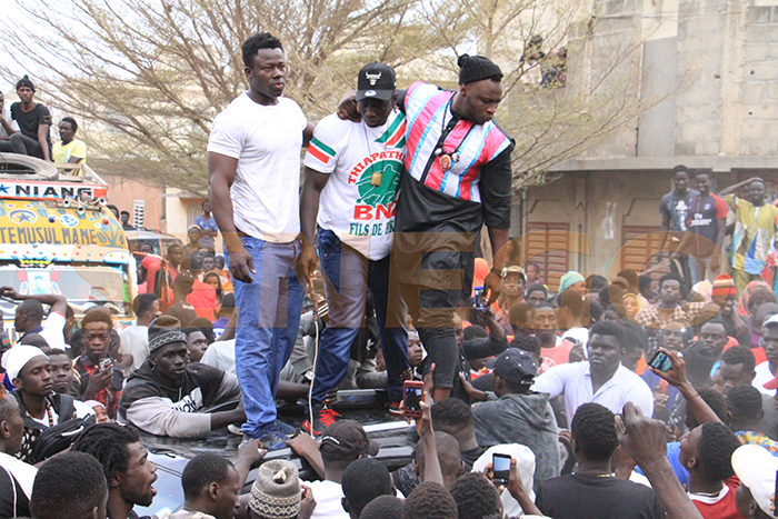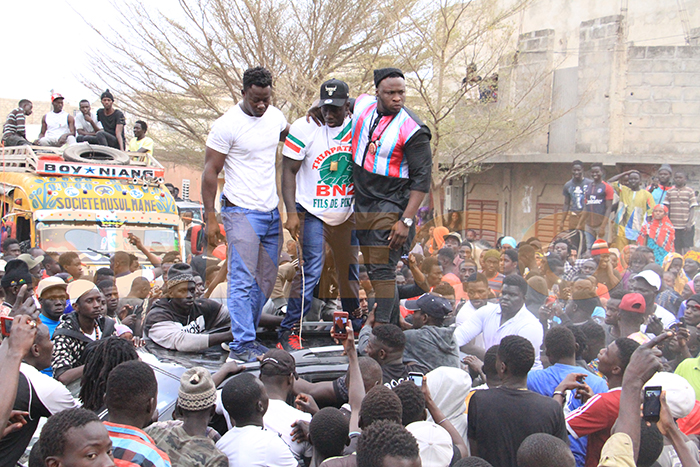 Après la victoire de Boy Niang sur Sa This, dimanche dernier, le fils de De Gaule présente le drapeau aux lutteurs pikinois. Et tous, rayonnés d’aise, et revigorés par les fans déchaînés, se sont congratulés pour vivre à fond, à leur manière la pikinité.