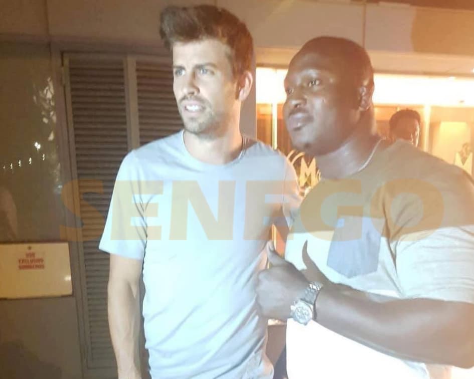 Modou Lo pose avec Gerard Piqué, défenseur central international espagnol du Fc Barcelone. Le prochain adversaire du Roi des arènes, Eumeu Sène, est un grand supporter des Catalans de Lionel Messi.