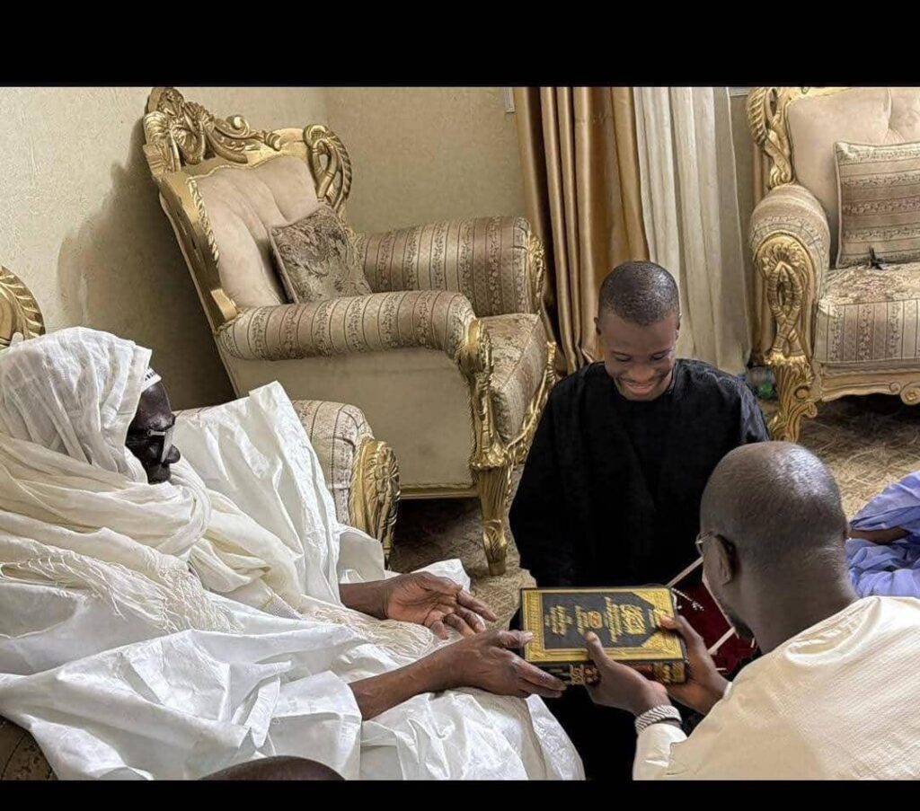 Le ministre de l’Intérieur et de la Sécurité publique, Me Mouhamadou Bamba Cissé, a rendu une visite privée au Khalife général des Mourides, Serigne Mountakha Mbacké, à Touba. Ce moment a été immortalisé par de beaux clichés sur lesquels on voit le ministre recevoir des mains du Khalife un cadeau : le Saint Coran, un geste est hautement symbolique. Le Khalife a également formulé des prières pour le ministre.