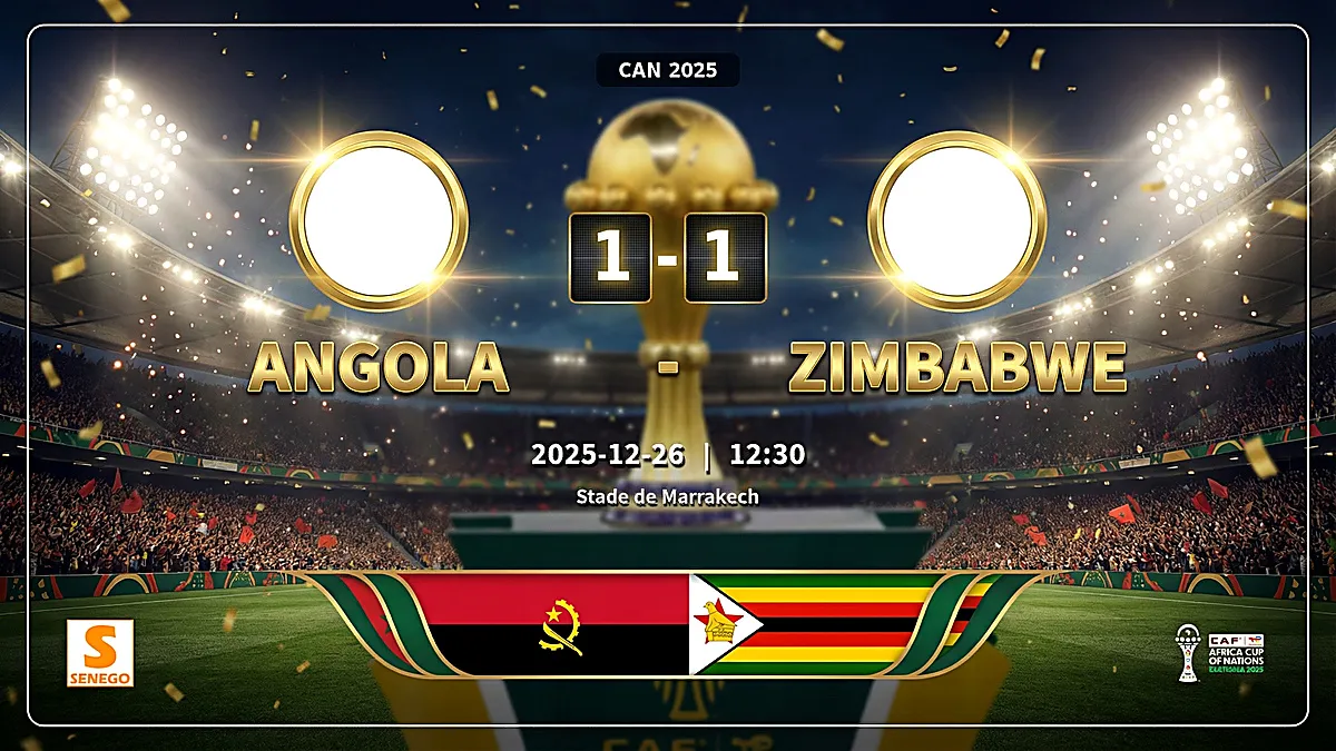 Ce vendredi 26 décembre 2025, le Stade de Marrakech a été le théâtre d’une confrontation âprement disputée entre l’Angola et le Zimbabwe pour le compte de la phase de groupes de la Coupe d’Afrique des Nations 2025 au Maroc. Dans ce match crucial du Groupe B, où les deux formations cherchaient à débloquer leur compteur de points après des débuts difficiles, les Palancas Negras et les Warriors se sont quittés sur un score de parité (1-1). Un résultat qui permet aux deux équipes d’inscrire leur premier point dans la compétition, derrière l’Égypte et l’Afrique du Sud.