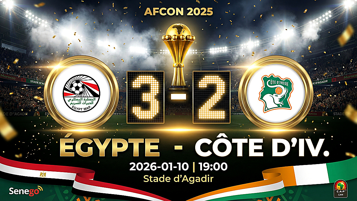 Quel scénario incroyable au Stade d’Agadir ! Ce quart de finale de la Coupe d’Afrique des Nations 2025 restera sans doute gravé dans les mémoires comme l’un des plus grands thrillers de cette édition marocaine. Alors que l’on pensait l’affaire pliée et les Éléphants enterrés sous une avalanche de buts, la rencontre a basculé dans l’irrationnel lors des vingt dernières minutes. Au bout du suspense et de la souffrance, c’est bien l’Égypte qui valide son ticket pour les demi-finales en s’imposant 3-2 face à une Côte d’Ivoire héroïque mais trop tardive dans sa réaction.