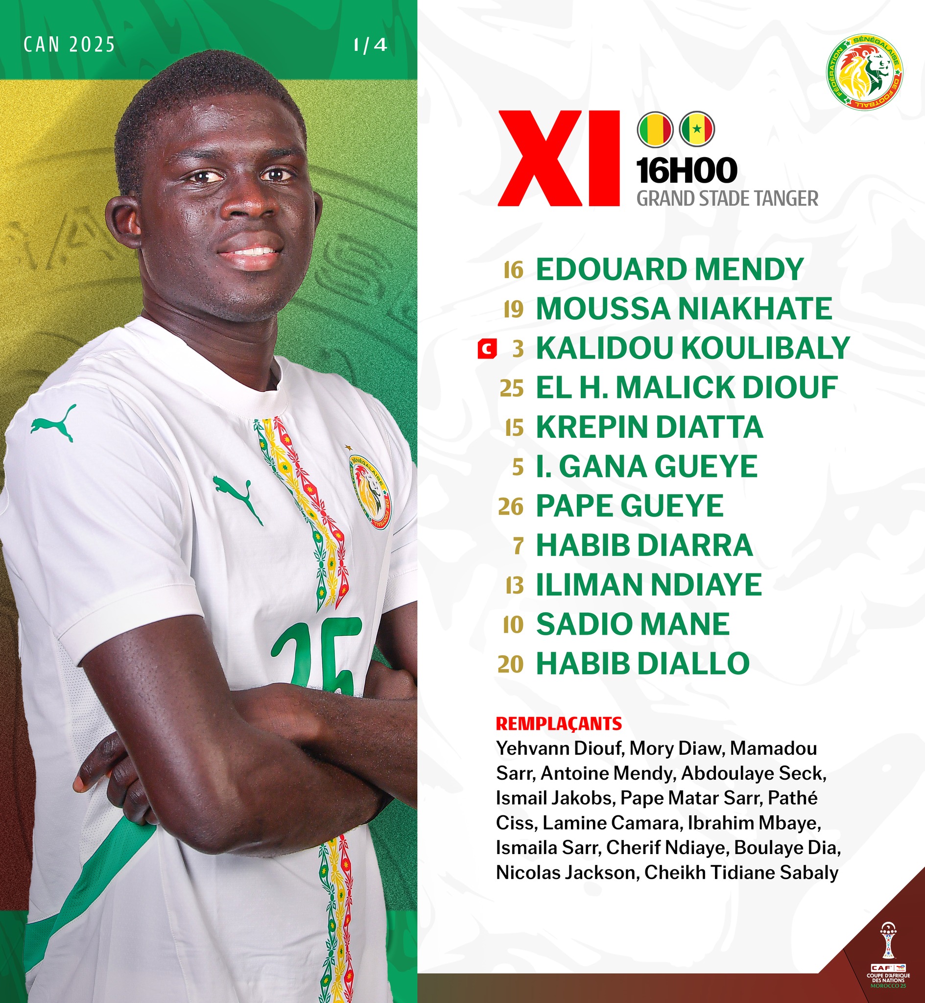 Fidèle à ses principes de solidité et d’équilibre, le Sénégal s’appuie sur une ossature expérimentée, mêlant cadres confirmés et jeunes talents en pleine ascension. Dans les buts, Édouard Mendy conserve la confiance du staff technique. La défense est emmenée par le capitaine Kalidou Koulibaly, entouré de Moussa Niakhaté, El Hadji Malick Diouf et Krépin Diatta.