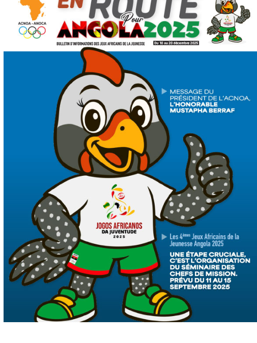 A rappeler que les 4ᵉ Jeux Africains de la Jeunesse se tiendront à Luanda, en Angola, du 10 au 20 décembre 2025. Première nation lusophone à accueillir l’événement, le pays célèbre cette année le 50ᵉ anniversaire de son indépendance.