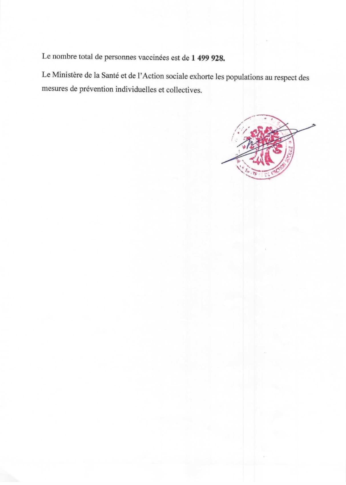 A ce jour 87.295 cas ont été déclarés positifs, dont 85.021 guéris, 1 968 décès et 305 sous traitement. 1.499.928 personnes ont été vaccinées au Sénégal.