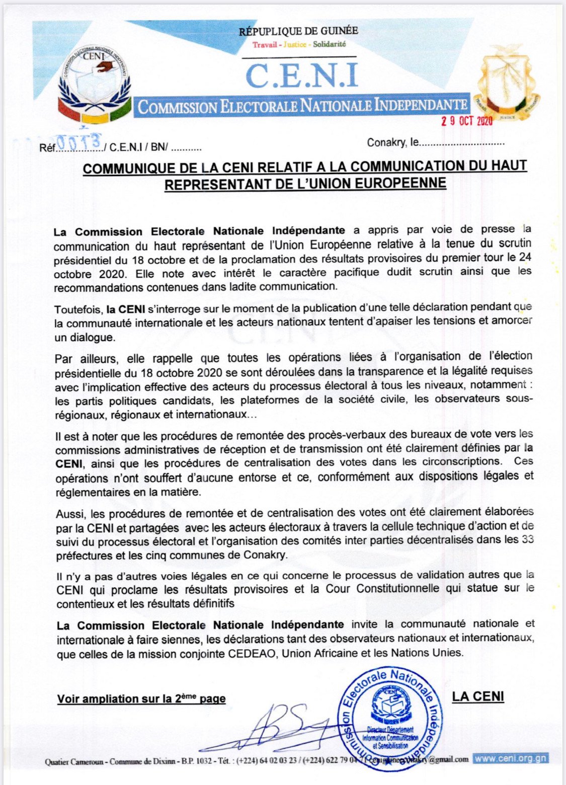 Retrouvez l’intégralité de la réponse du CENI
