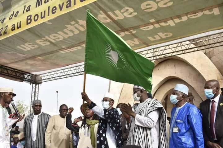 Et aujourd’hui en Afrique, singulièrement dans l’ex-empire colonial, quel champ de bataille peut être plus important et riche en symboles que le Mali ? Aucun, assurément. Voilà pourquoi, jeunes panafricanistes et fiers de l’être, nous sommes venus témoigner de manière pratique notre solidarité au peuple frère malien en lutte, sous la direction du Président Assimi Goita, pour sa deuxième et authentique indépendance. À travers nos modestes personnes, toute l’Afrique vous salue car elle a bien conscience que votre cause est celle de tout un continent. Nous avons marché jusqu’ici pour écrire avec nos sandales, sur les sables brûlants du Sahel, notre foi inébranlable en l’unité politique africaine. Nous avons marché pour servir la cause de l’intégration économique africaine. Il était temps de dire non, par des actes significatifs, aux frontières insensées qui ont dépecé l’Afrique à Berlin au XIXème siècle et laissent son corps aujourd’hui encore parcouru de vilaines cicatrices.