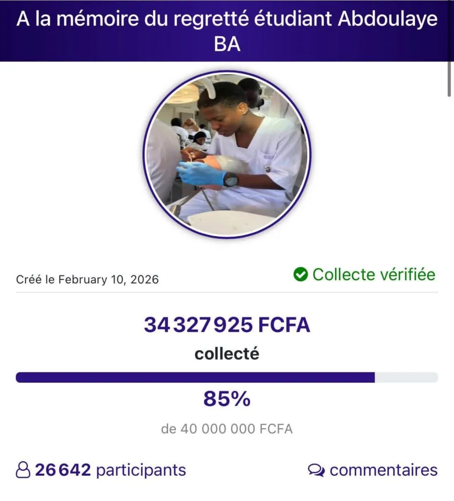 C’est une mobilisation qui témoigne de la place qu’occupait le défunt au sein de la communauté estudiantine. L’Amicale des étudiants de la Faculté de médecine, de pharmacie et d’odontologie a pris l’initiative d’organiser une collecte de fonds pour assister les proches d’Abdoulaye Ba, et particulièrement sa mère. Selon les éléments relayés par Kawtef, les organisateurs ont souhaité poser un acte concret pour honorer la mémoire d’un jeune homme décrit comme un « porteur d’espoir », laissant derrière lui « une maman brisée » et « des rêves interrompus ».