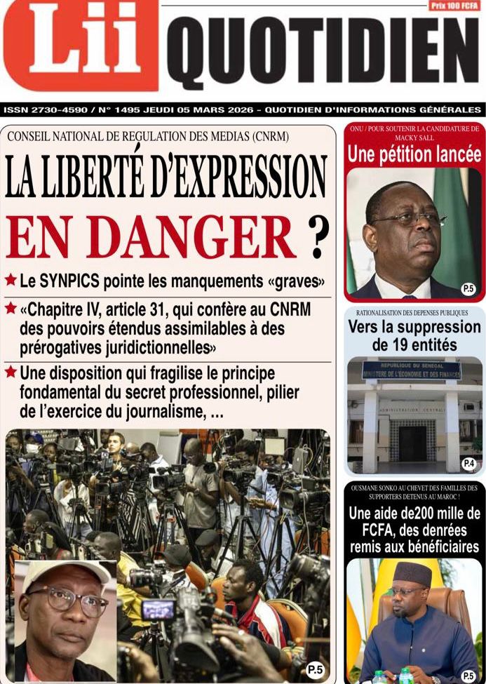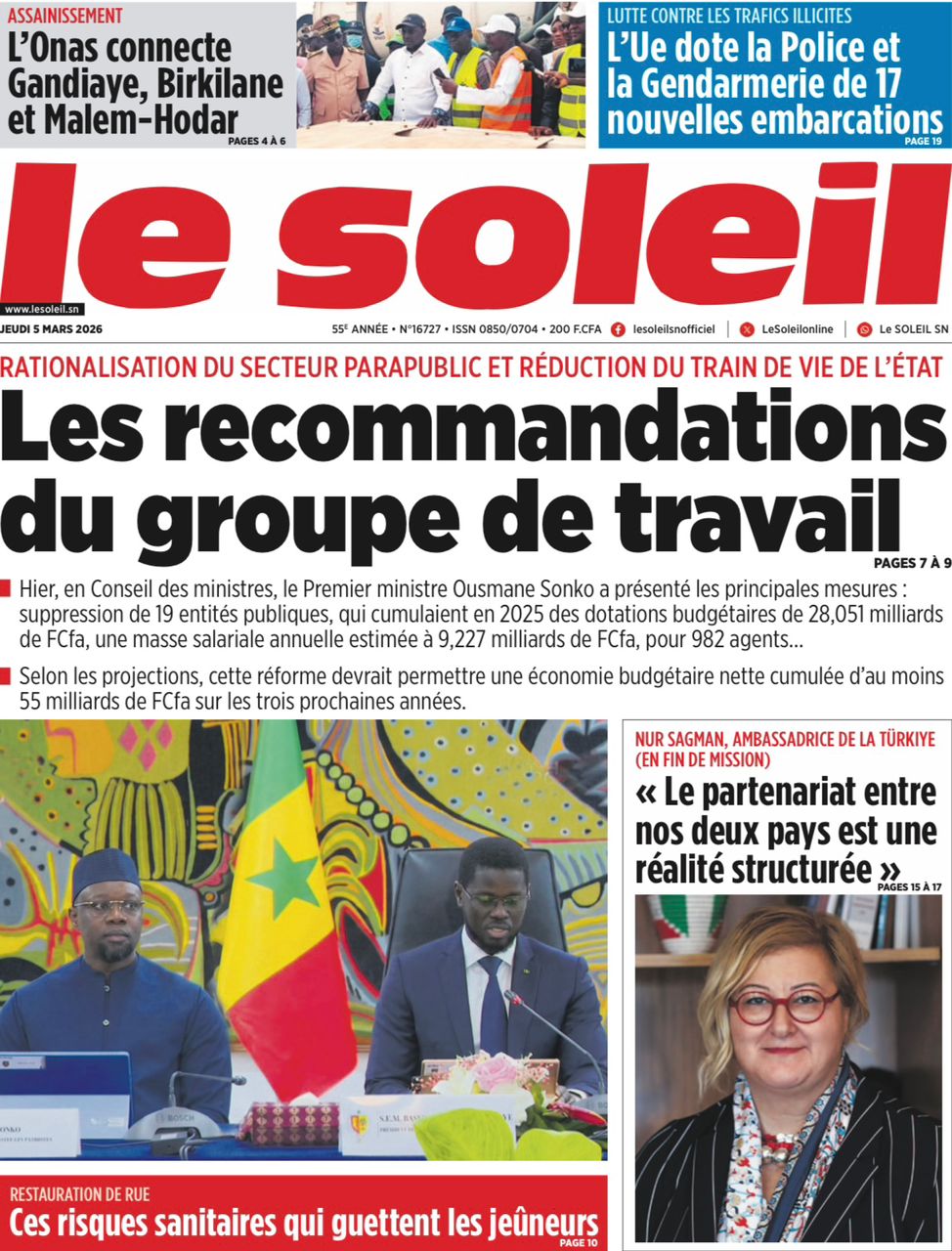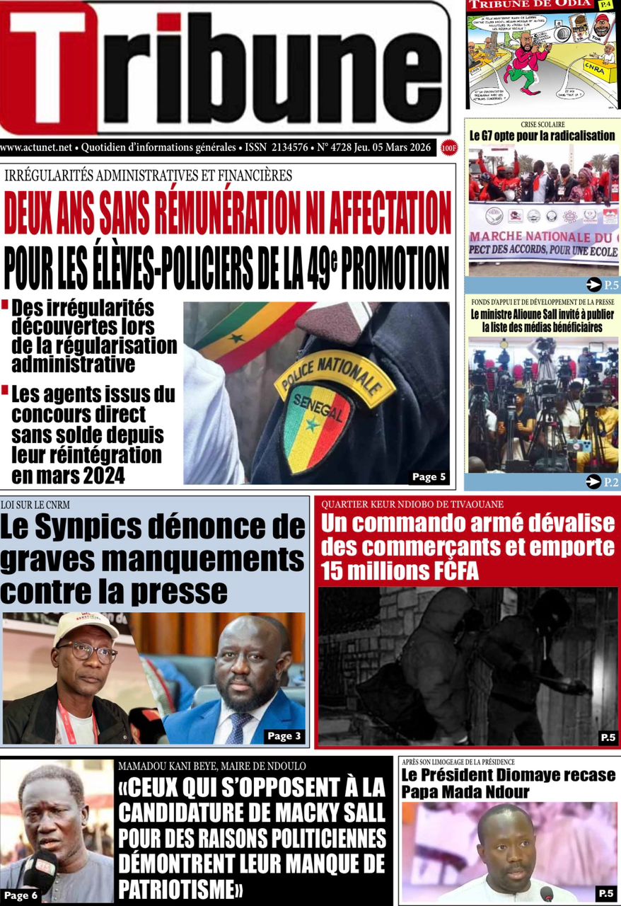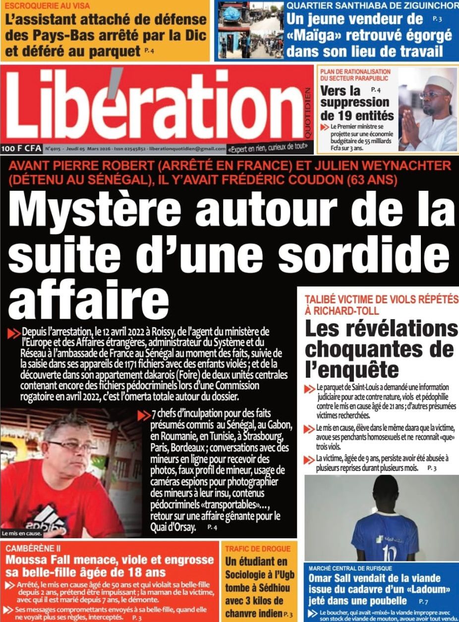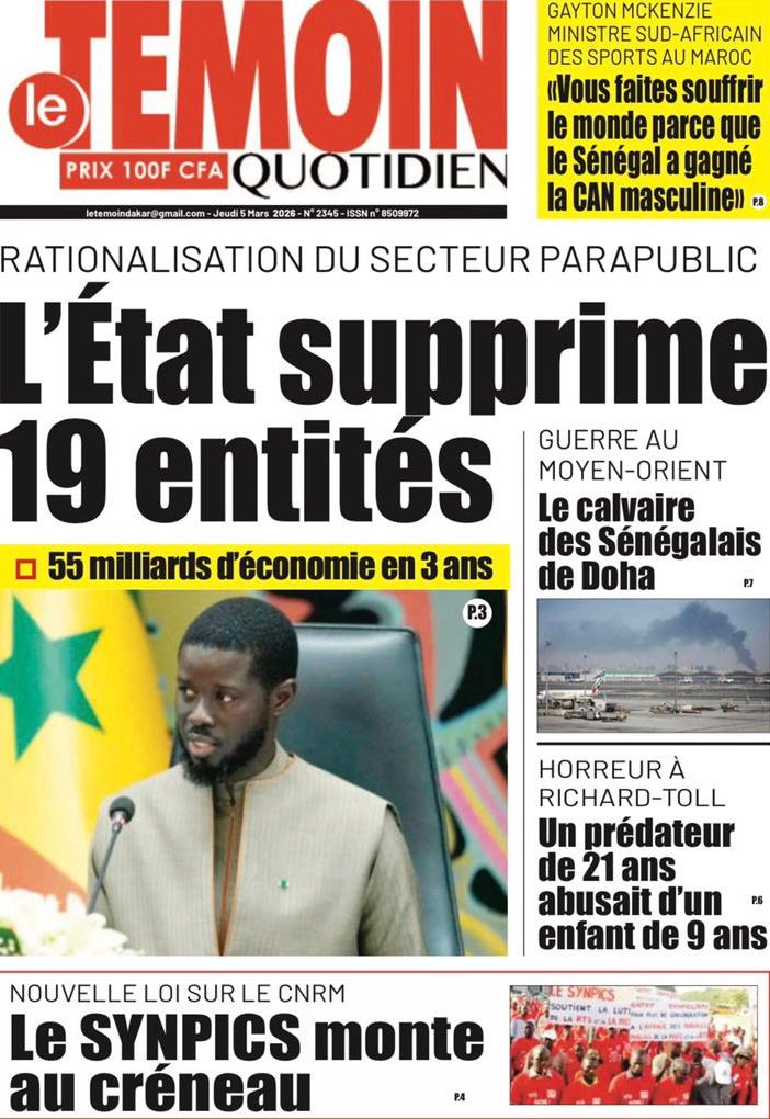 Découvrez les Unes des journaux sénégalais du jeudi 05 mars 2026