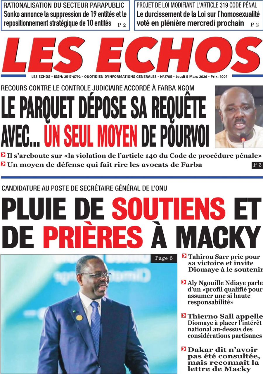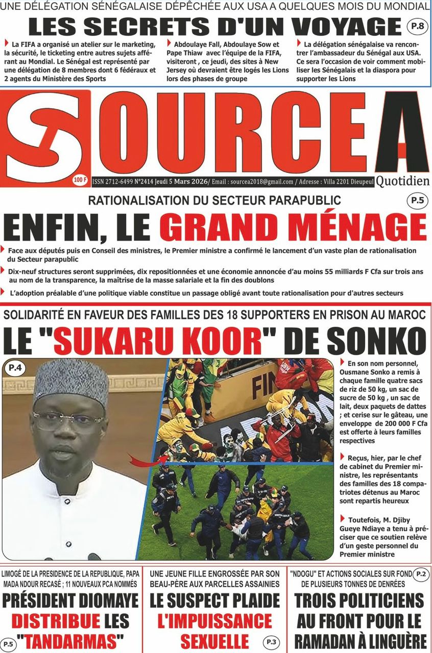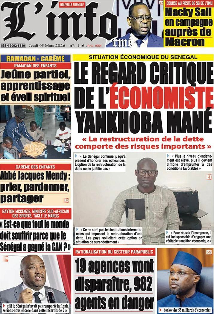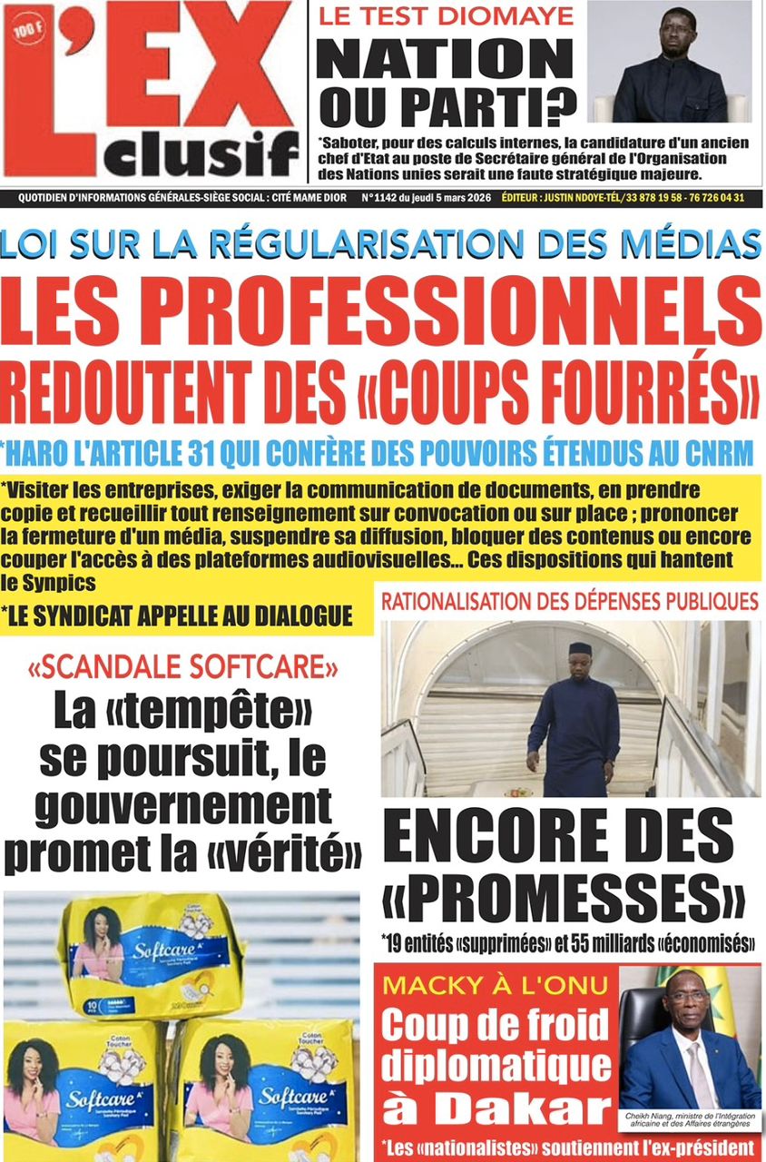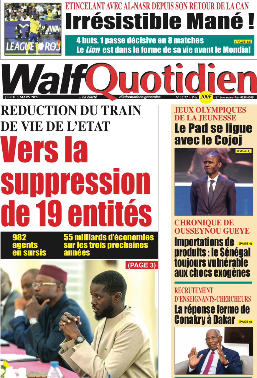 Découvrez les Unes des journaux sénégalais du jeudi 05 mars 2026