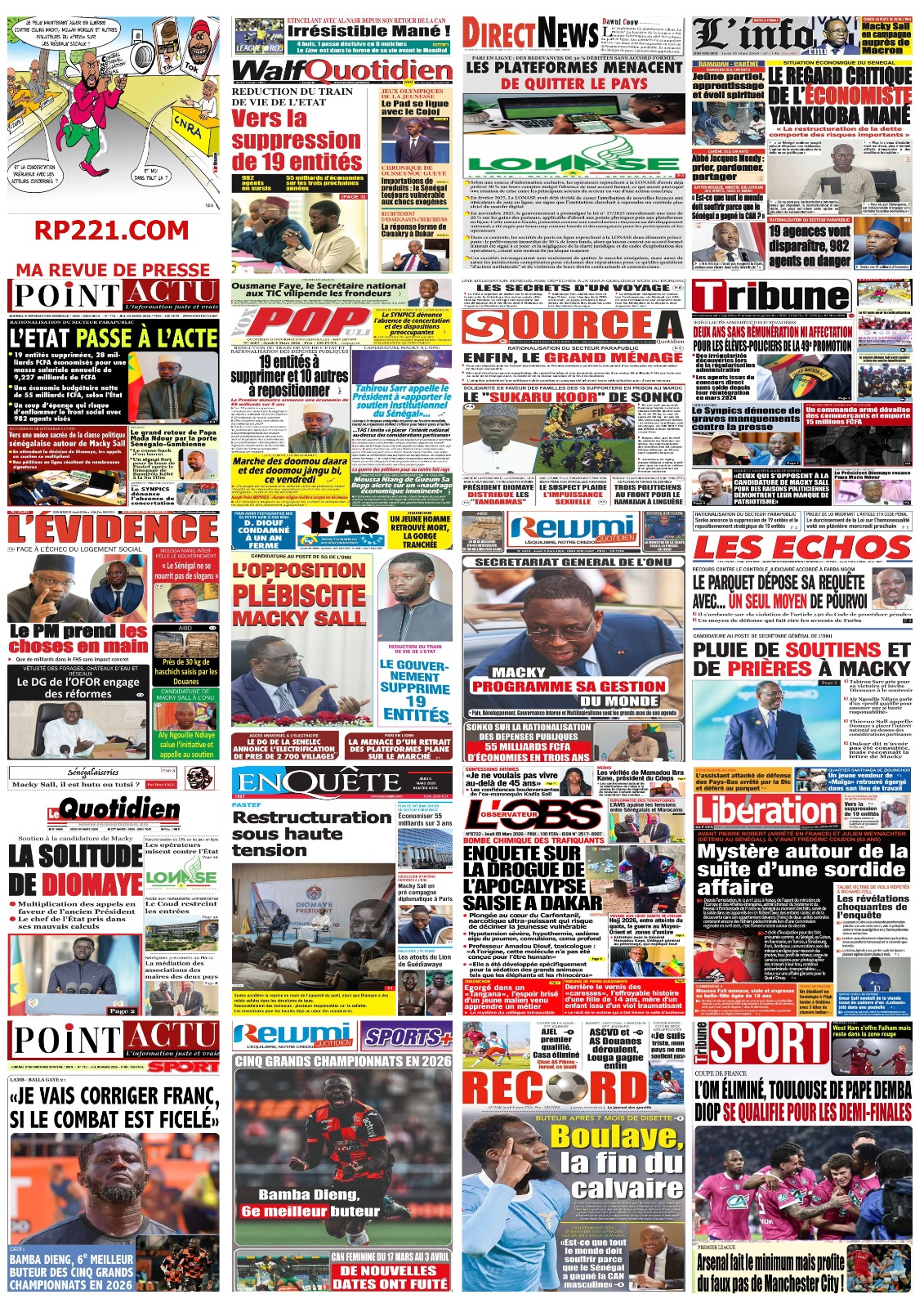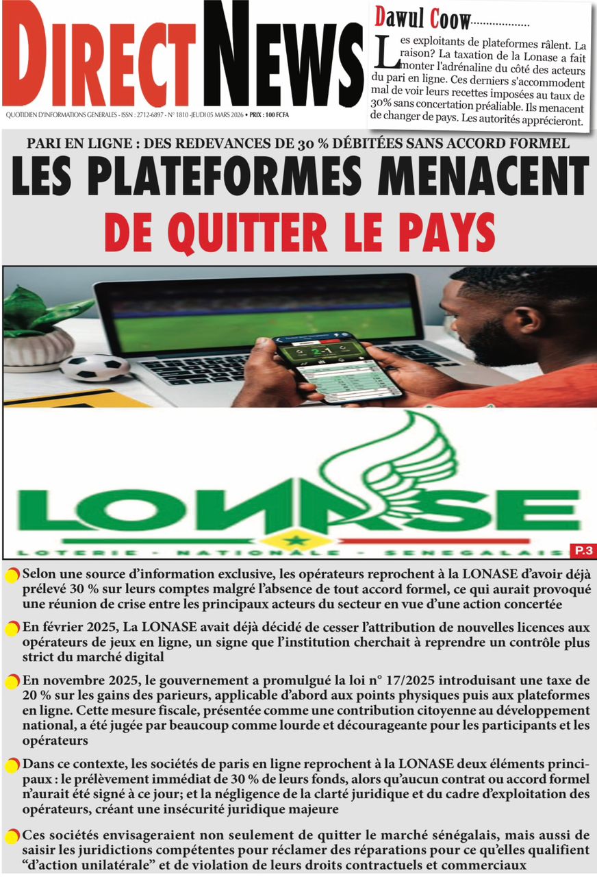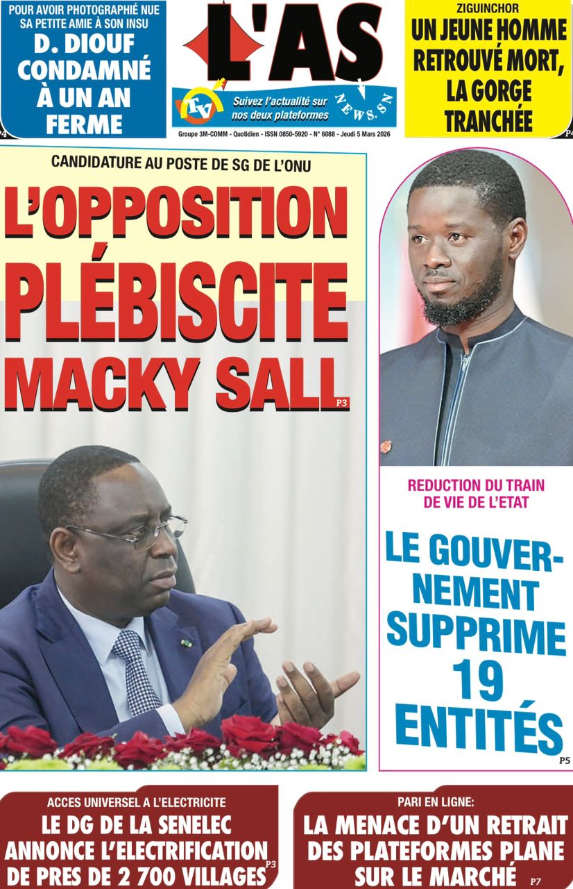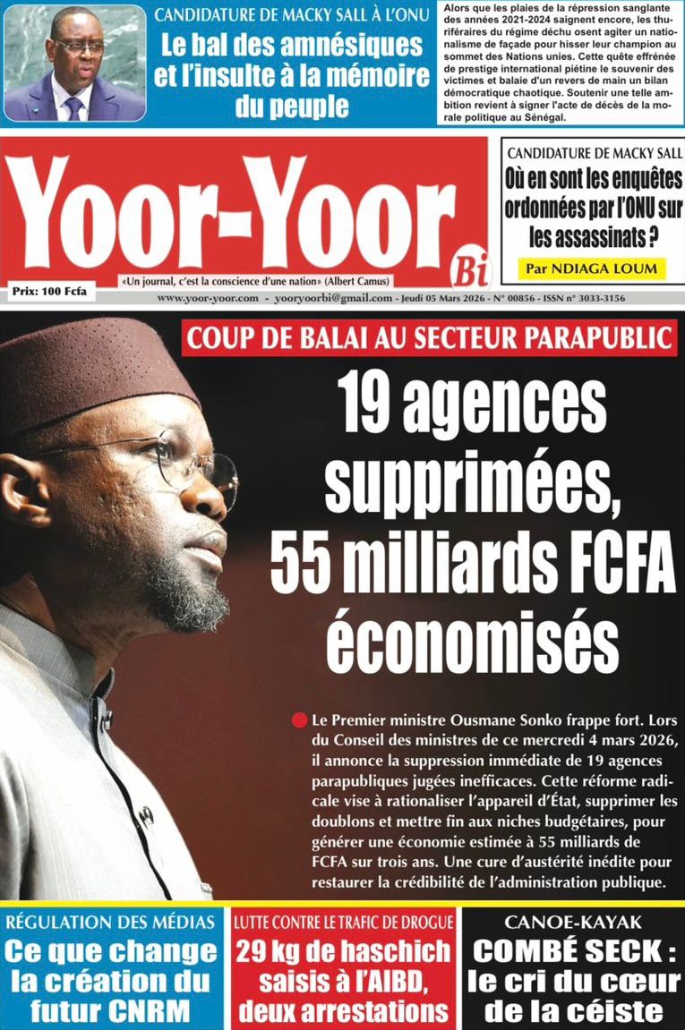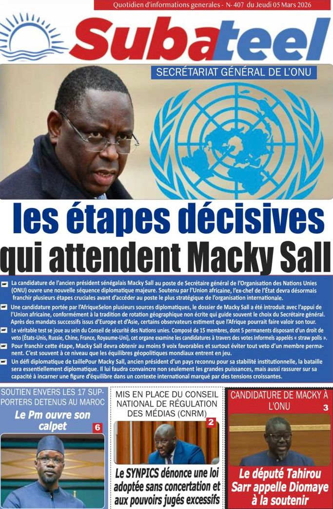 Découvrez les Unes des journaux sénégalais du jeudi 05 mars 2026