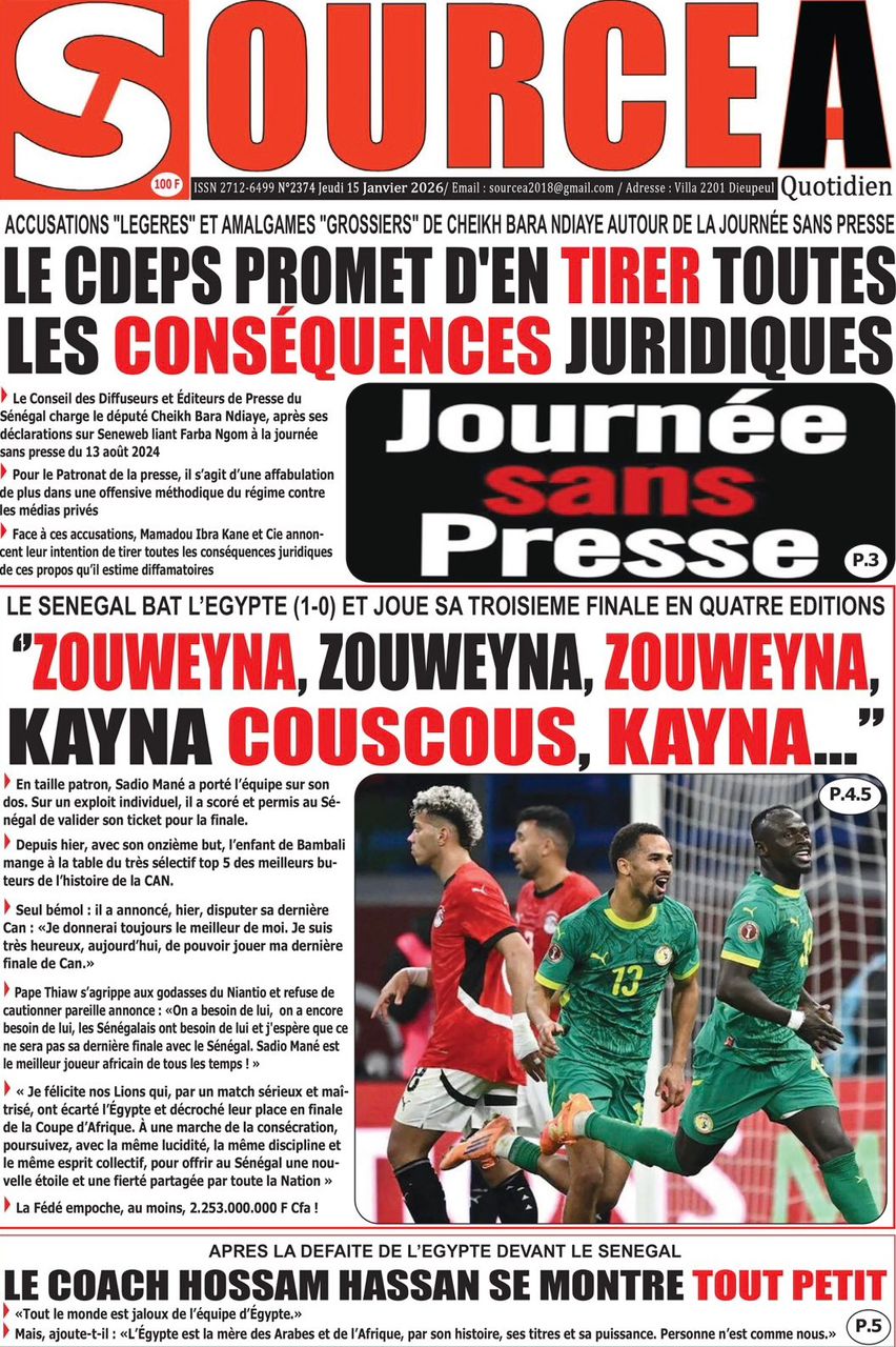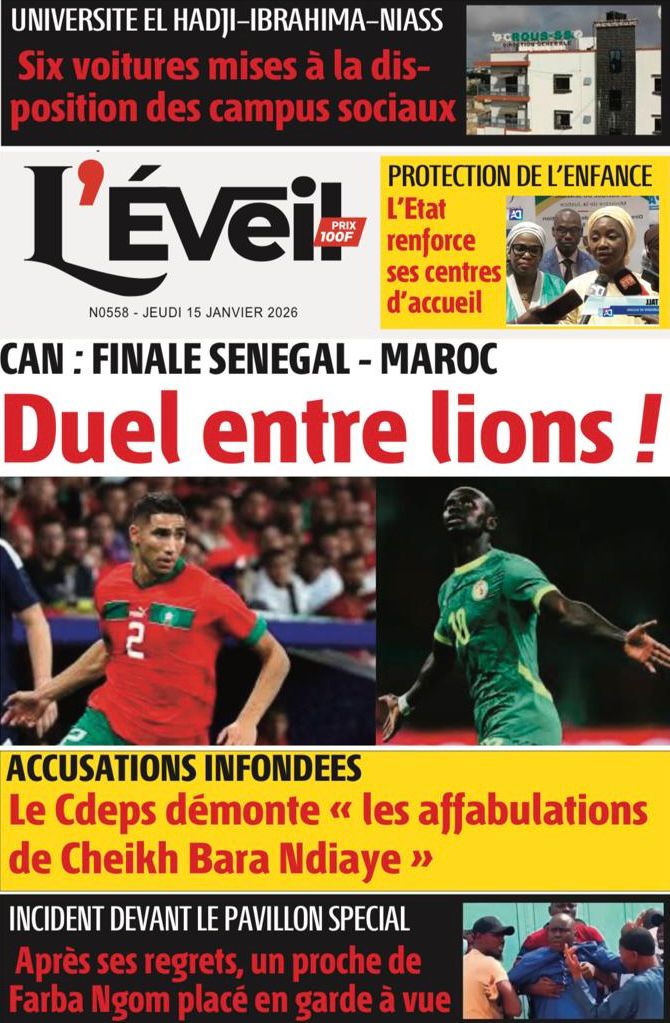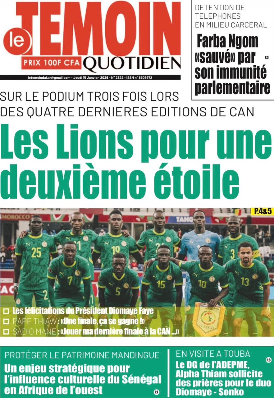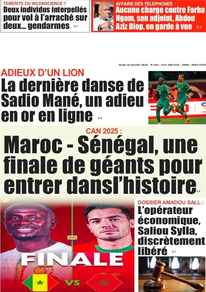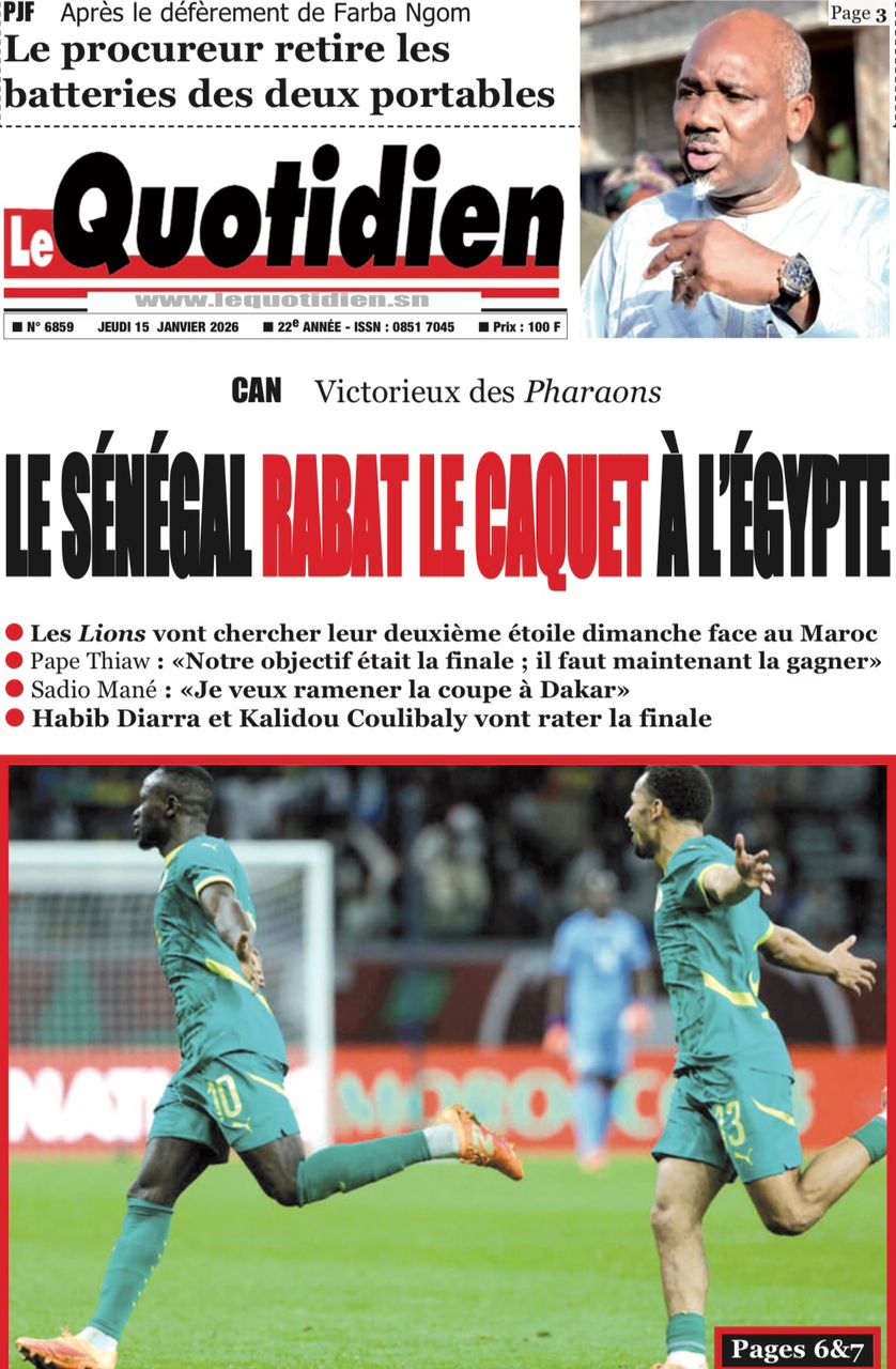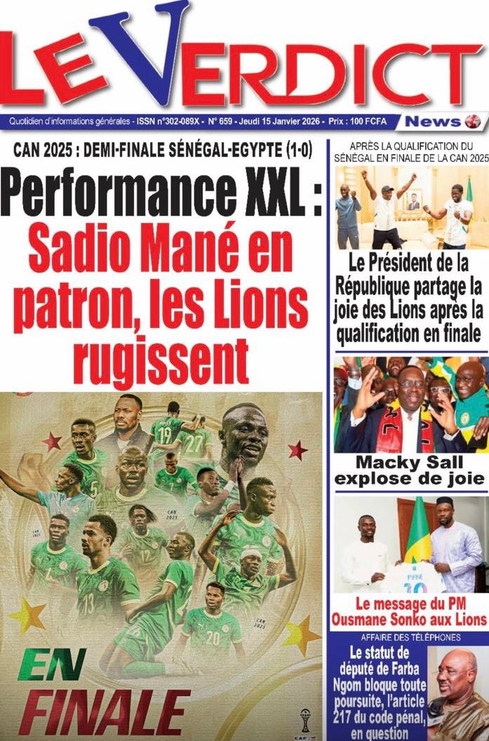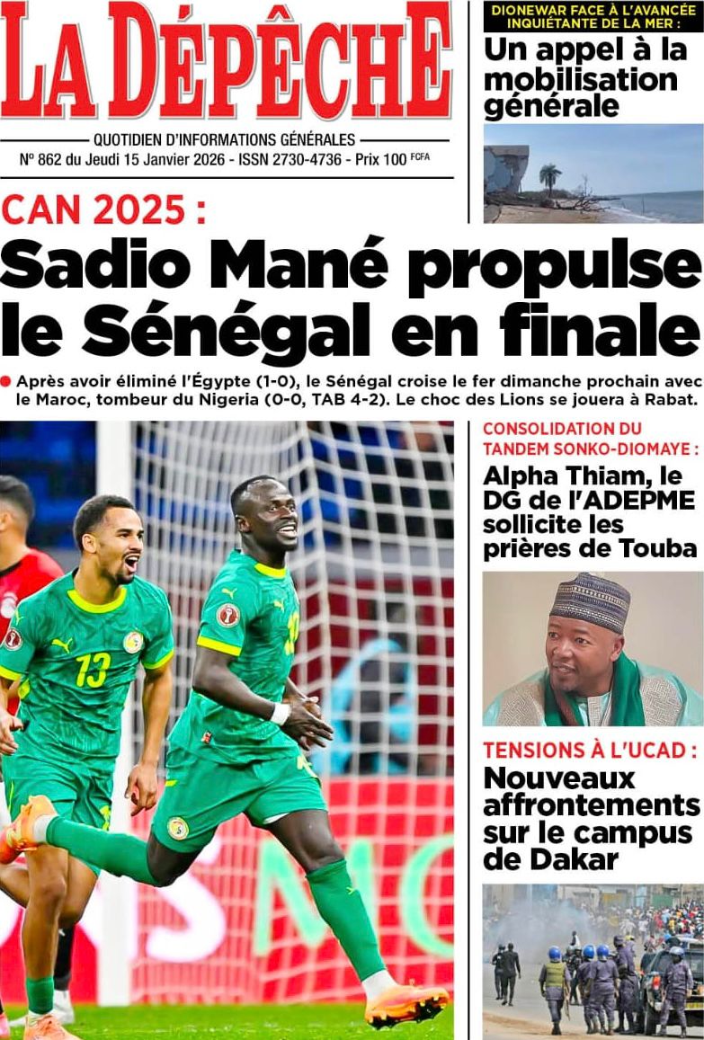 Découvrez les Unes des journaux sénégalais du jeudi 15 janvier 2026