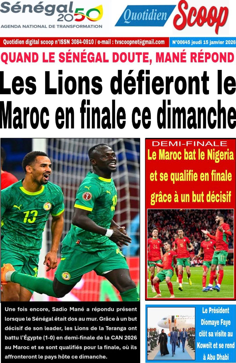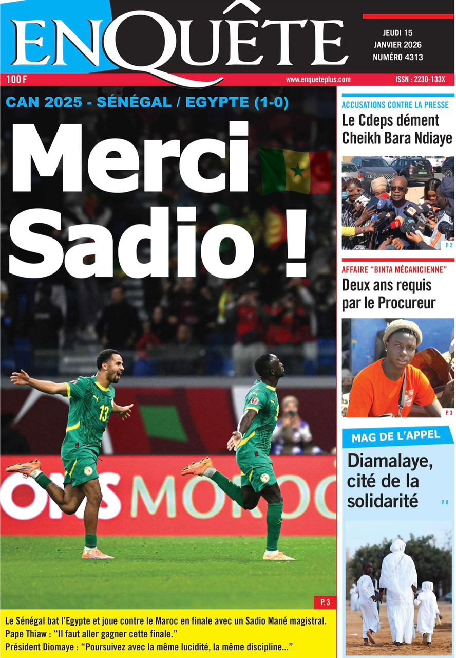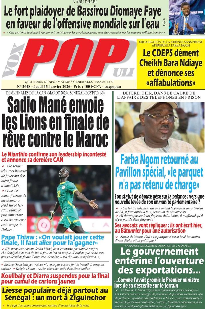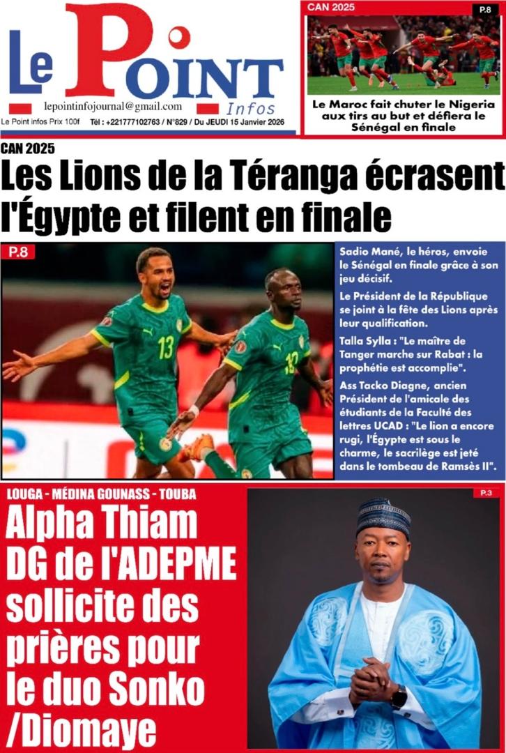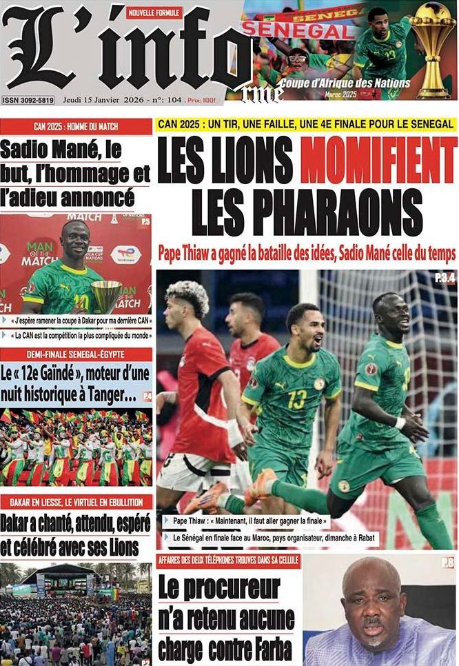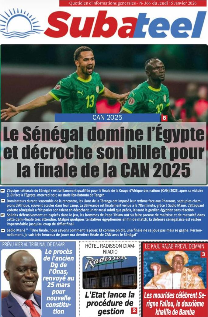 Découvrez les Unes des journaux sénégalais du jeudi 15 janvier 2026