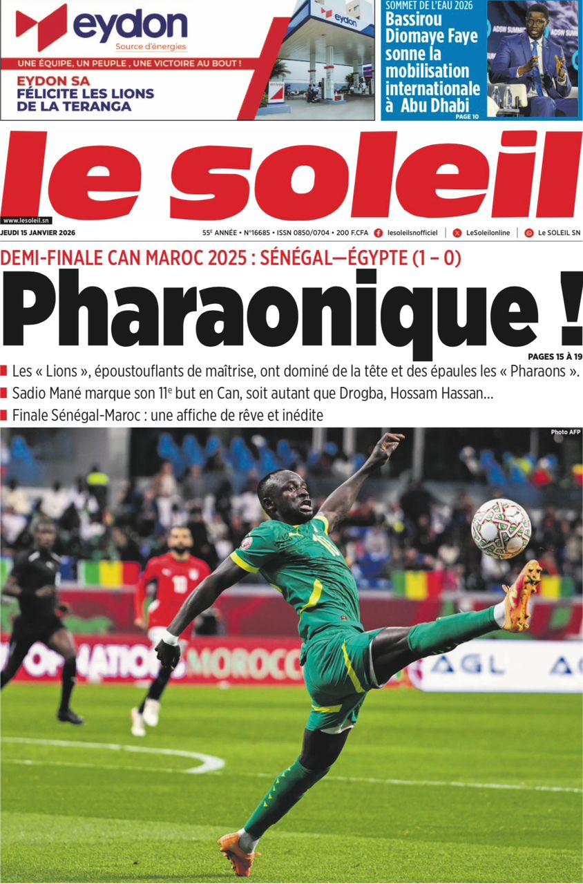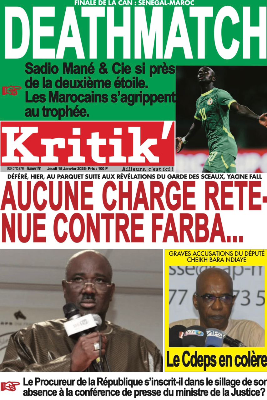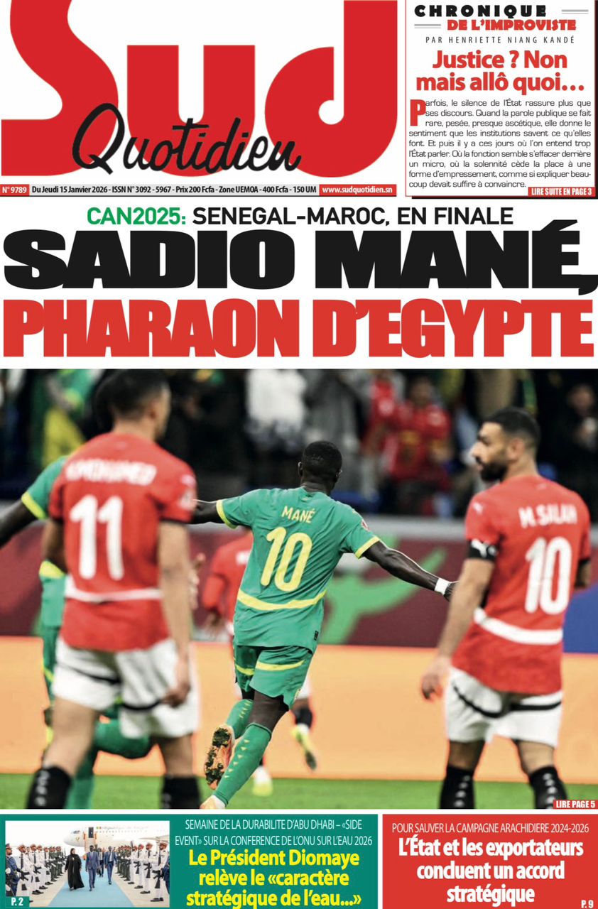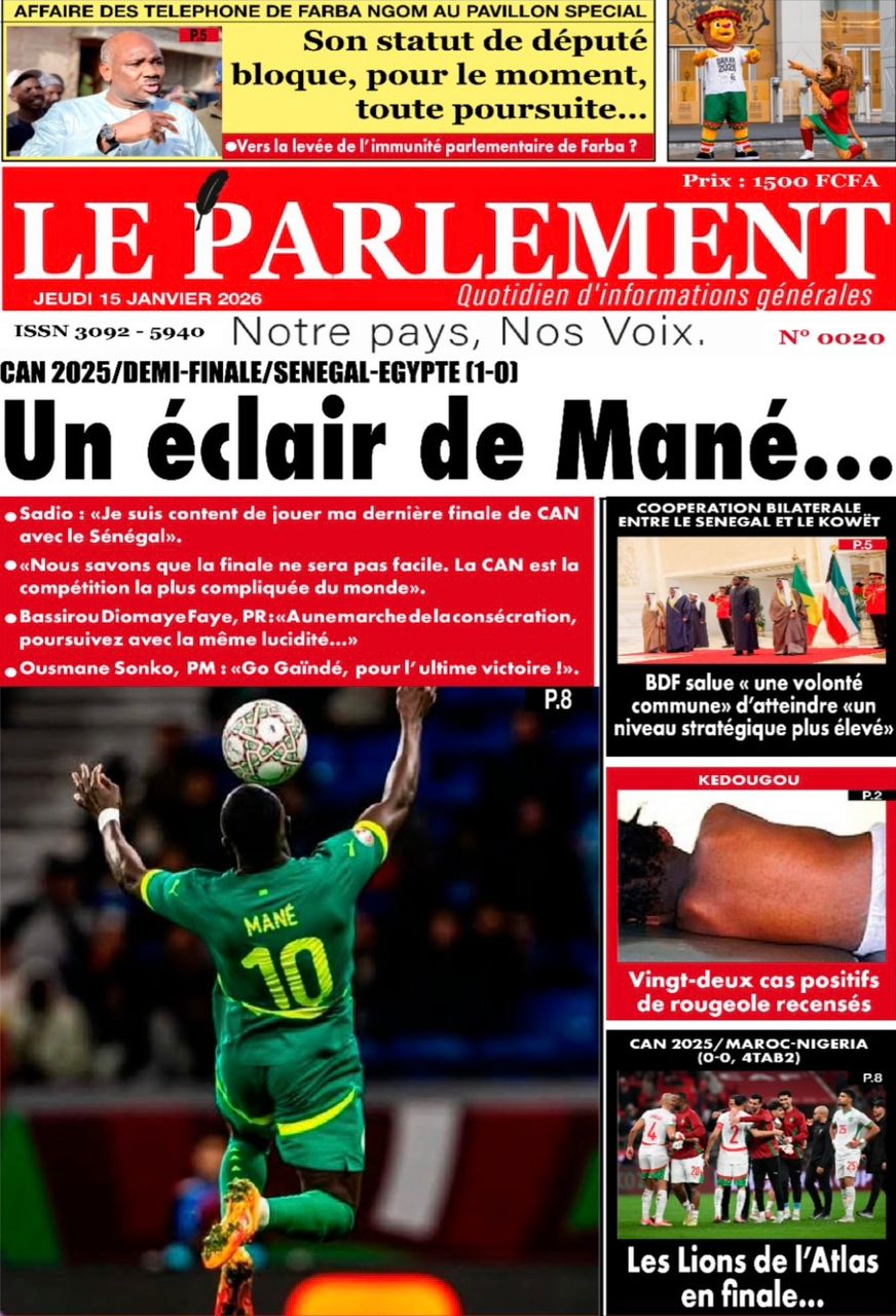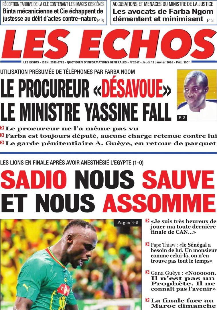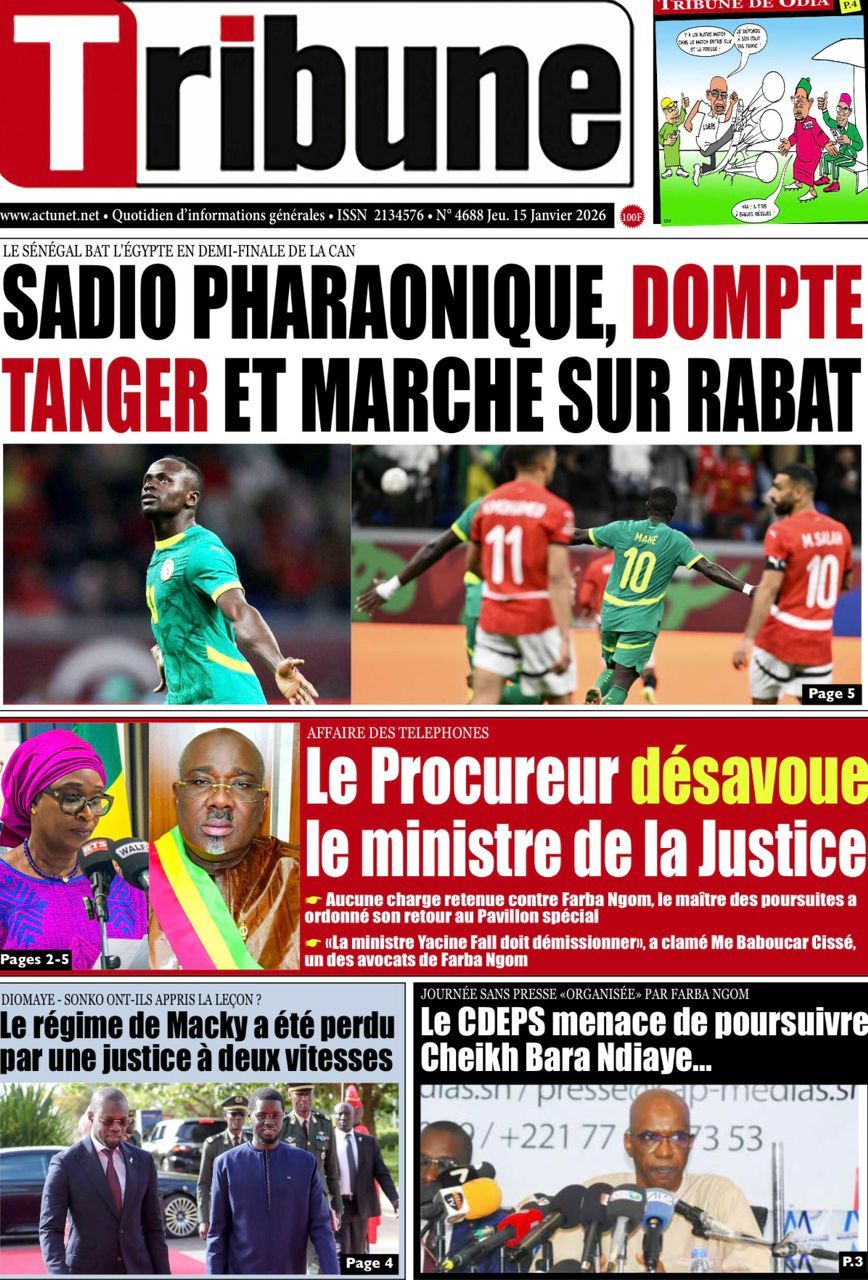 Découvrez les Unes des journaux sénégalais du jeudi 15 janvier 2026