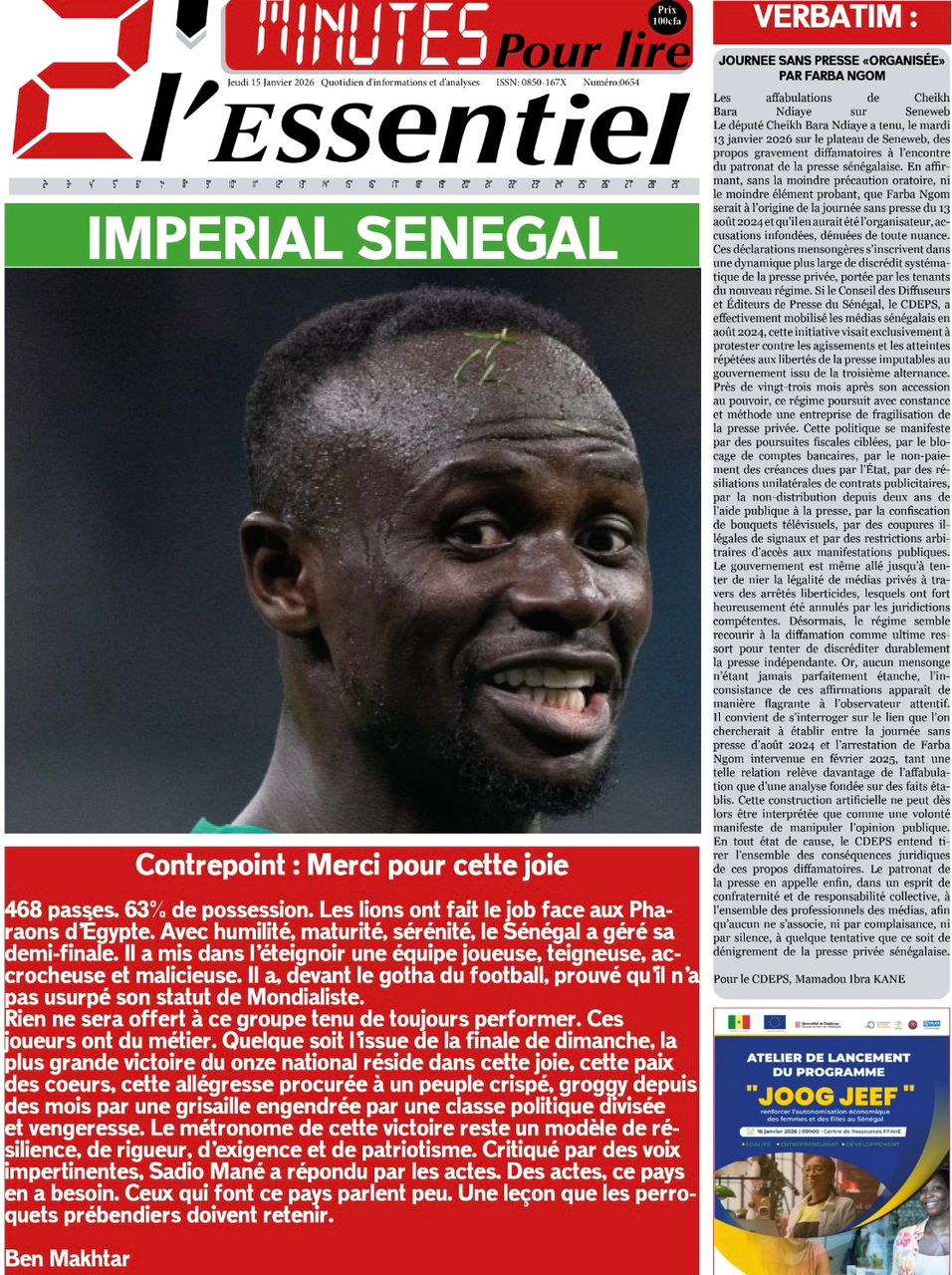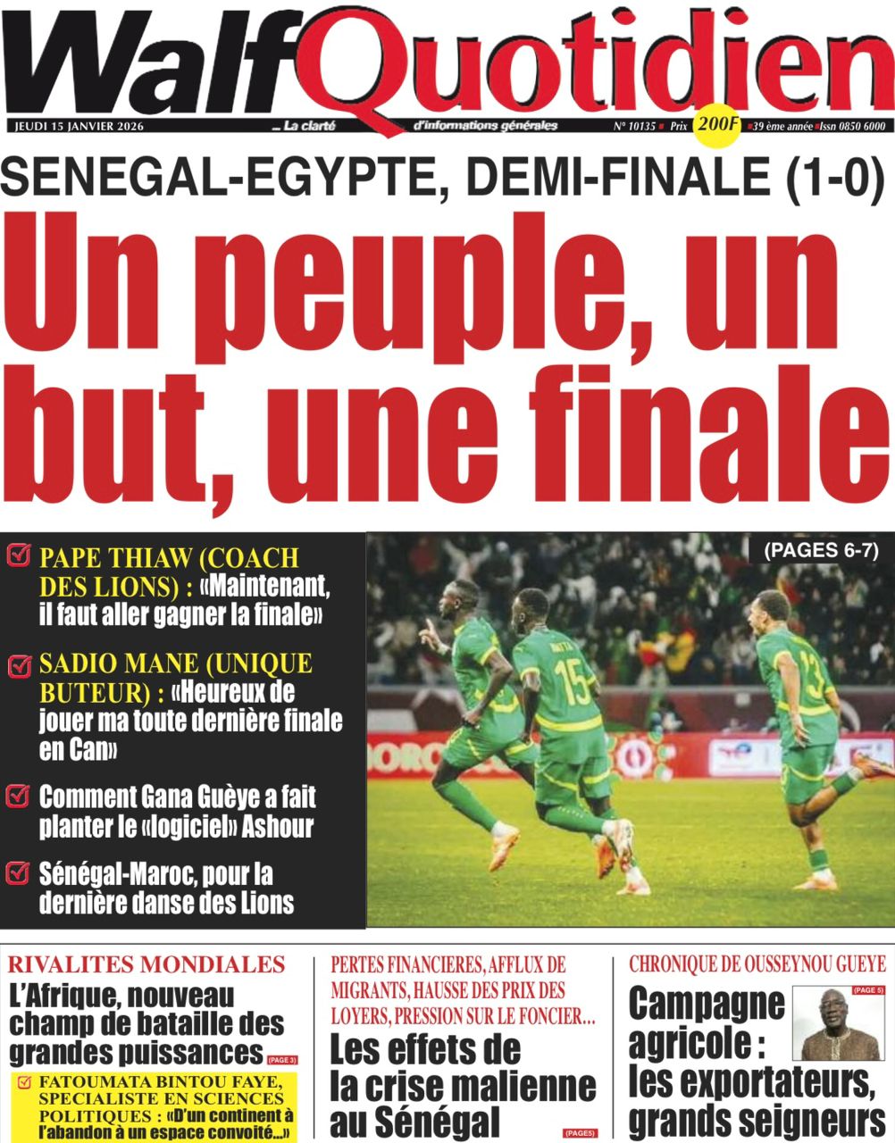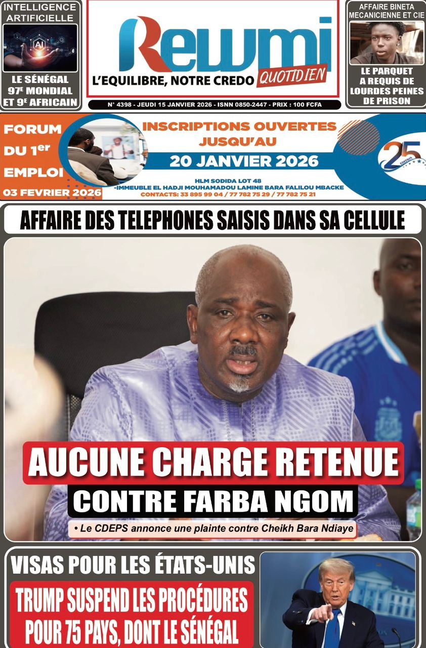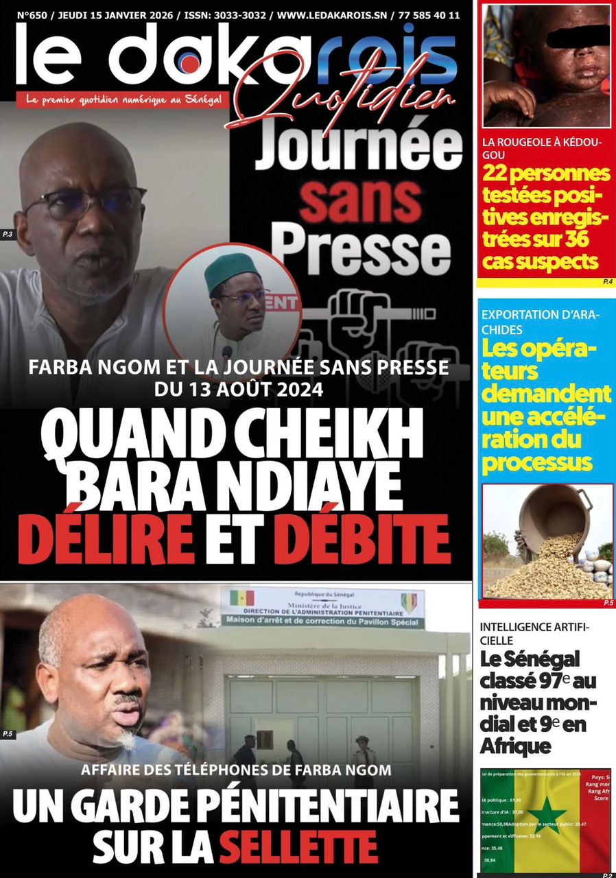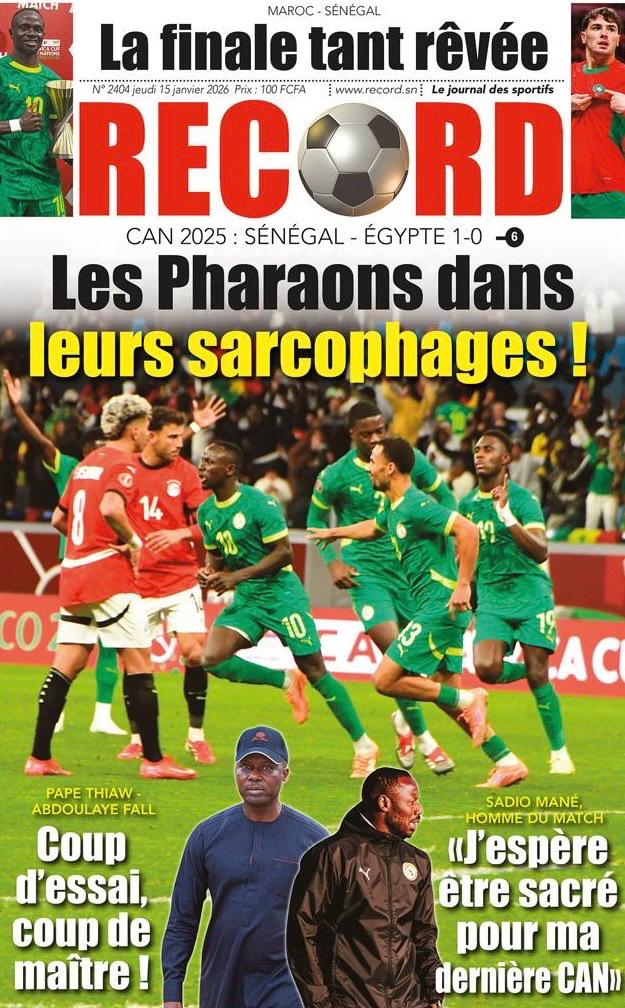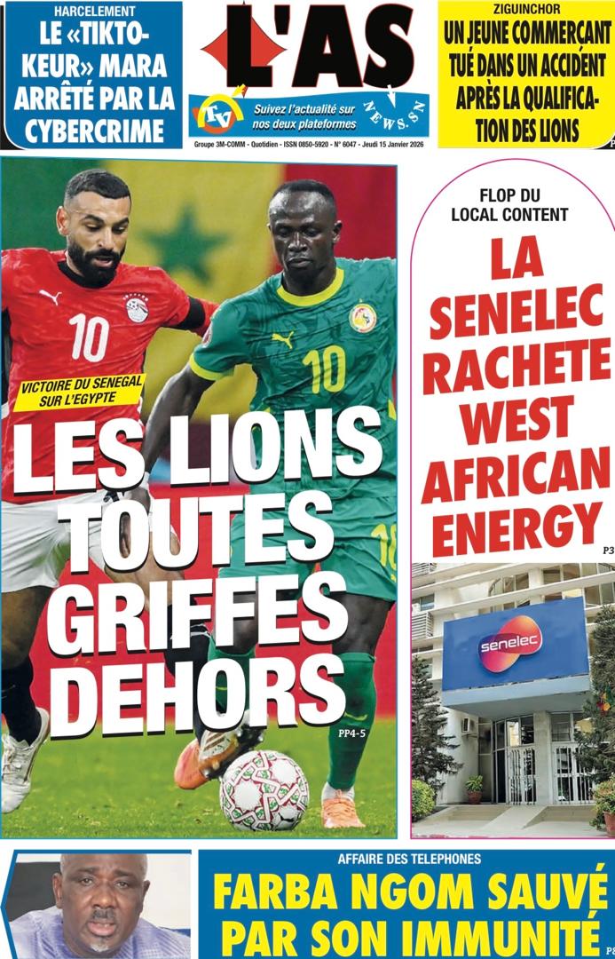 Découvrez les Unes des journaux sénégalais du jeudi 15 janvier 2026