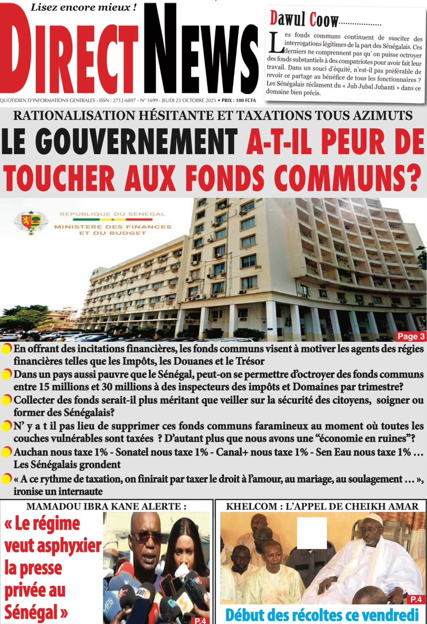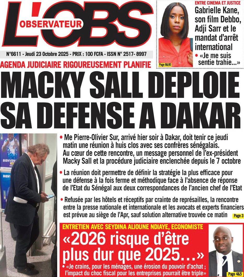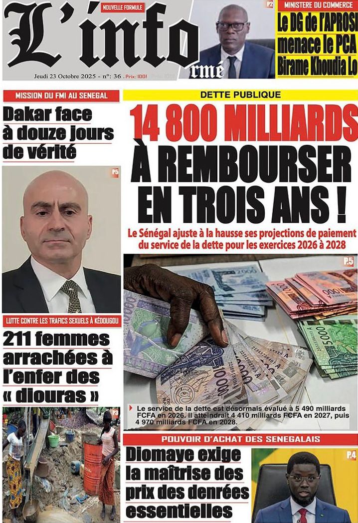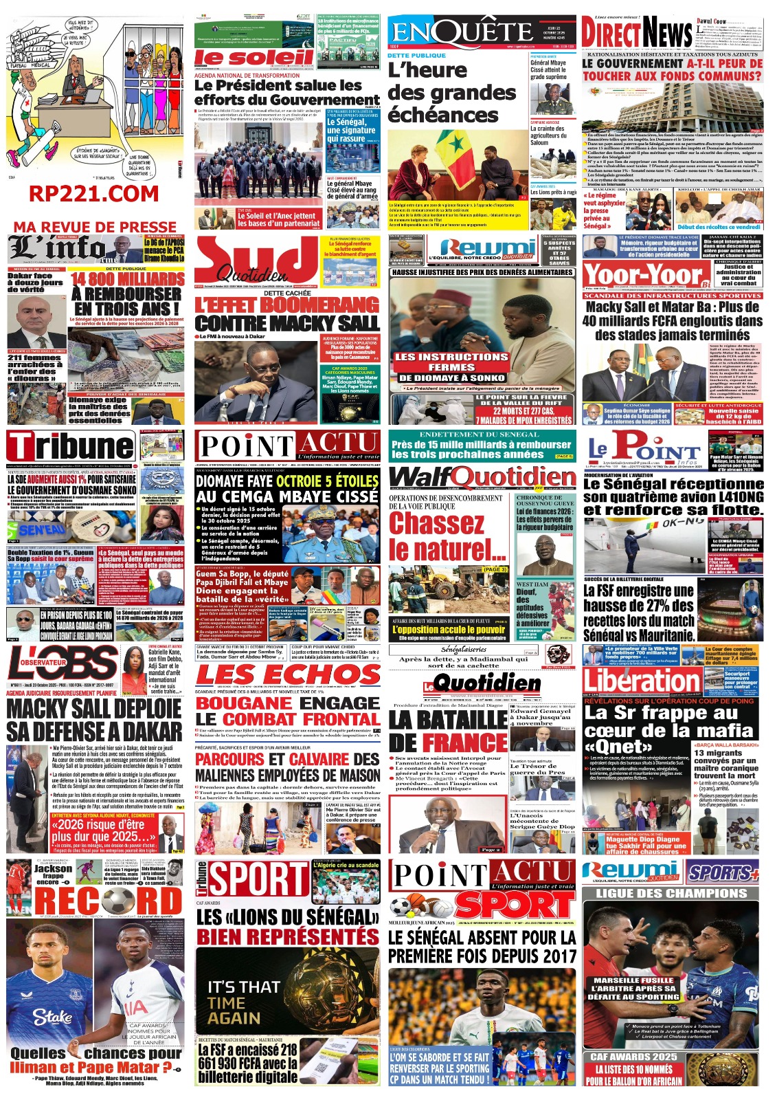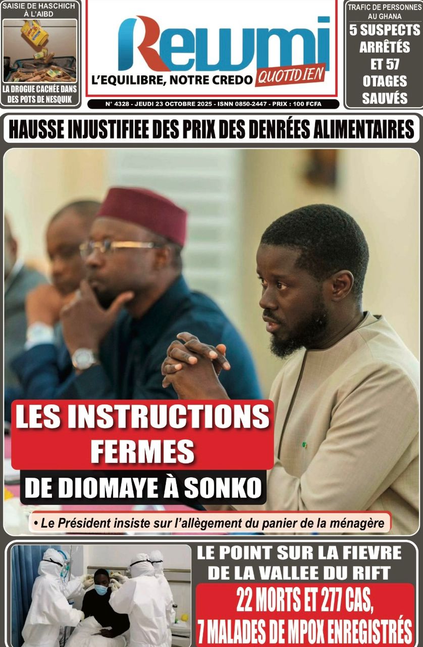 Découvrez les Unes des journaux sénégalais du jeudi 23 octobre 2025