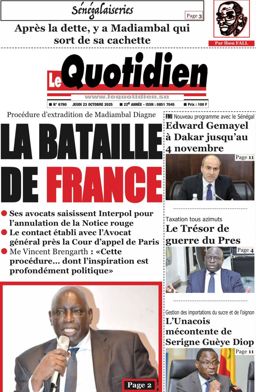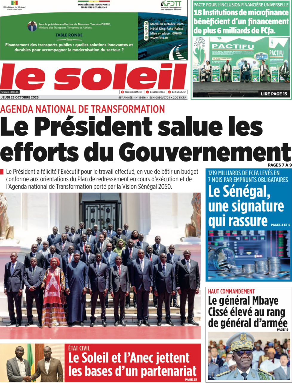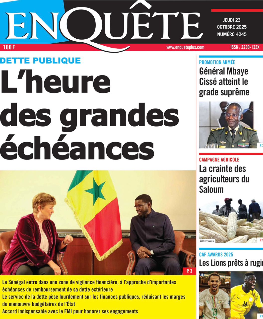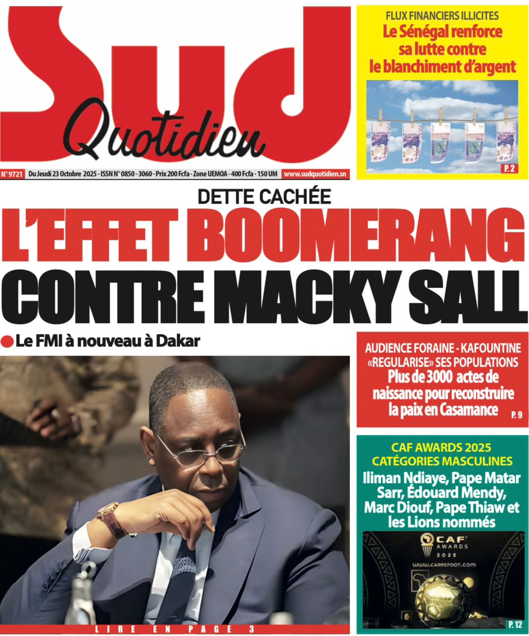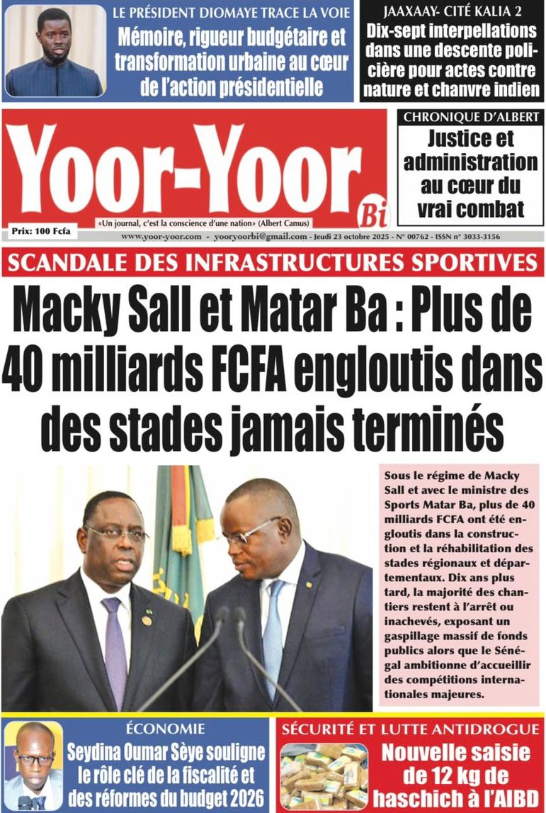 Découvrez les Unes des journaux sénégalais du jeudi 23 octobre 2025