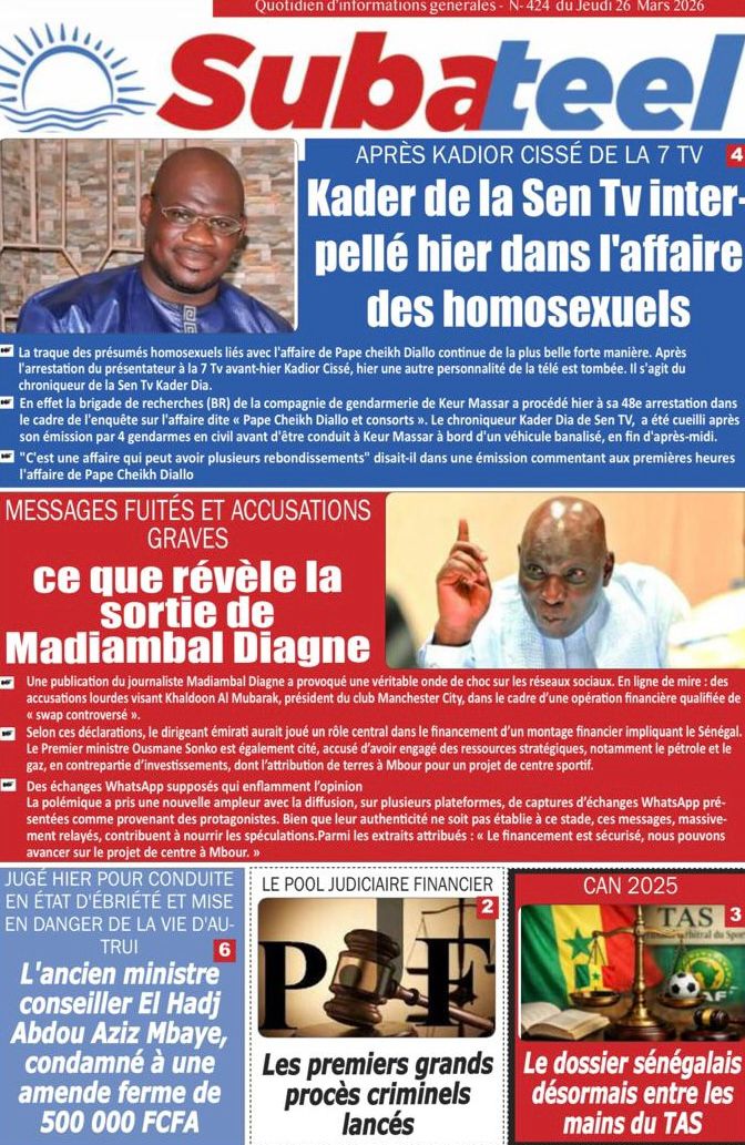 Découvrez les Unes des journaux sénégalais du jeudi 26 mars 2026