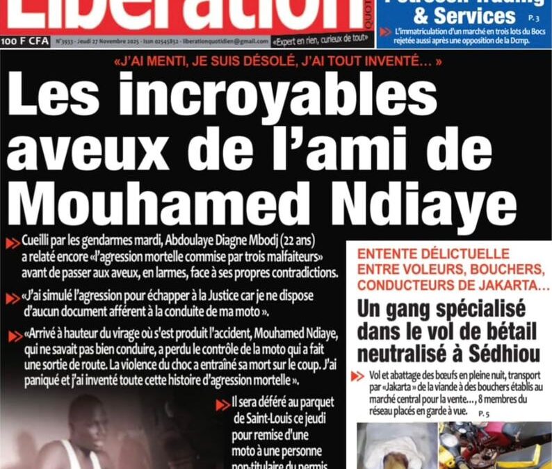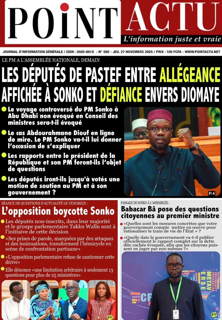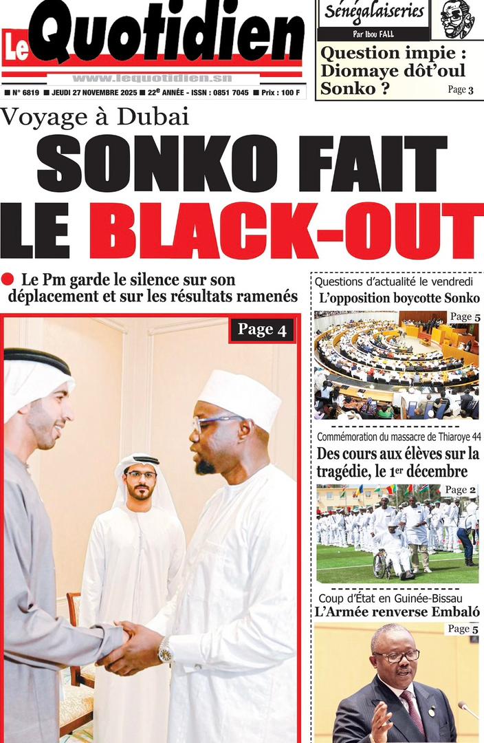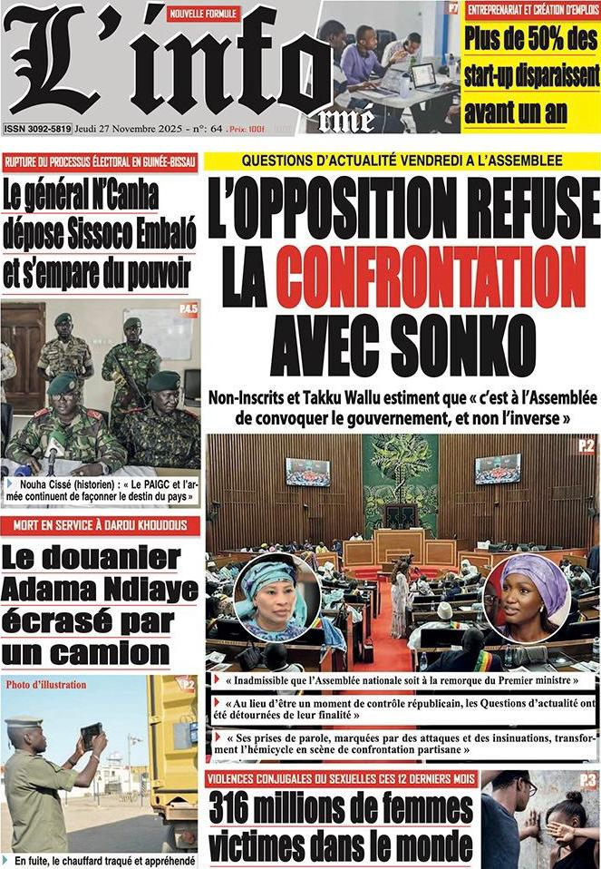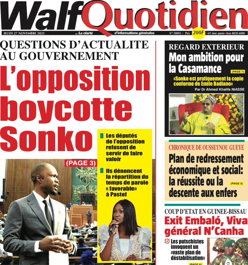 Découvrez les Unes des journaux sénégalais du jeudi 27 novembre 2025