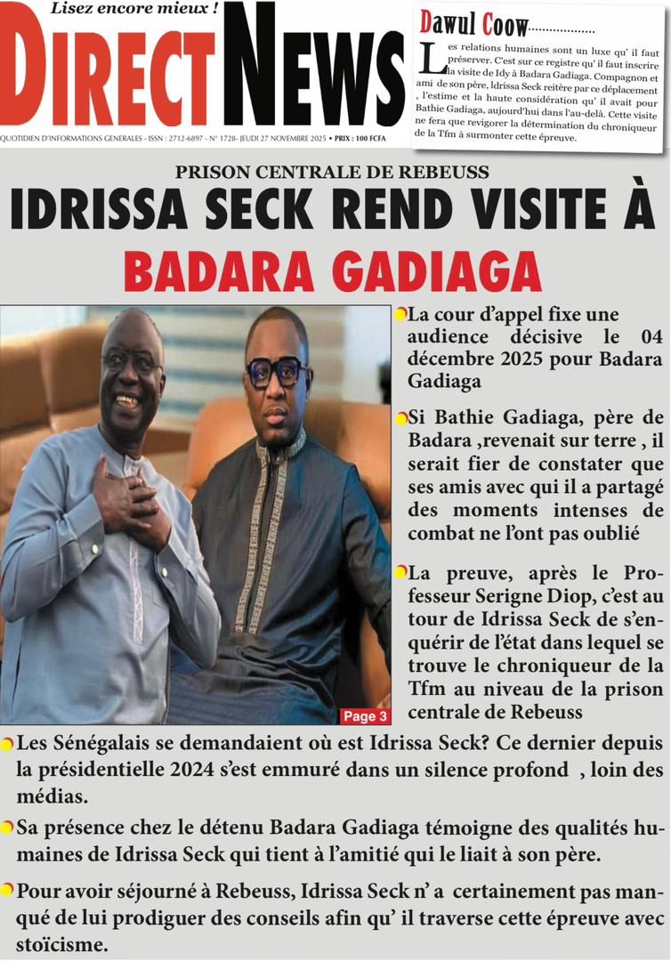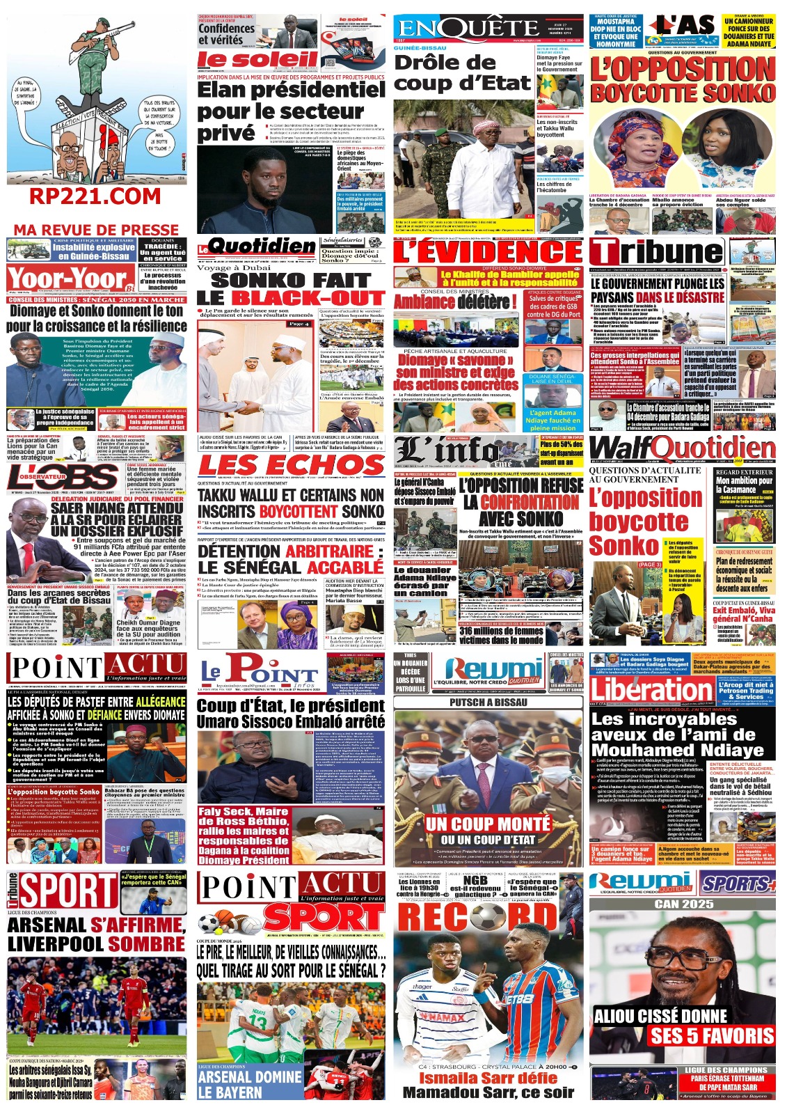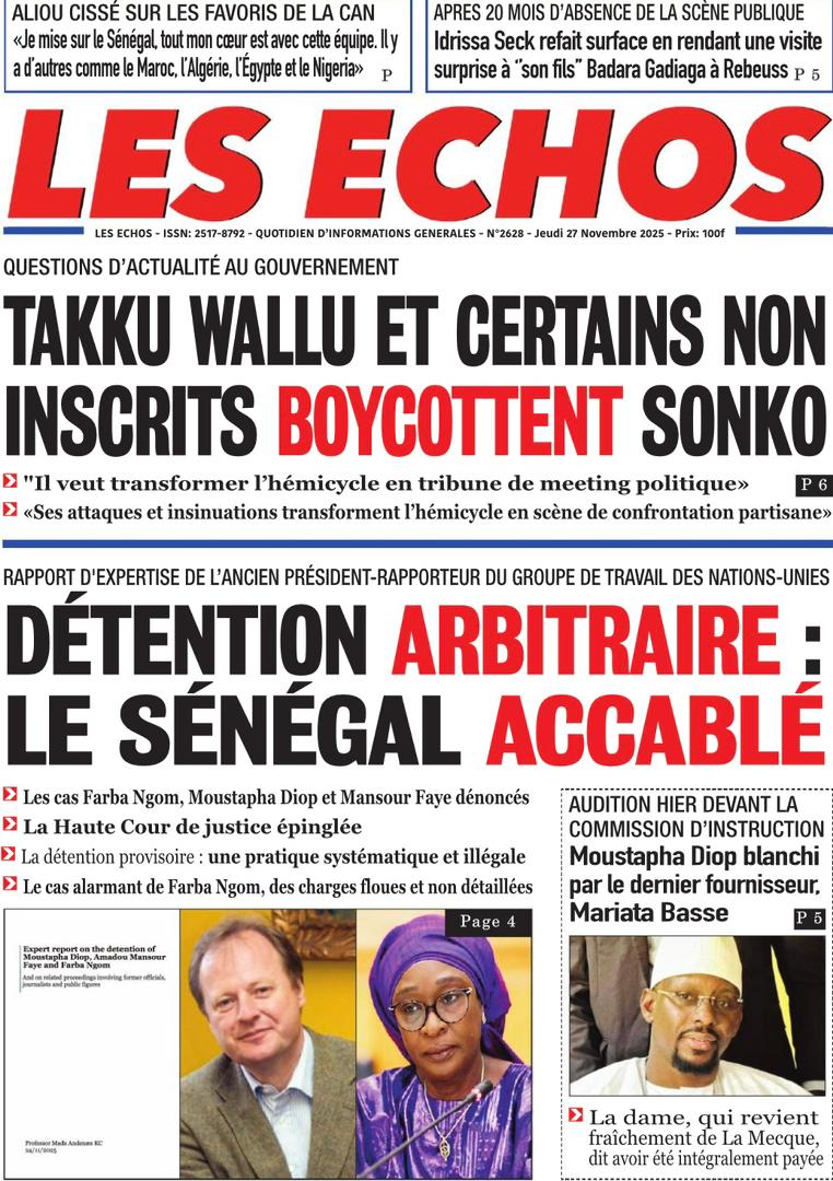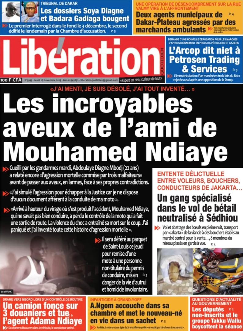 Découvrez les Unes des journaux sénégalais du jeudi 27 novembre 2025