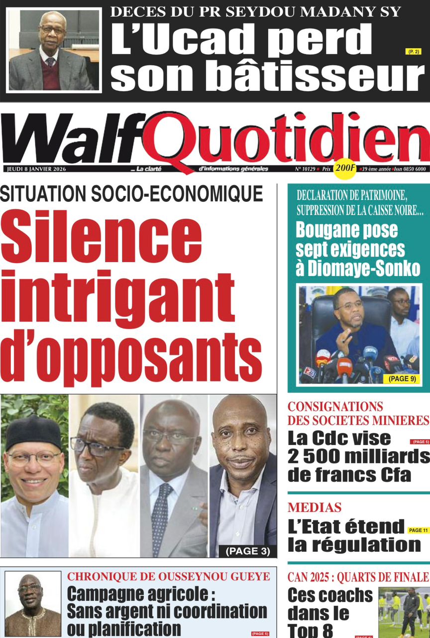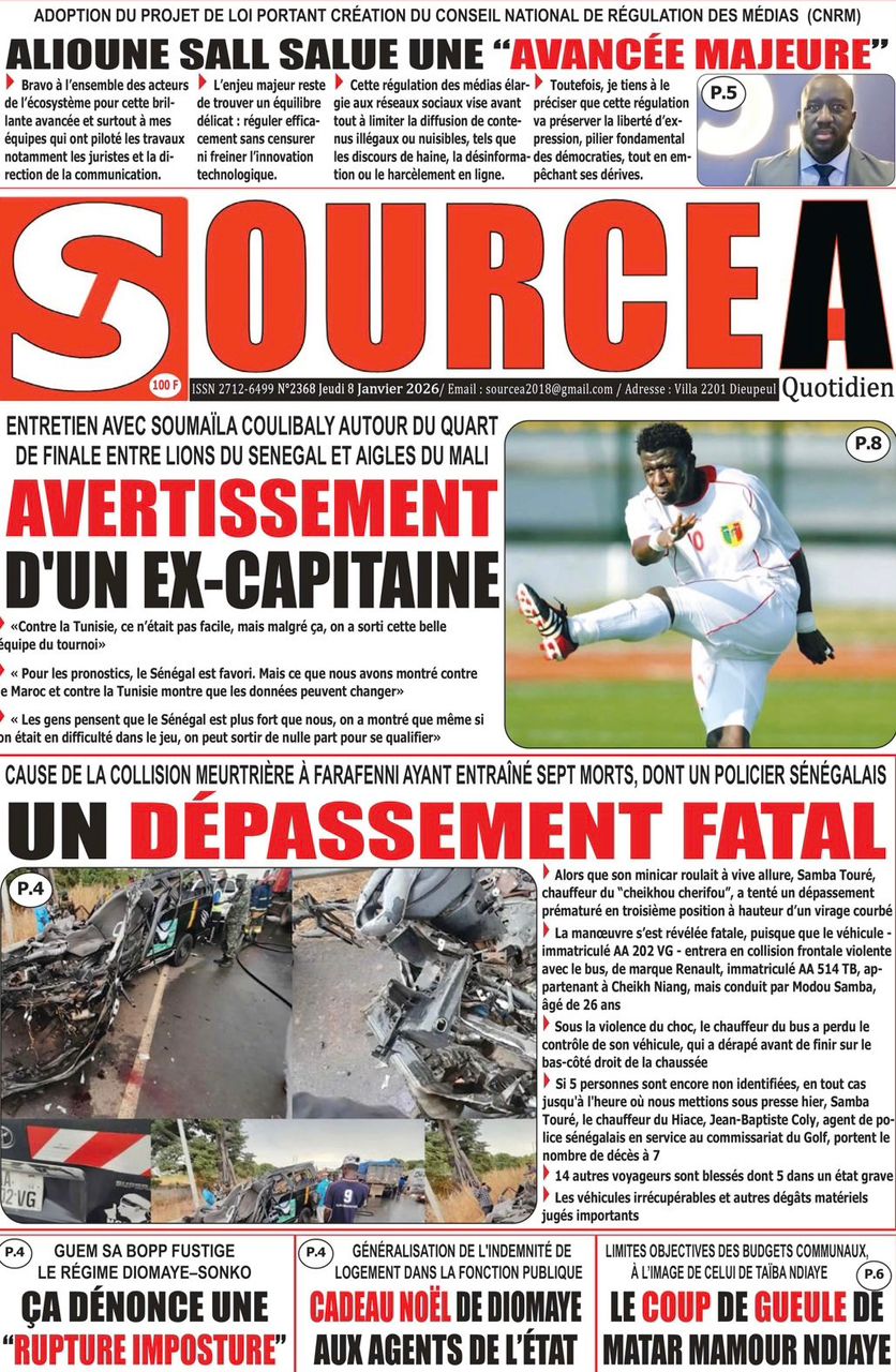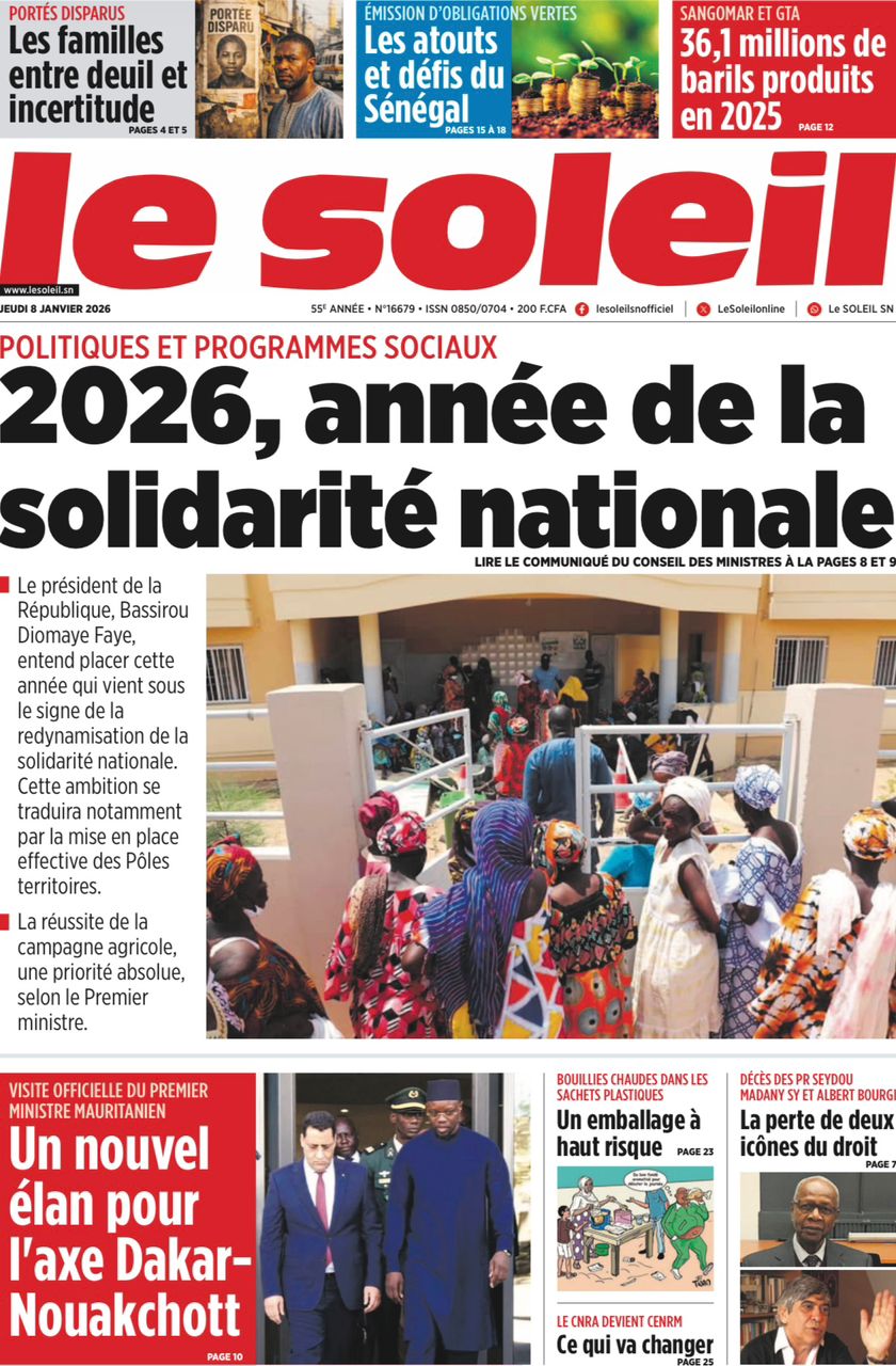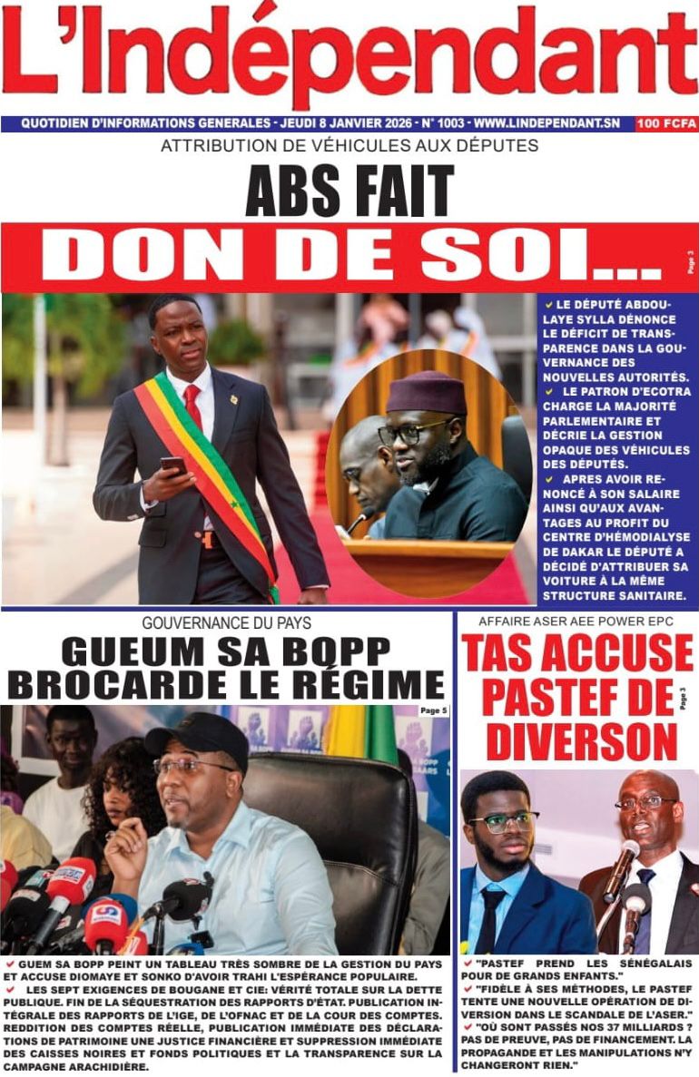 Découvrez les Unes des journaux sénégalais du jeudi 8 janvier 2026