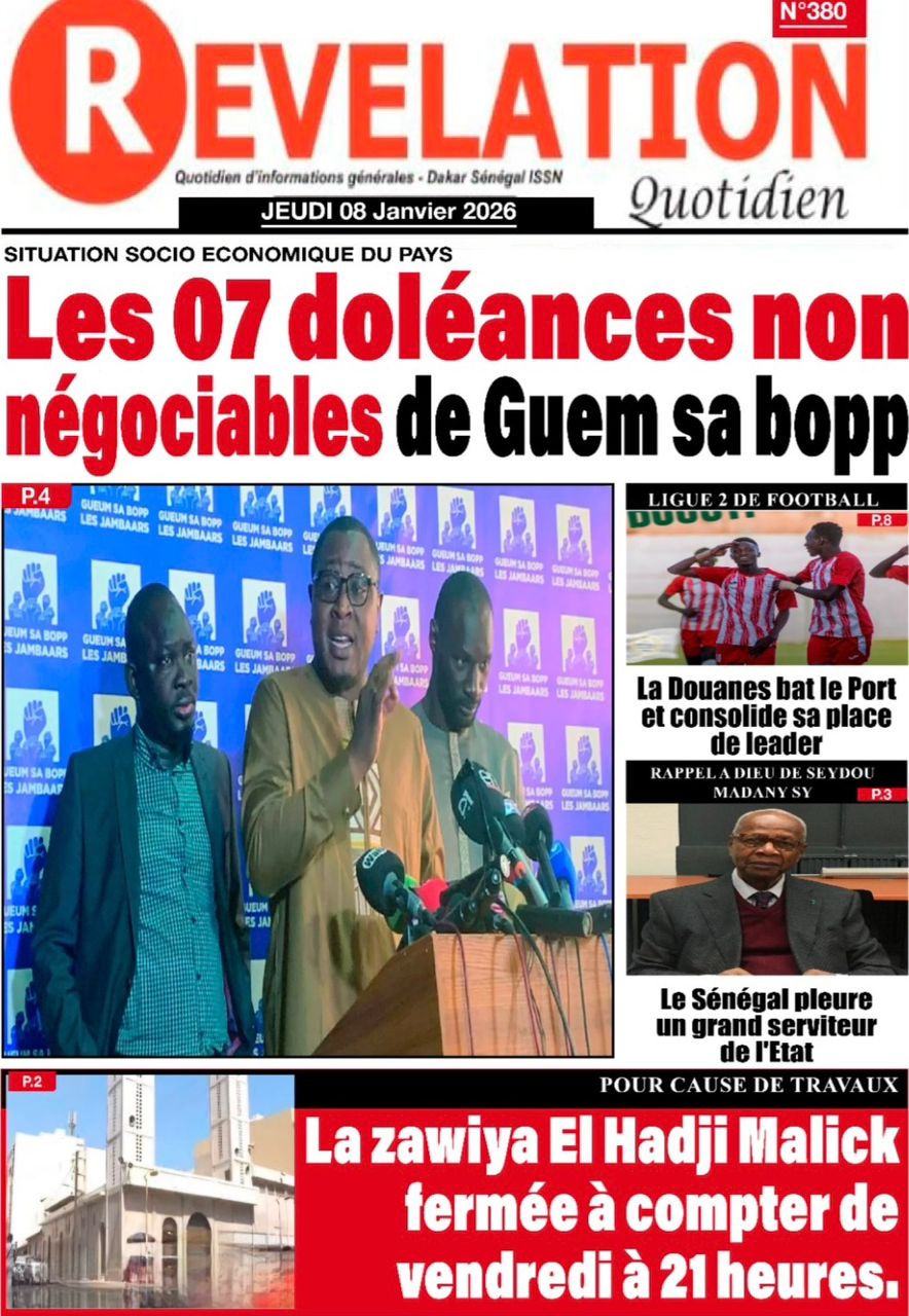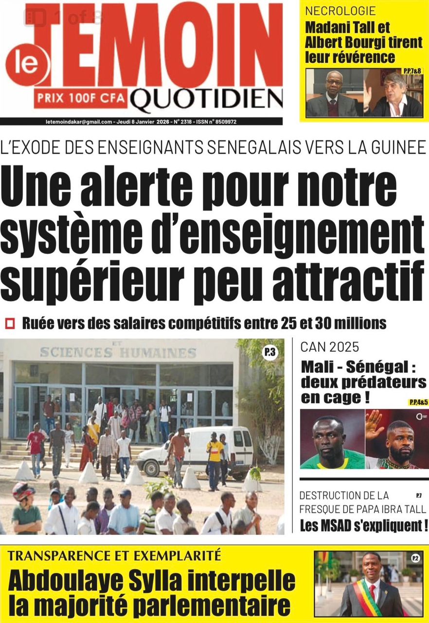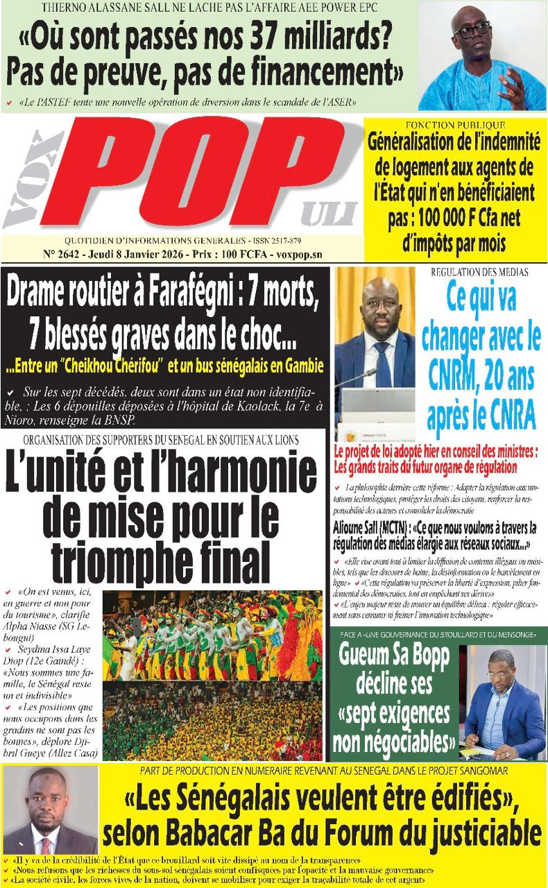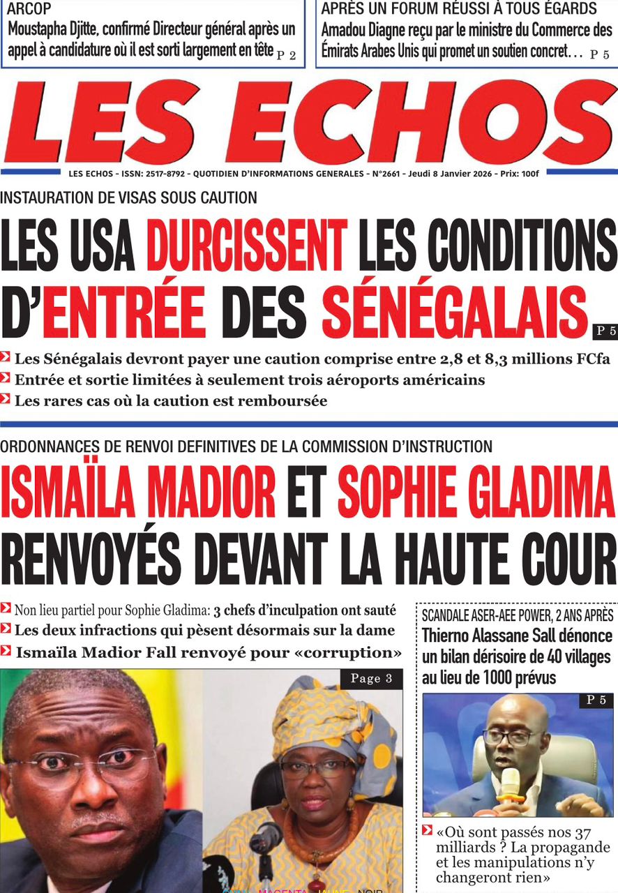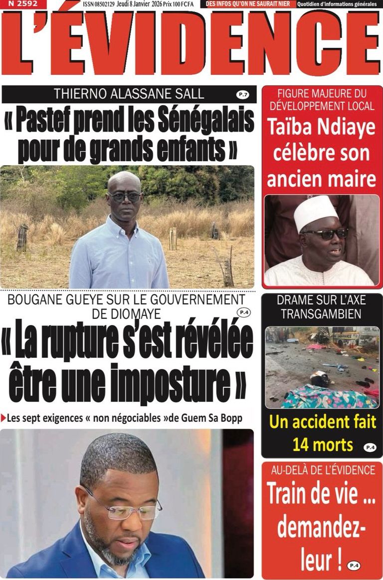Découvrez les Unes des journaux sénégalais du jeudi 8 janvier 2026