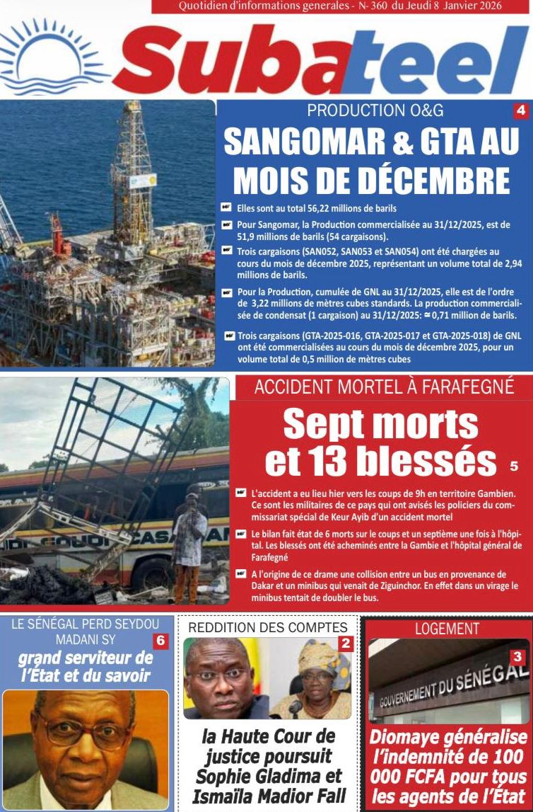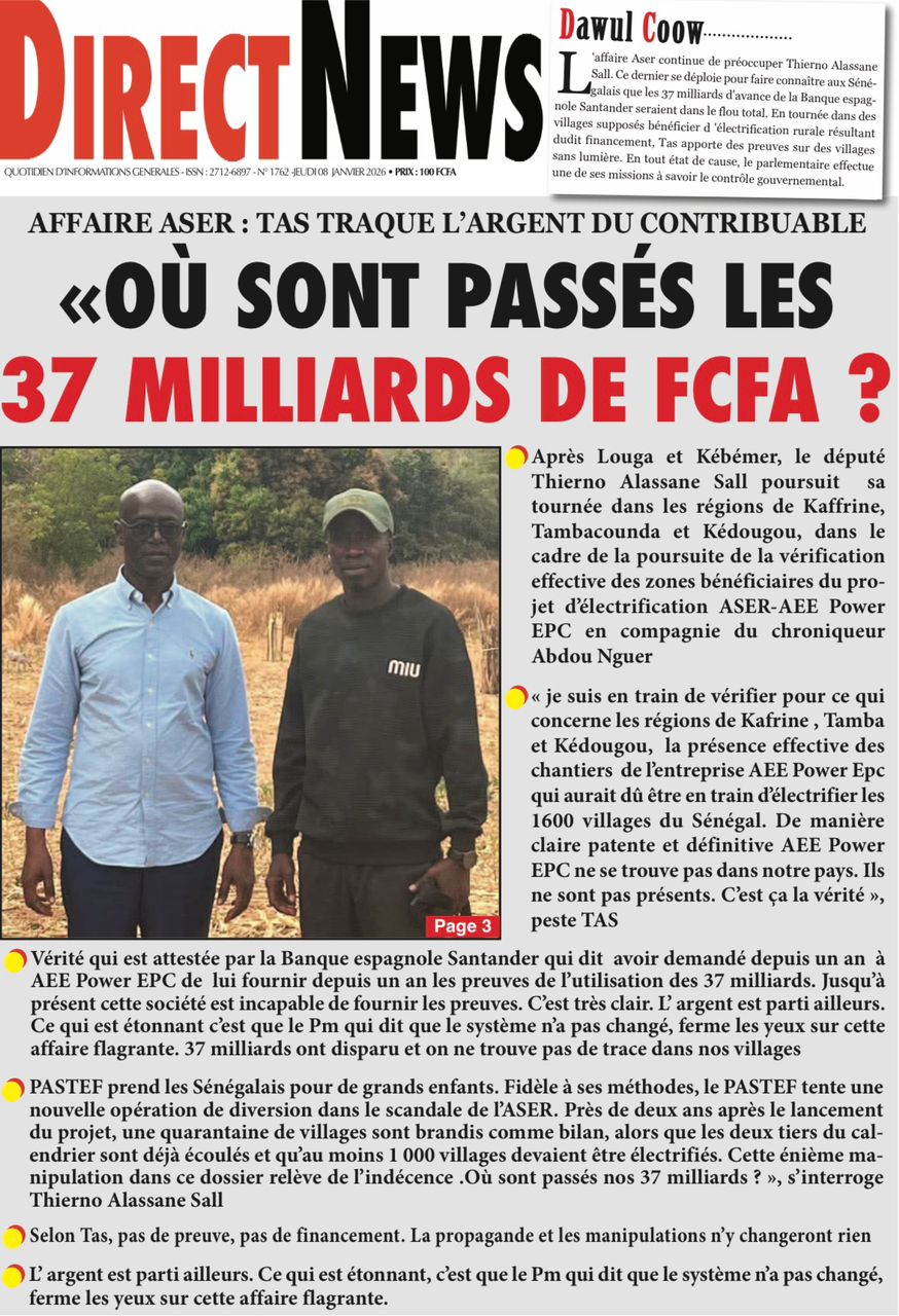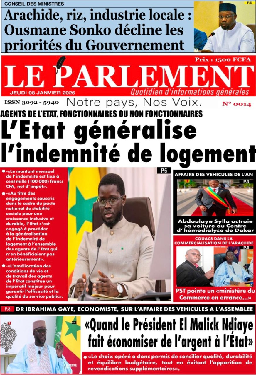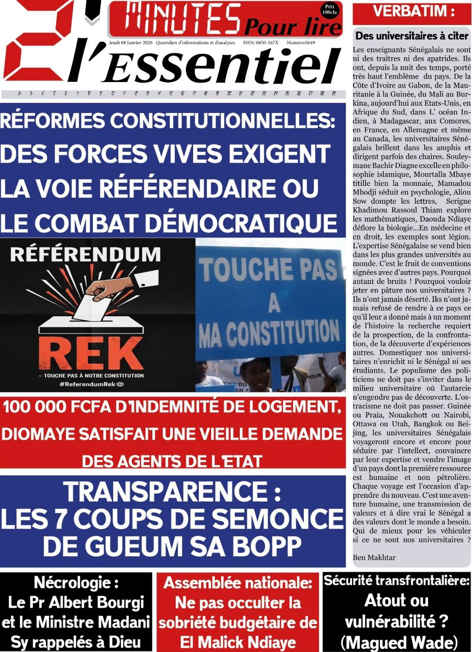 Découvrez les Unes des journaux sénégalais du jeudi 8 janvier 2026