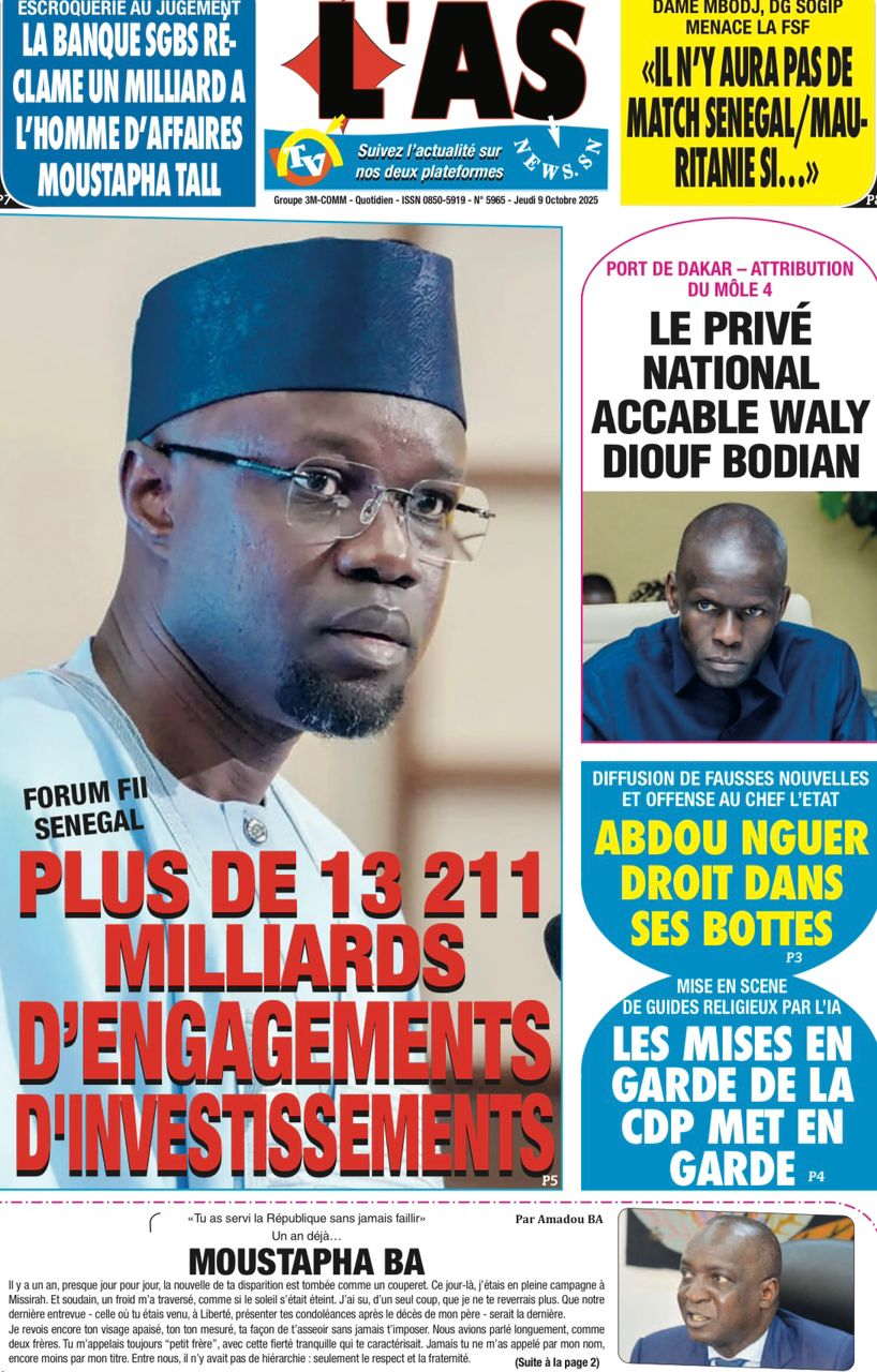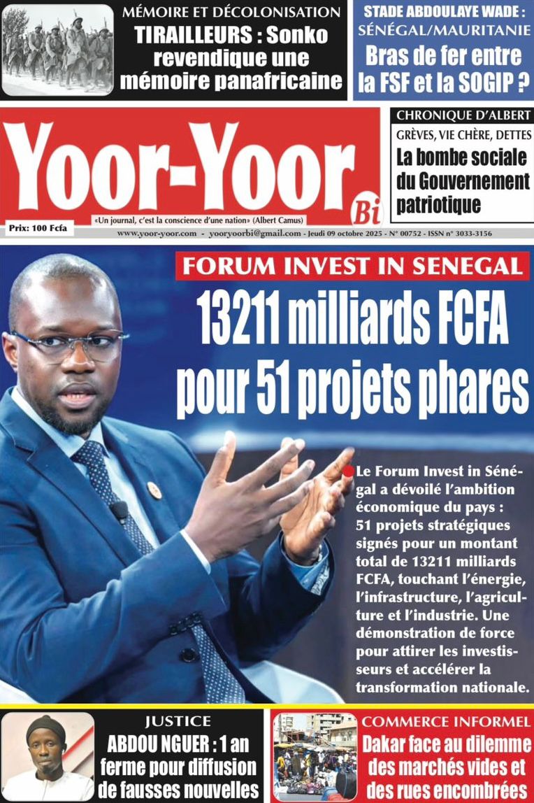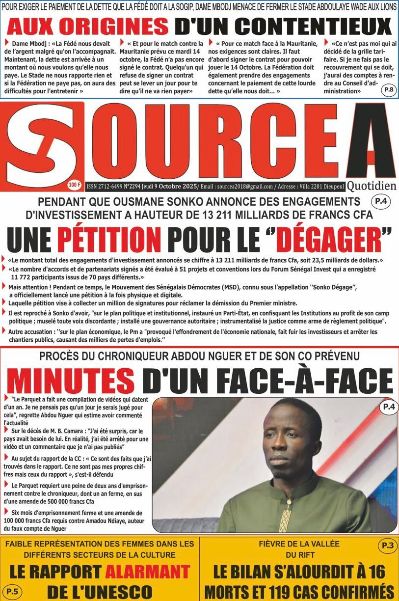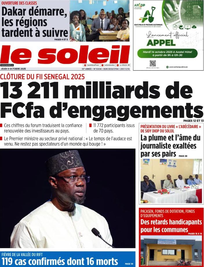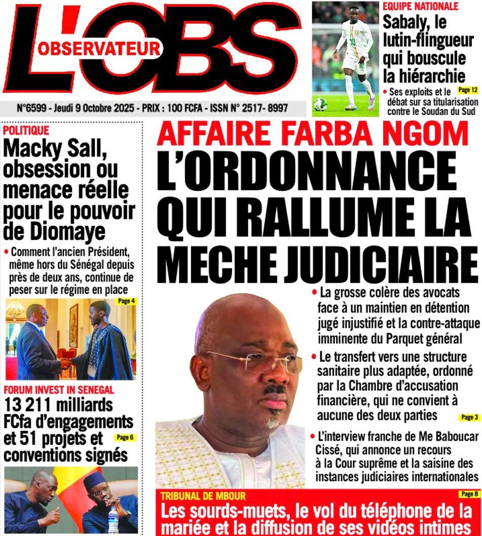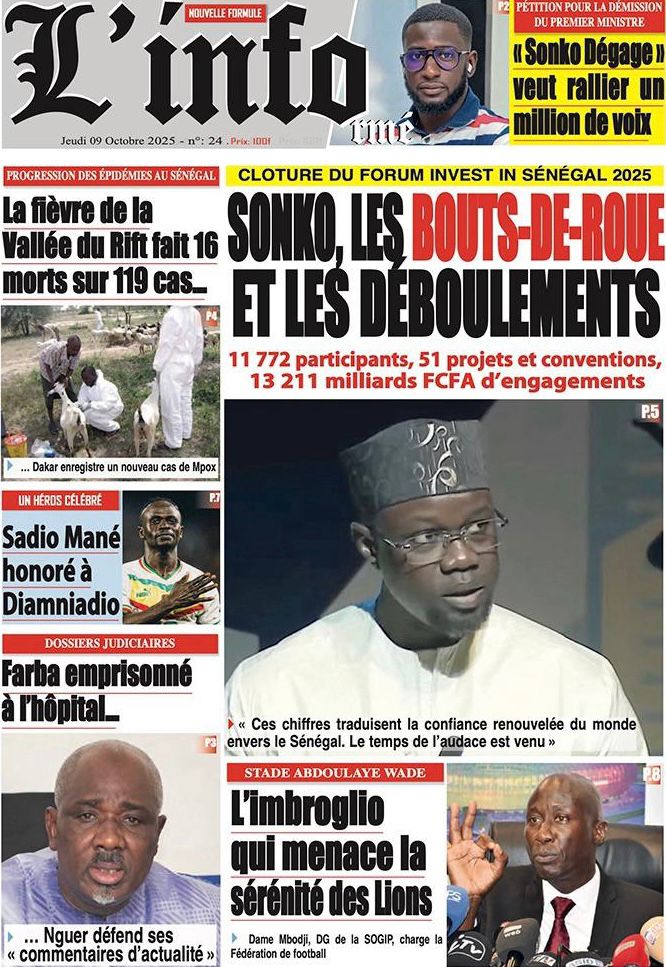 Découvrez les Unes des journaux sénégalais du jeudi 9 octobre 2025