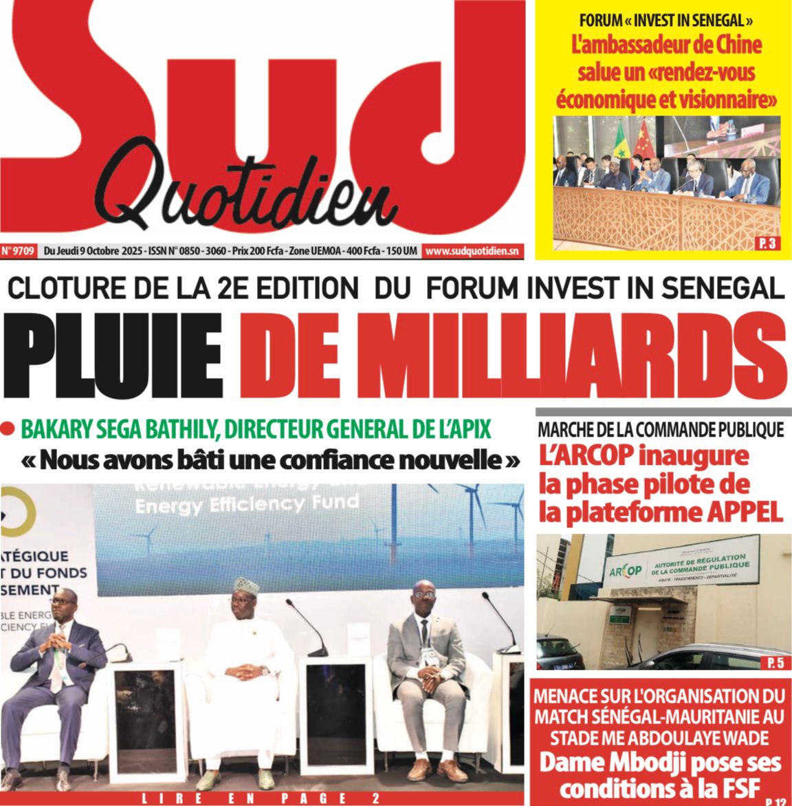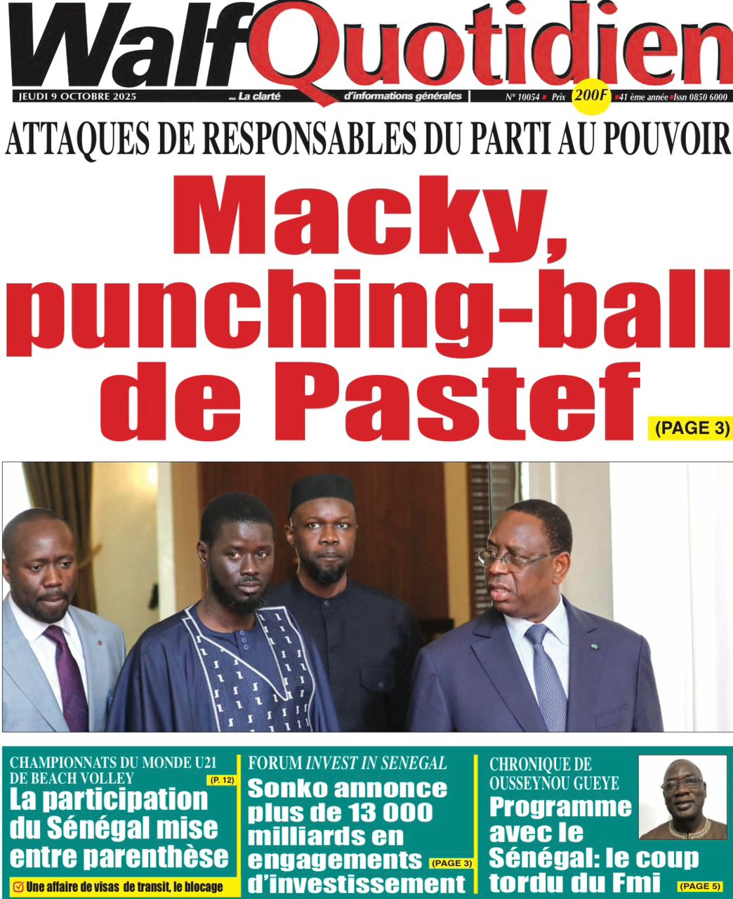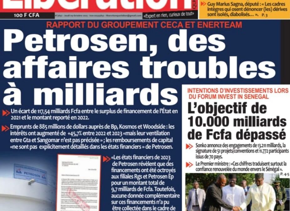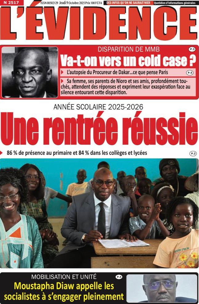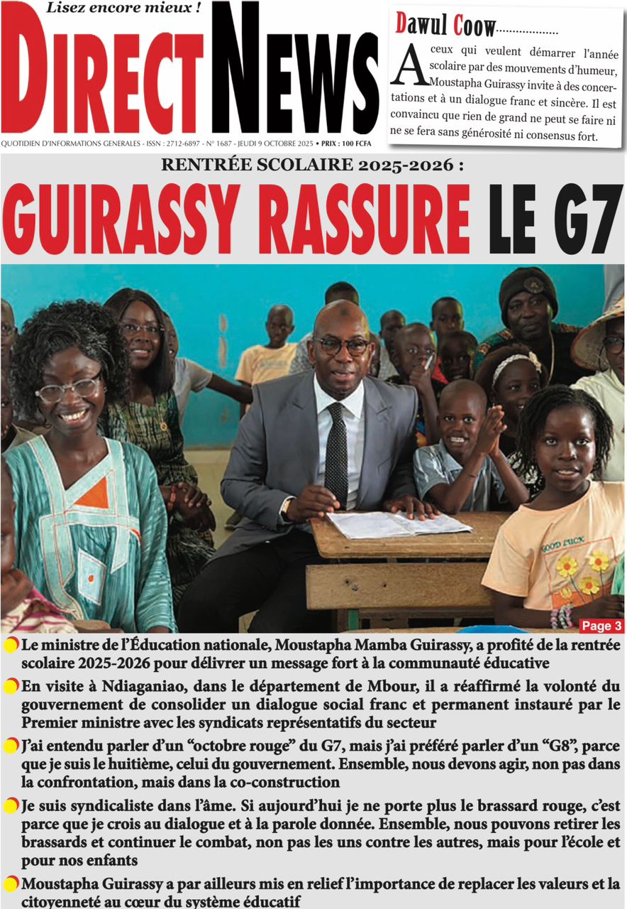 Découvrez les Unes des journaux sénégalais du jeudi 9 octobre 2025