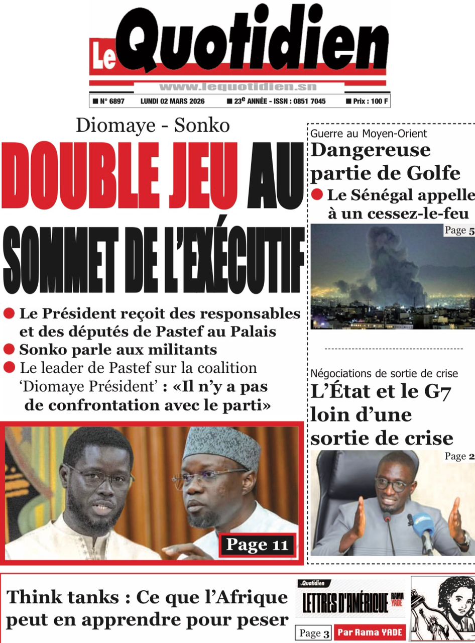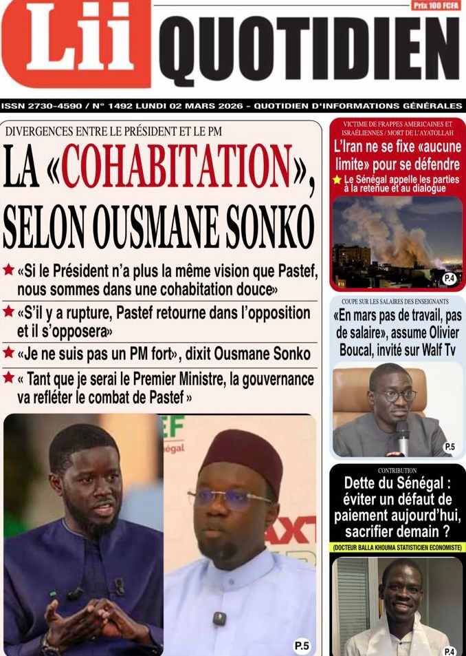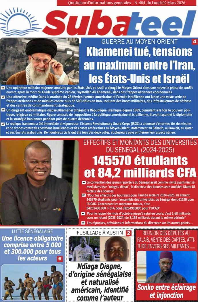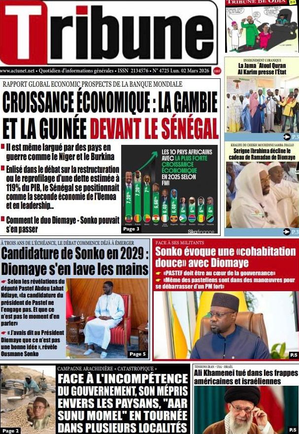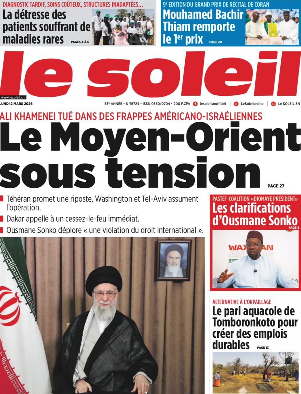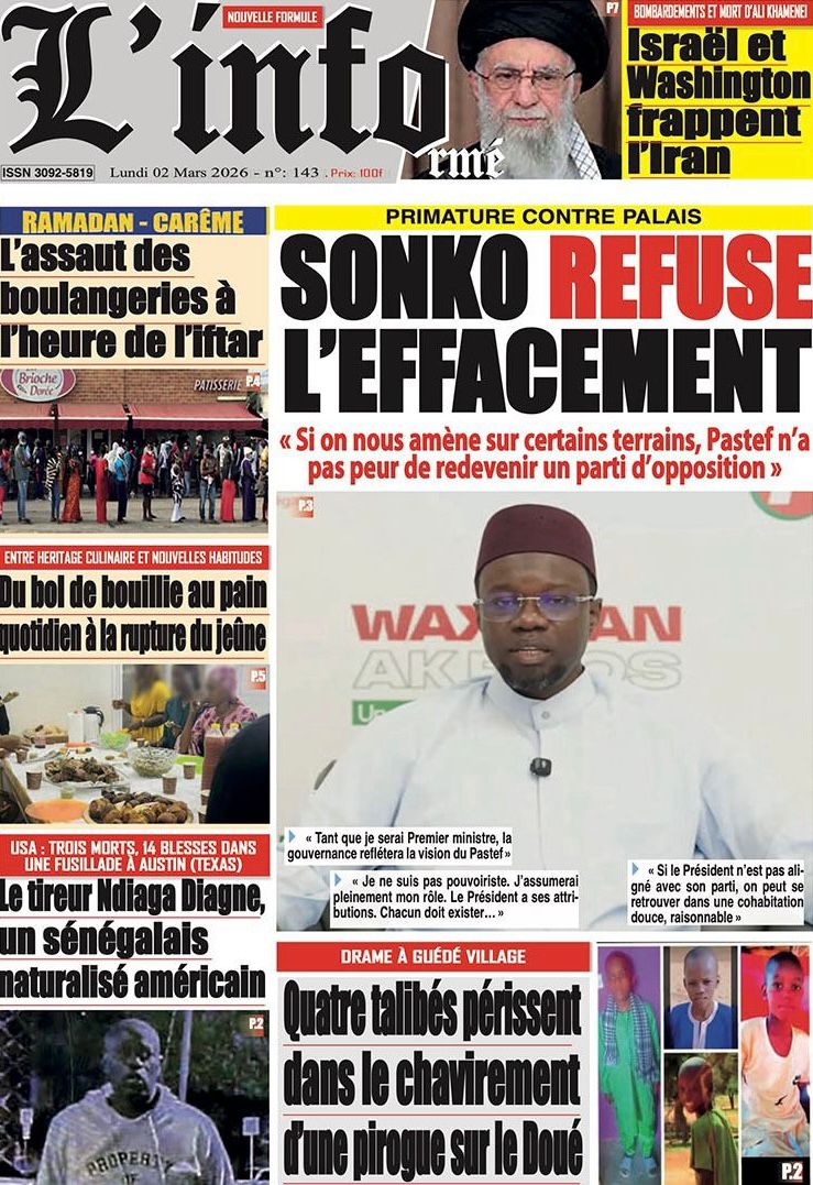 Découvrez les Unes des journaux sénégalais du lundi 02 mars 2026