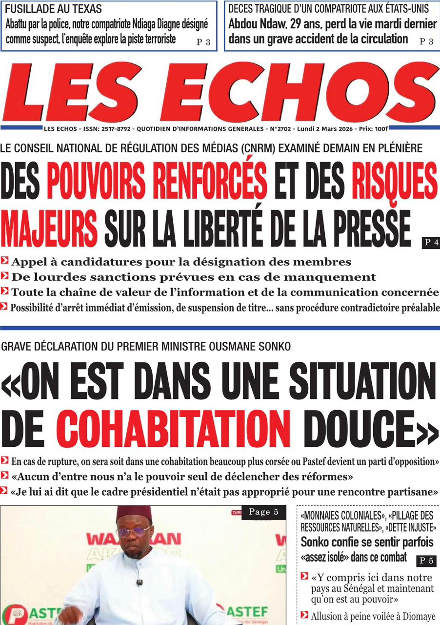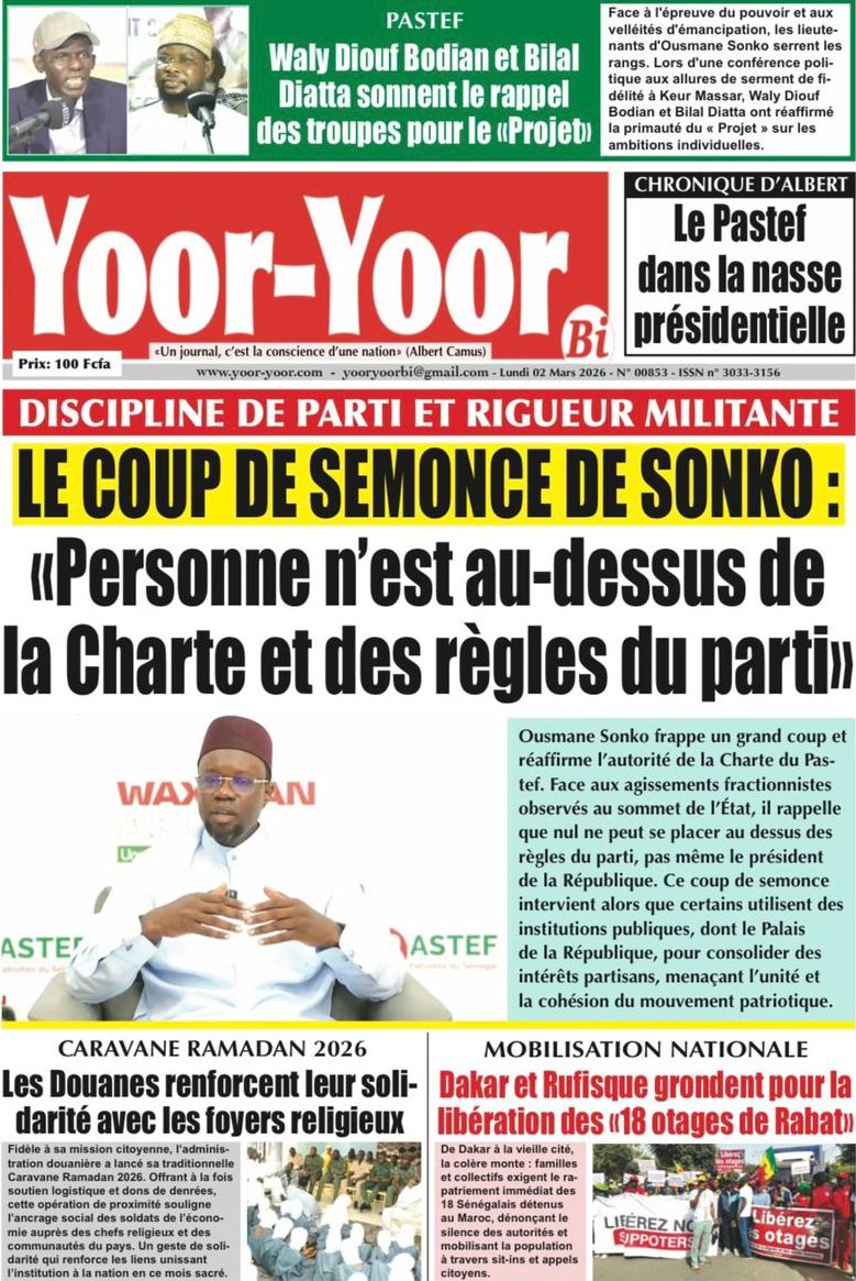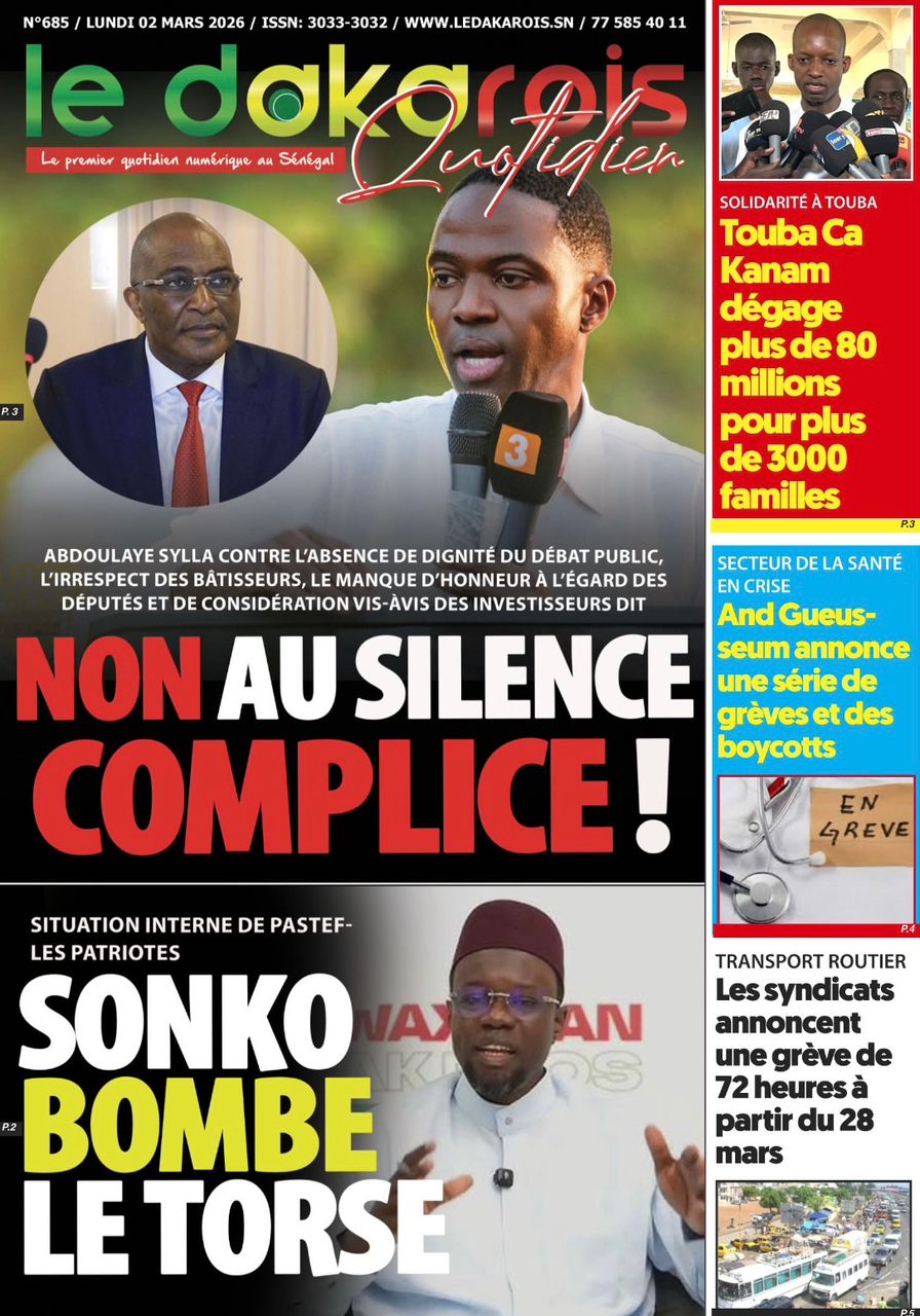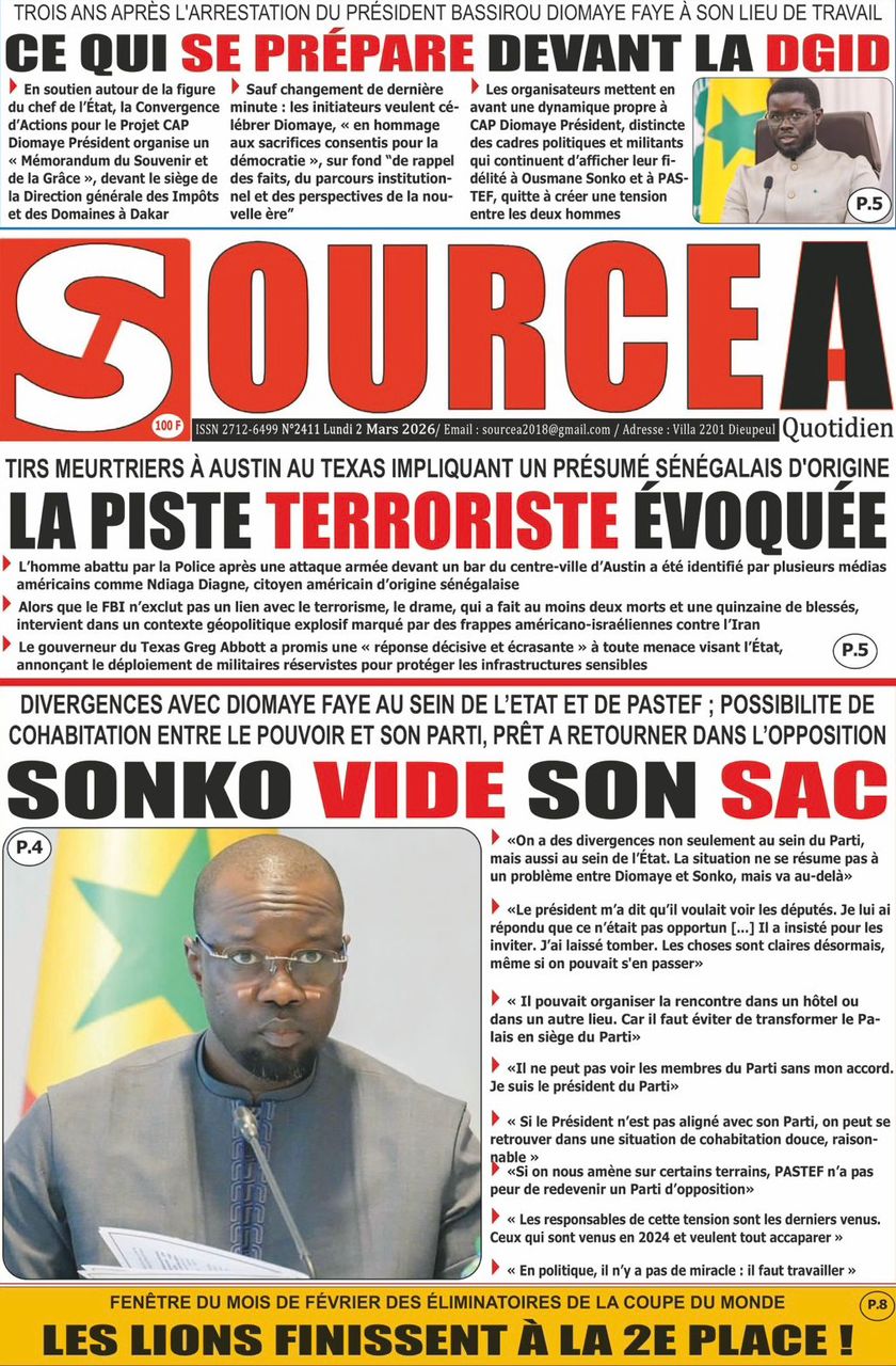 Découvrez les Unes des journaux sénégalais du lundi 02 mars 2026