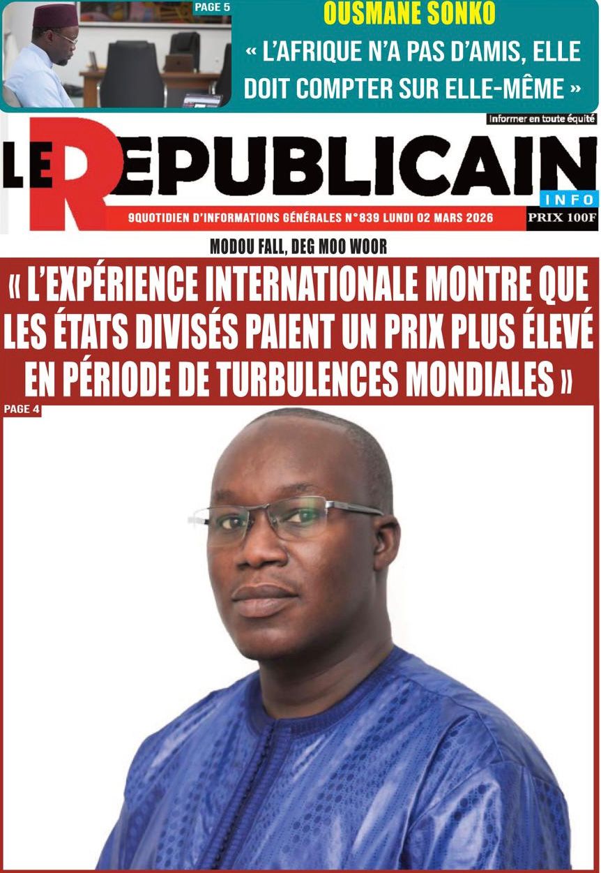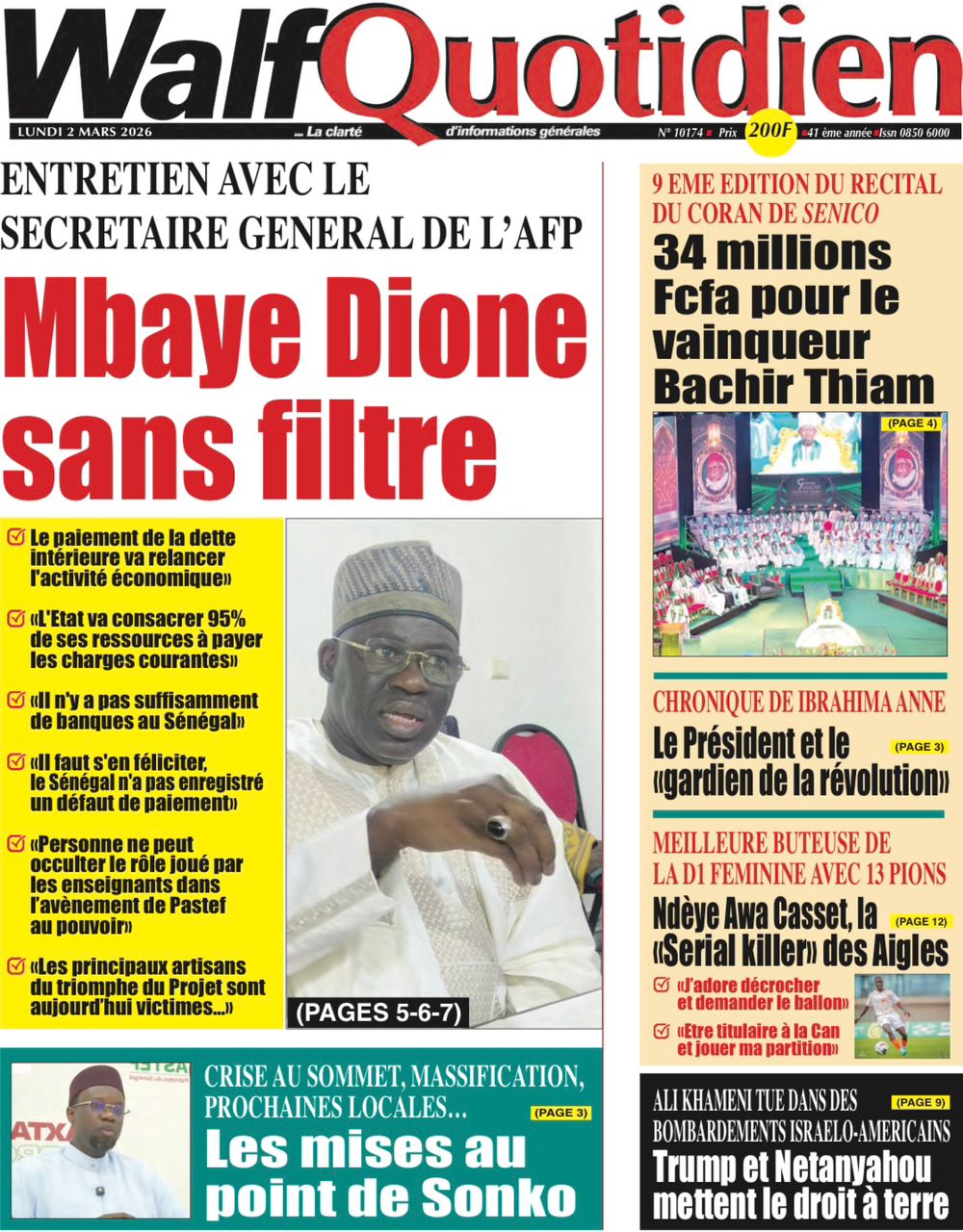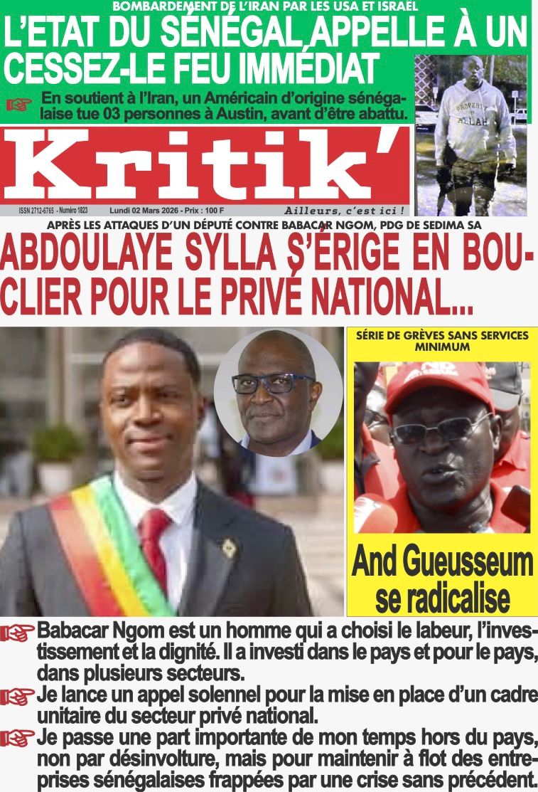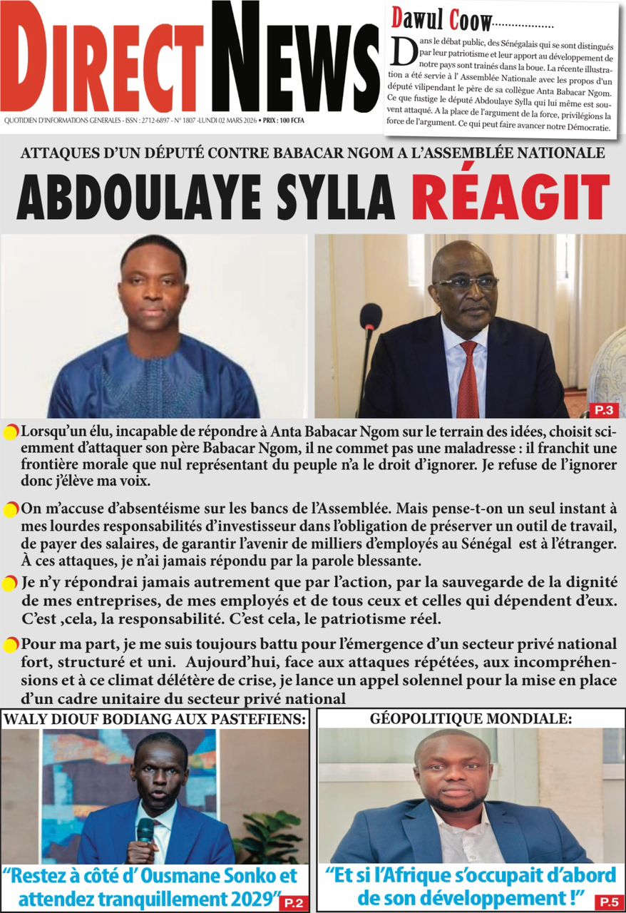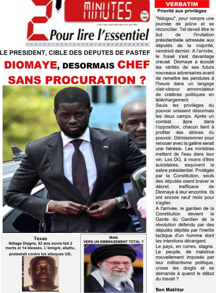 Découvrez les Unes des journaux sénégalais du lundi 02 mars 2026