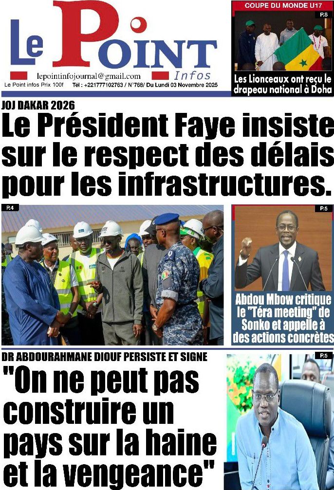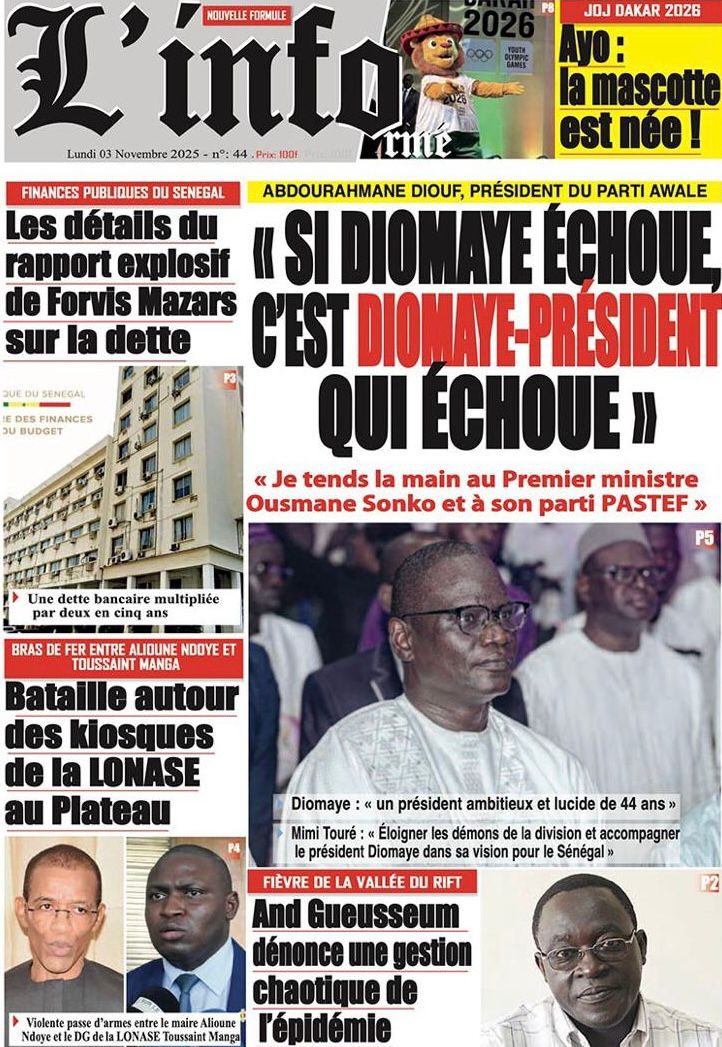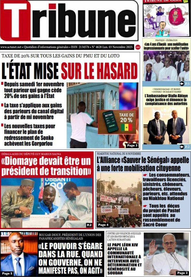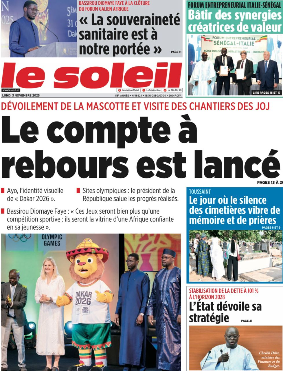 Découvrez les Unes des journaux sénégalais du lundi 03 novembre 2025