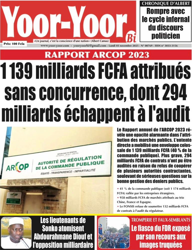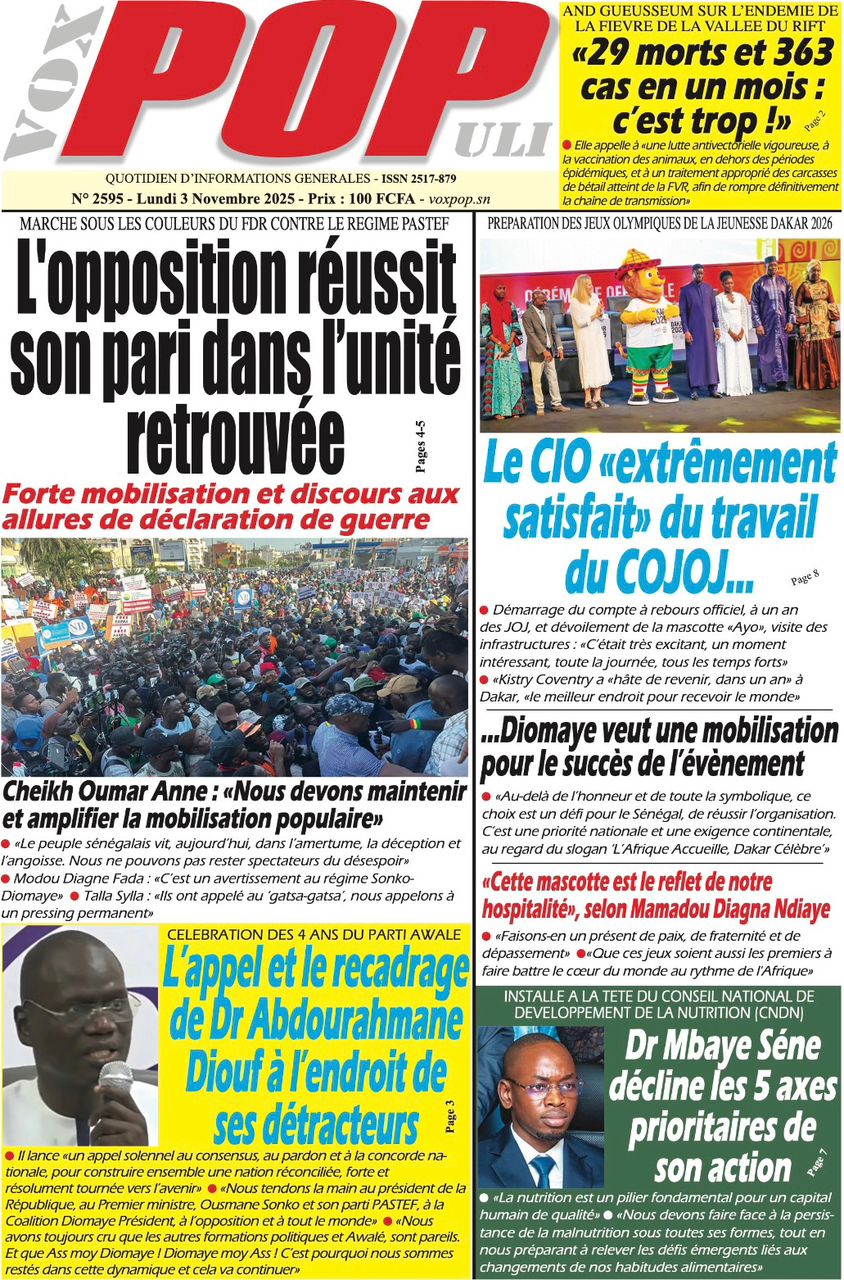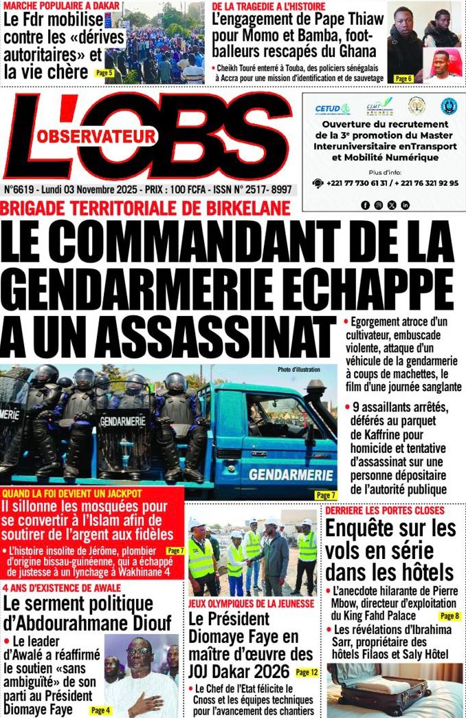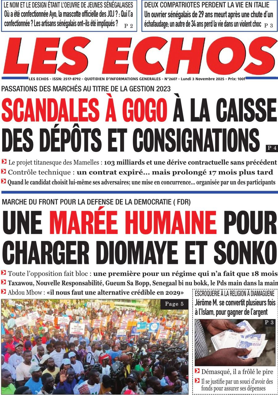 Découvrez les Unes des journaux sénégalais du lundi 03 novembre 2025
