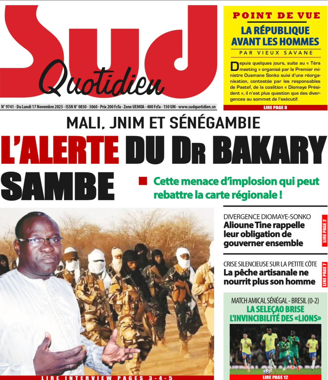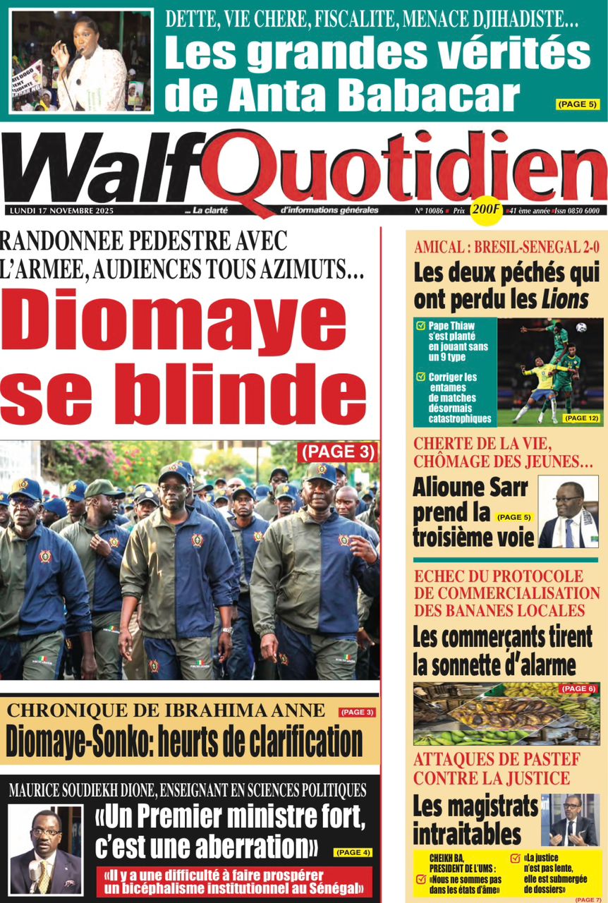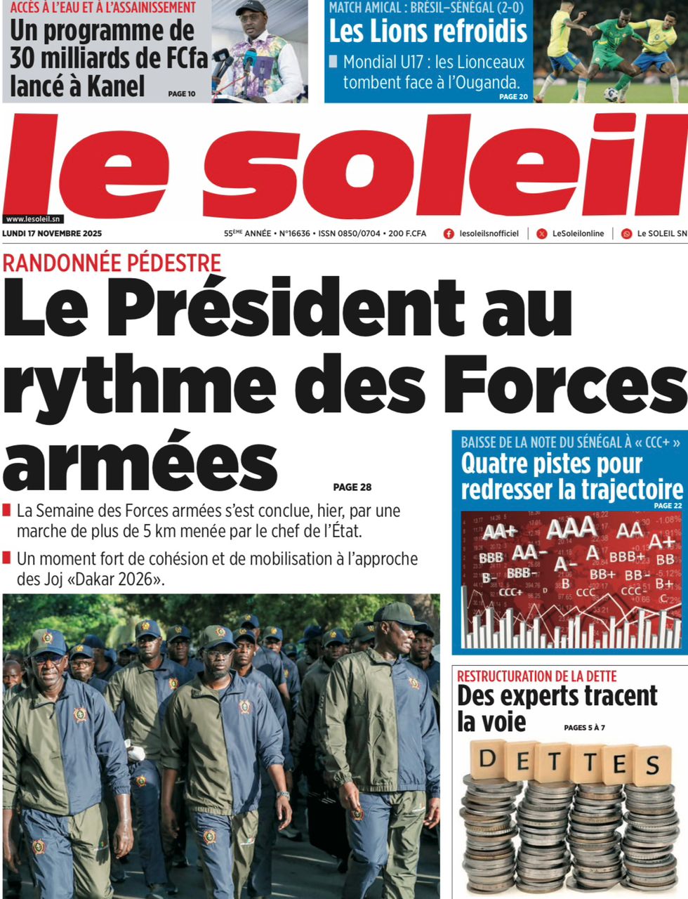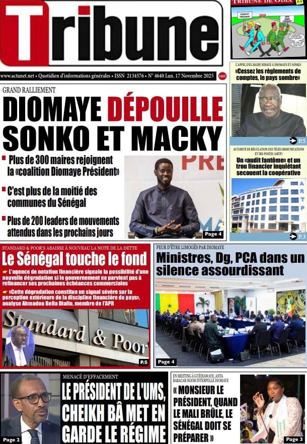 Découvrez les Unes des journaux sénégalais du lundi 17 novembre 2025