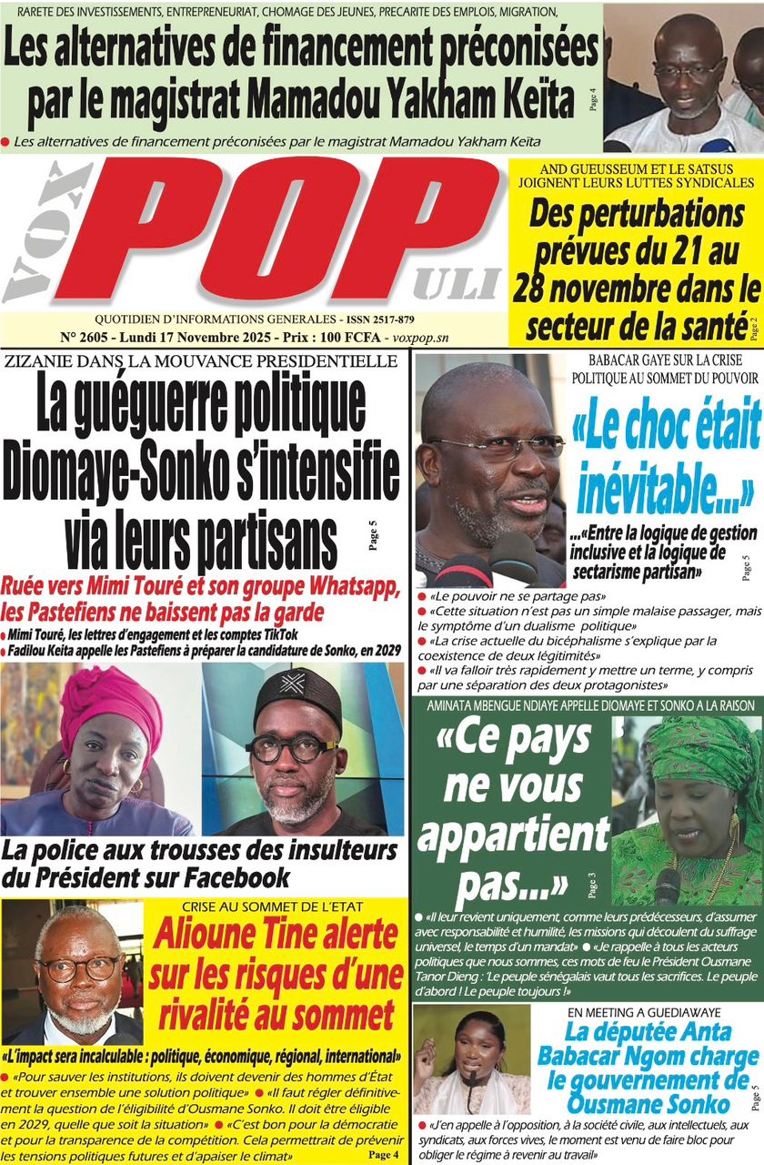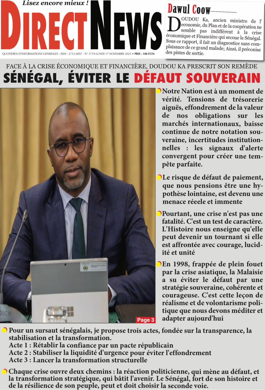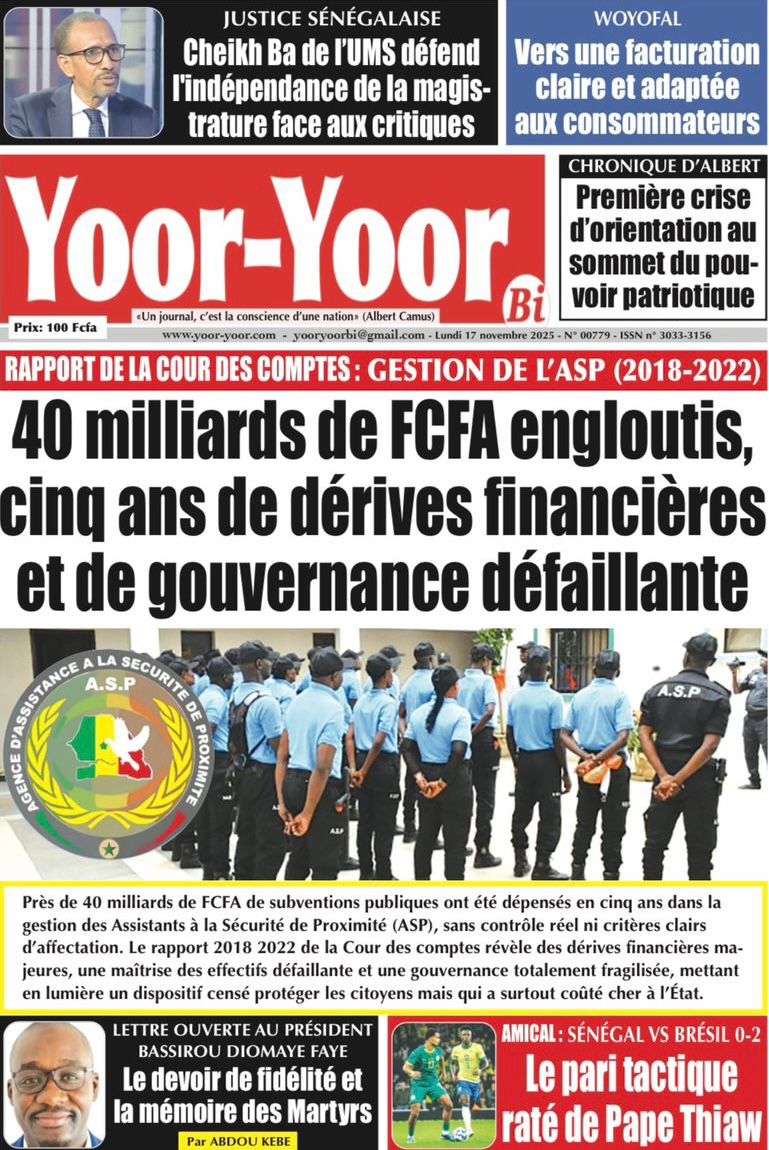 Découvrez les Unes des journaux sénégalais du lundi 17 novembre 2025
