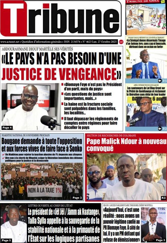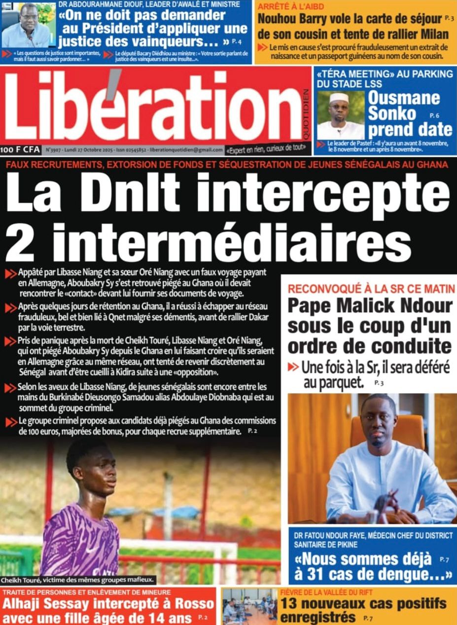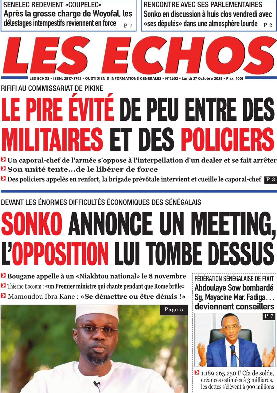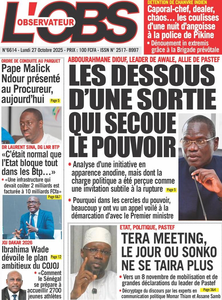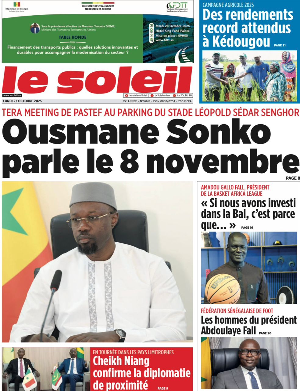 Découvrez les Unes des journaux sénégalais du lundi 27 octobre 2025