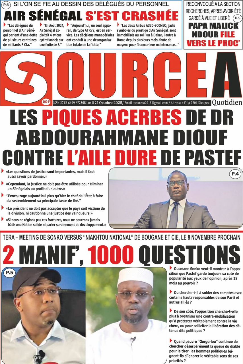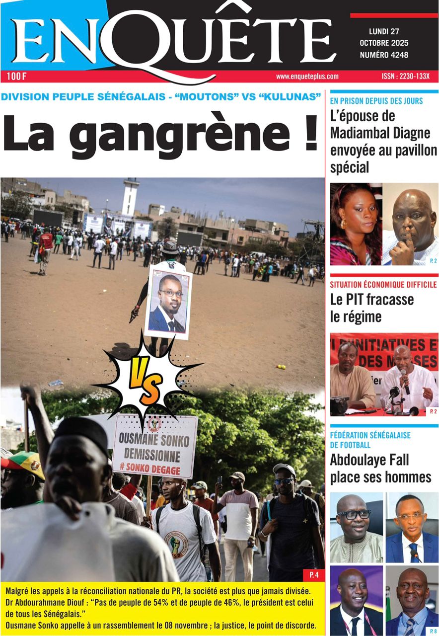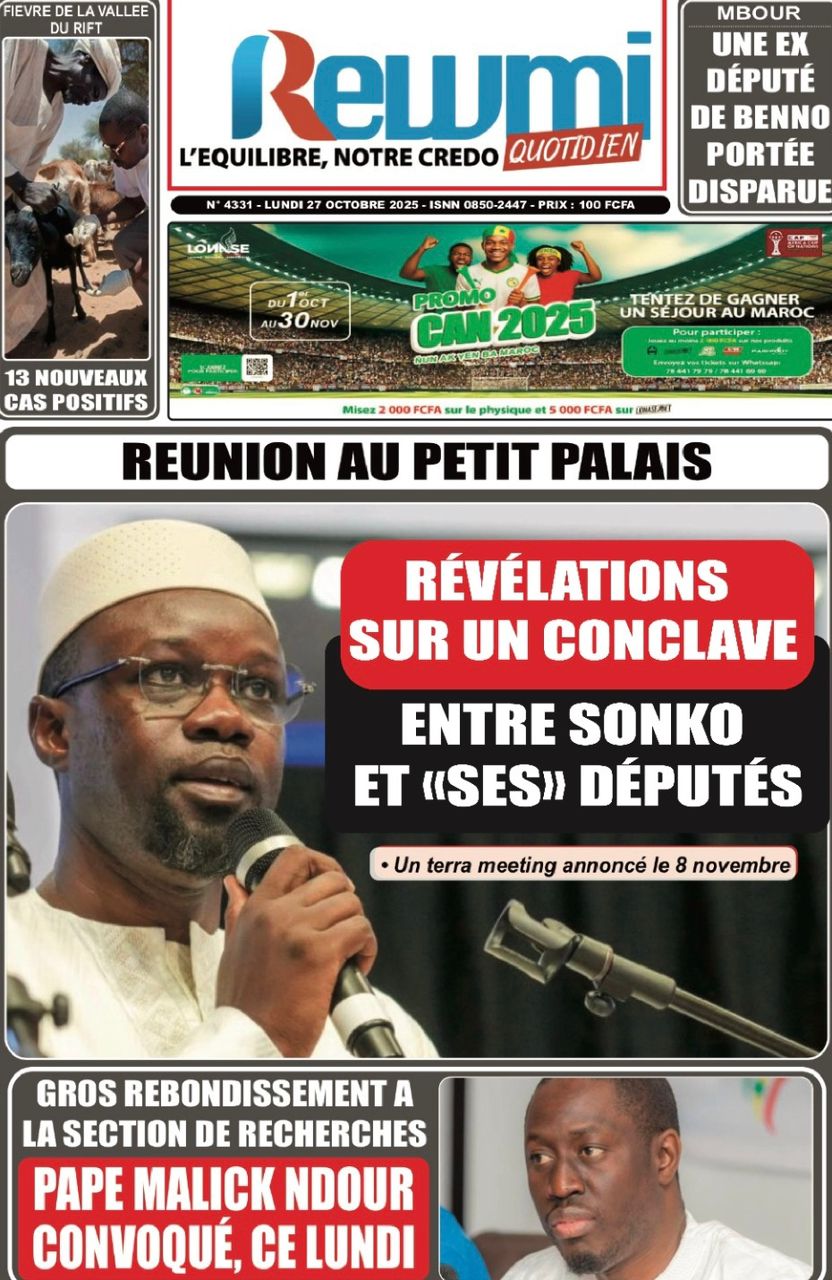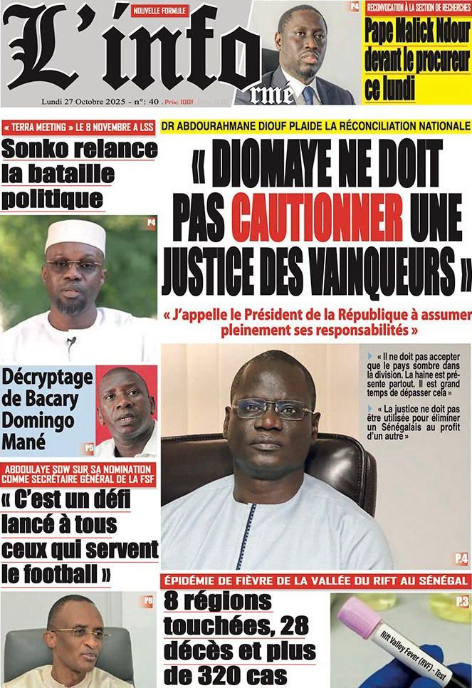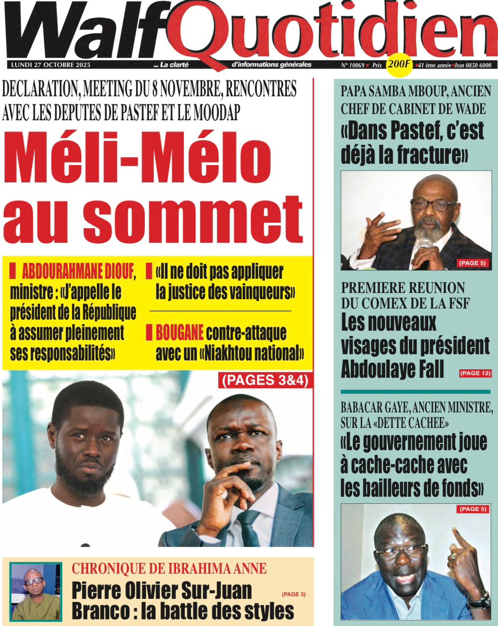Découvrez les Unes des journaux sénégalais du lundi 27 octobre 2025