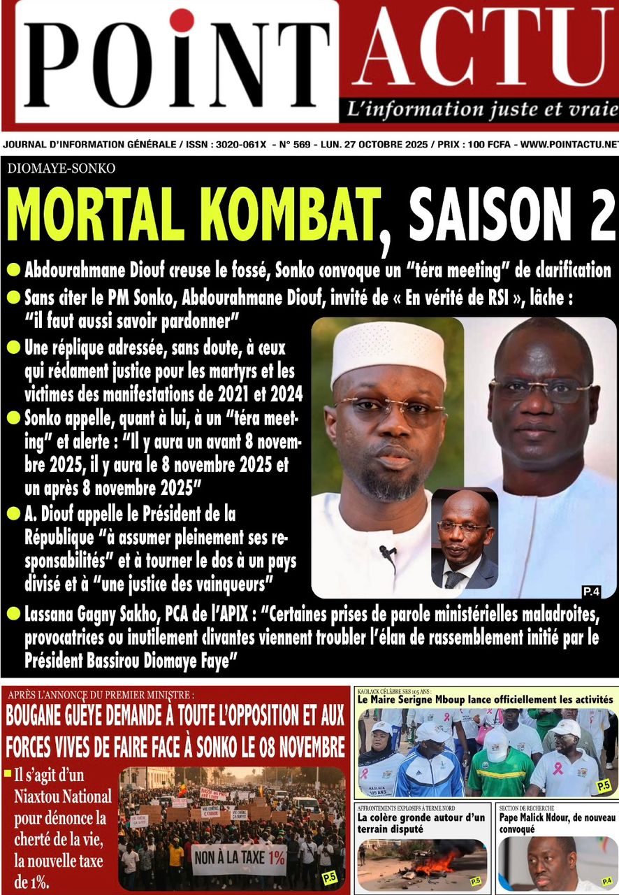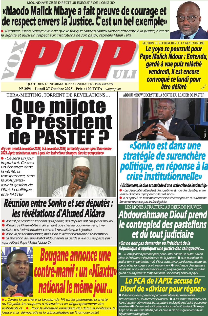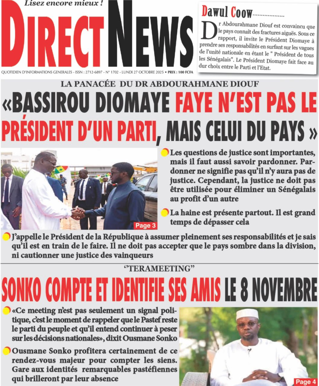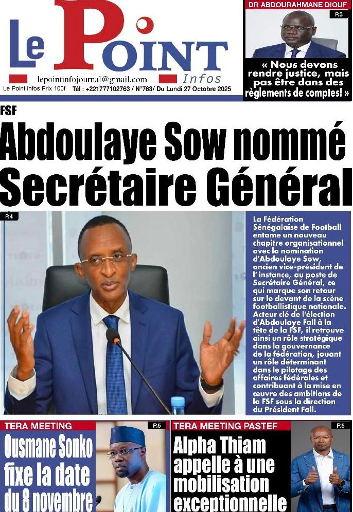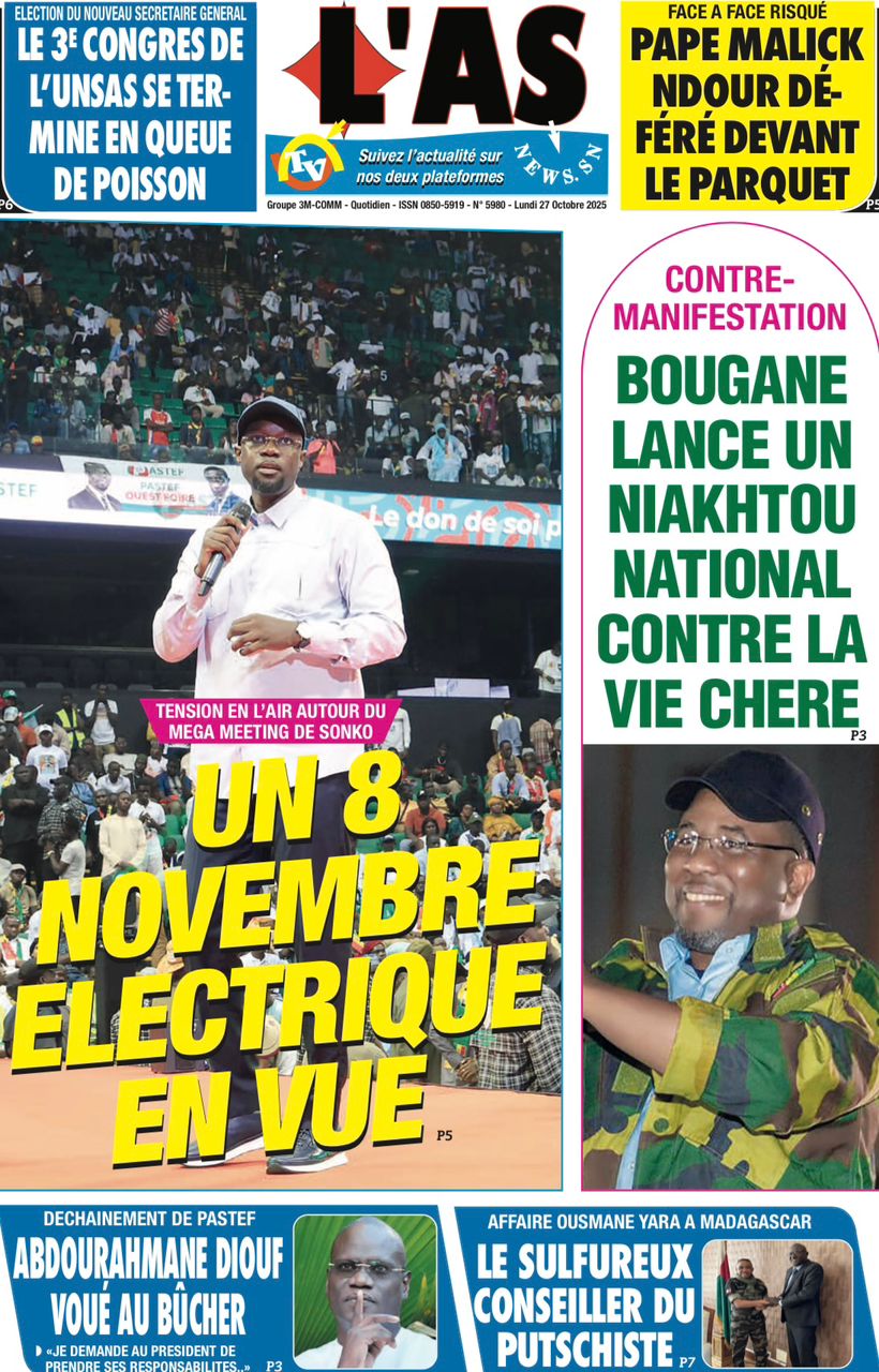 Découvrez les Unes des journaux sénégalais du lundi 27 octobre 2025