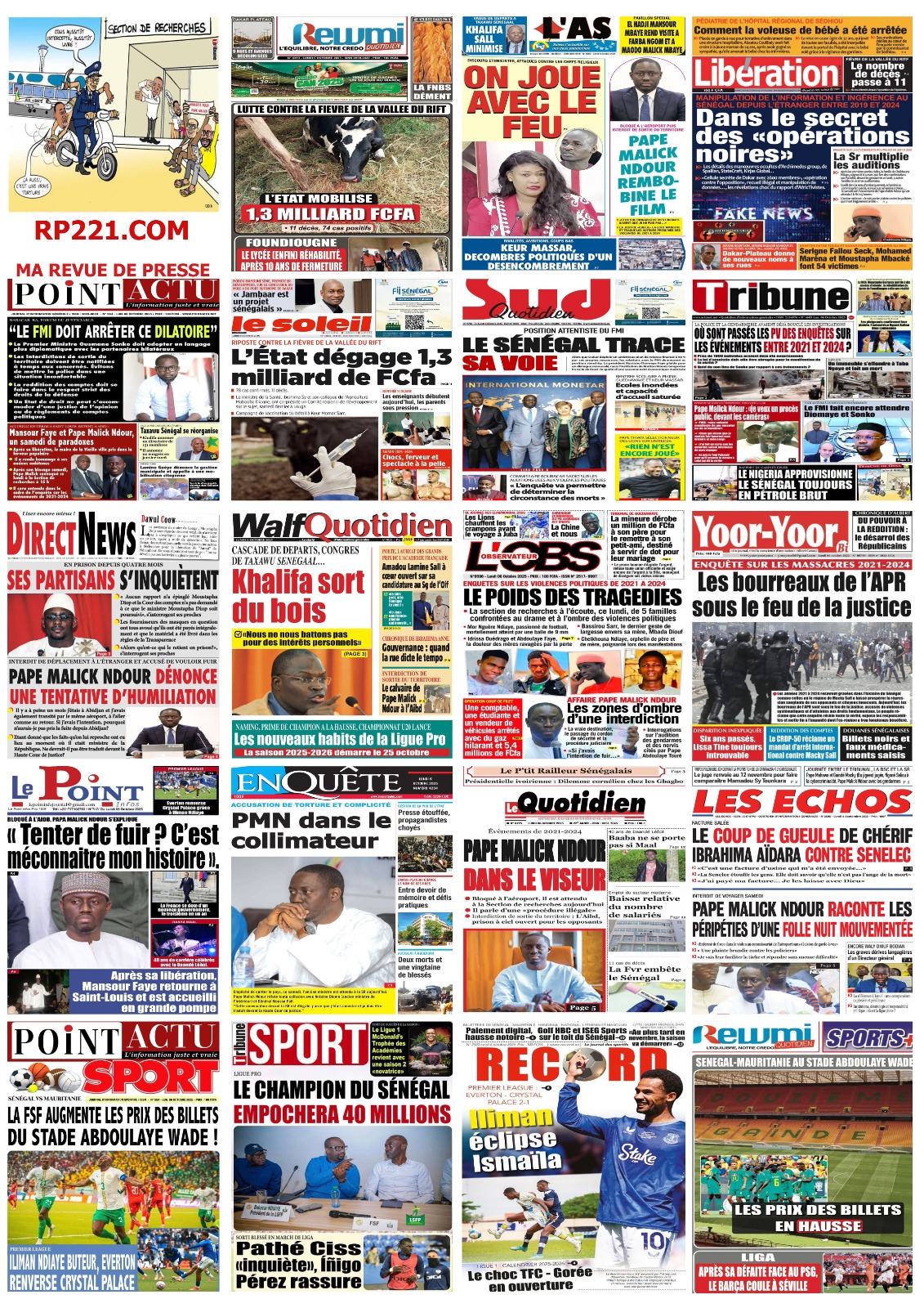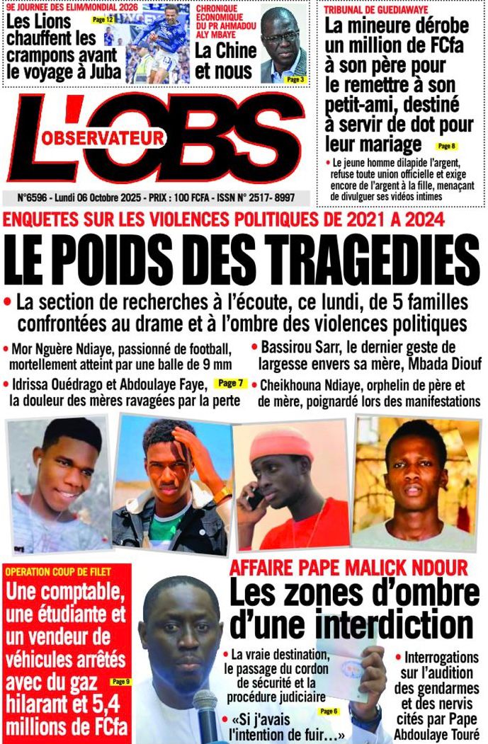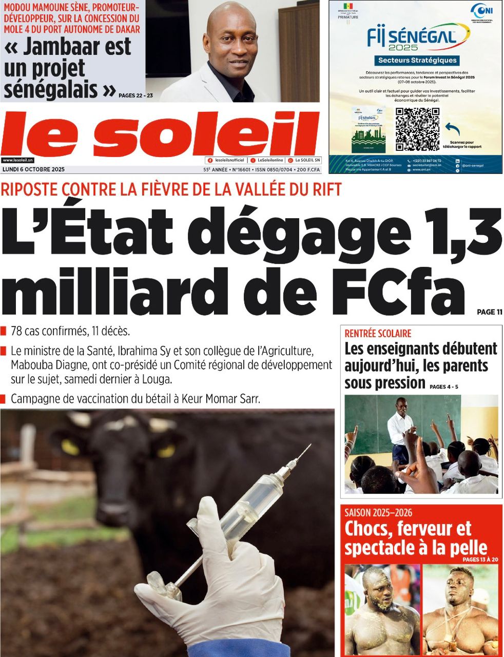 Découvrez les Unes des journaux sénégalais du lundi 6 octobre 2025