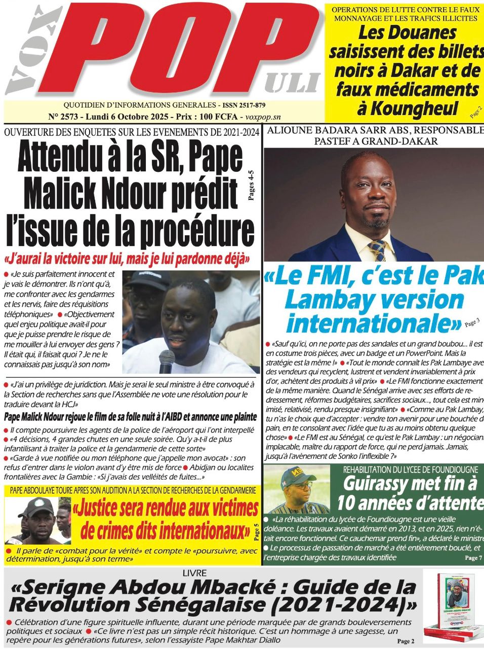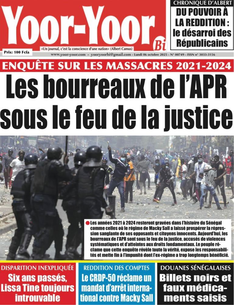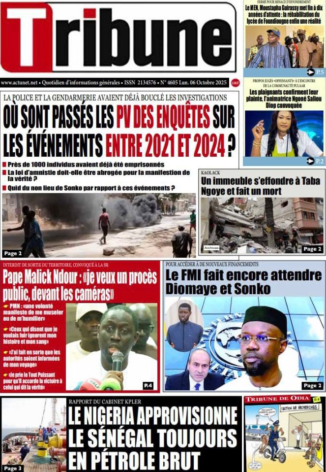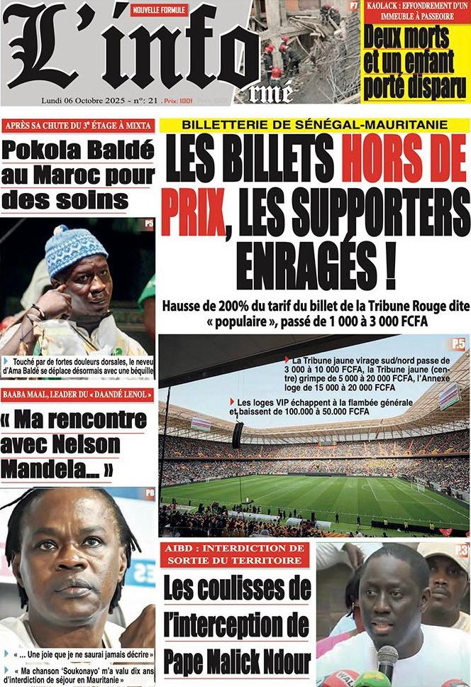 Découvrez les Unes des journaux sénégalais du lundi 6 octobre 2025