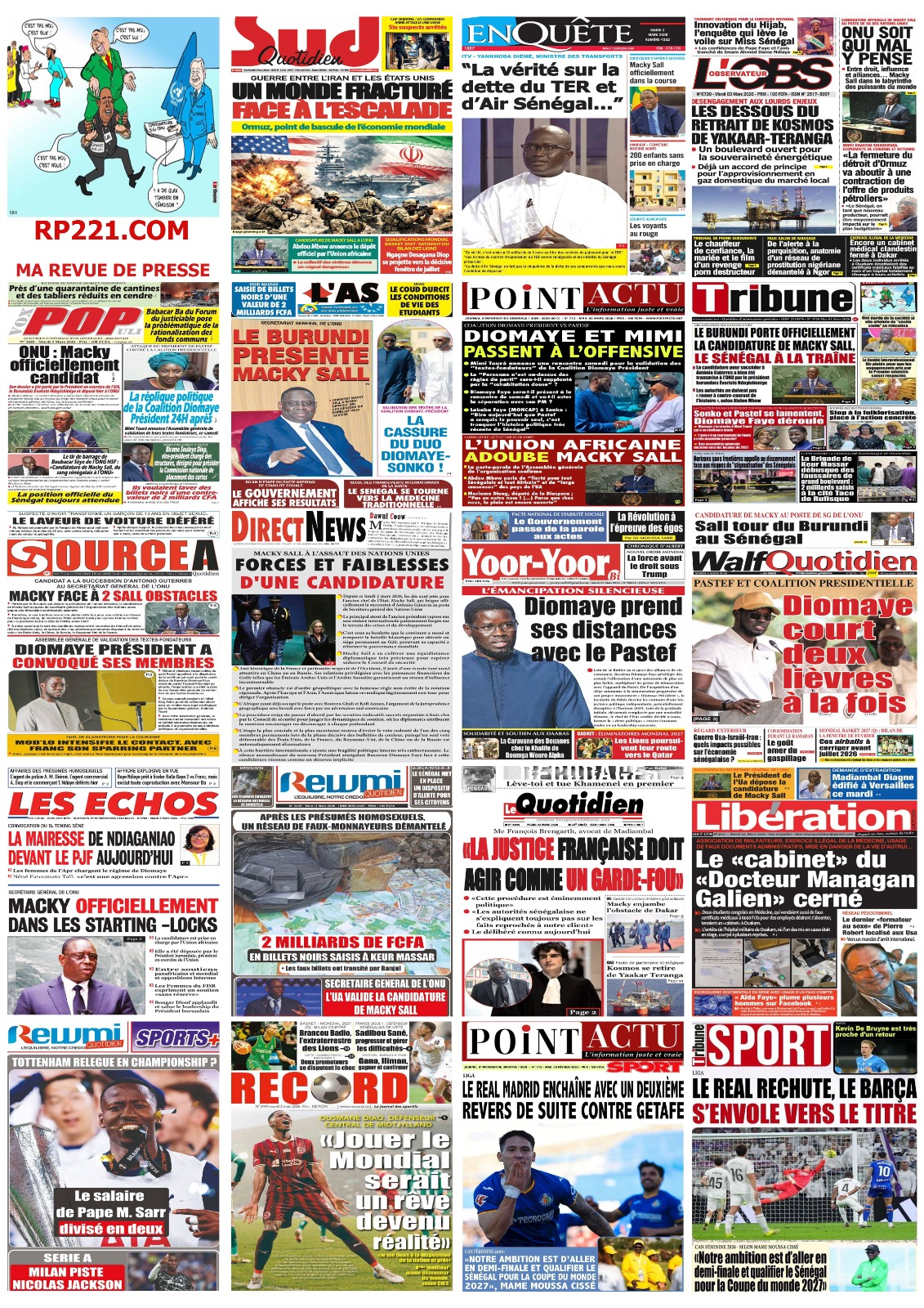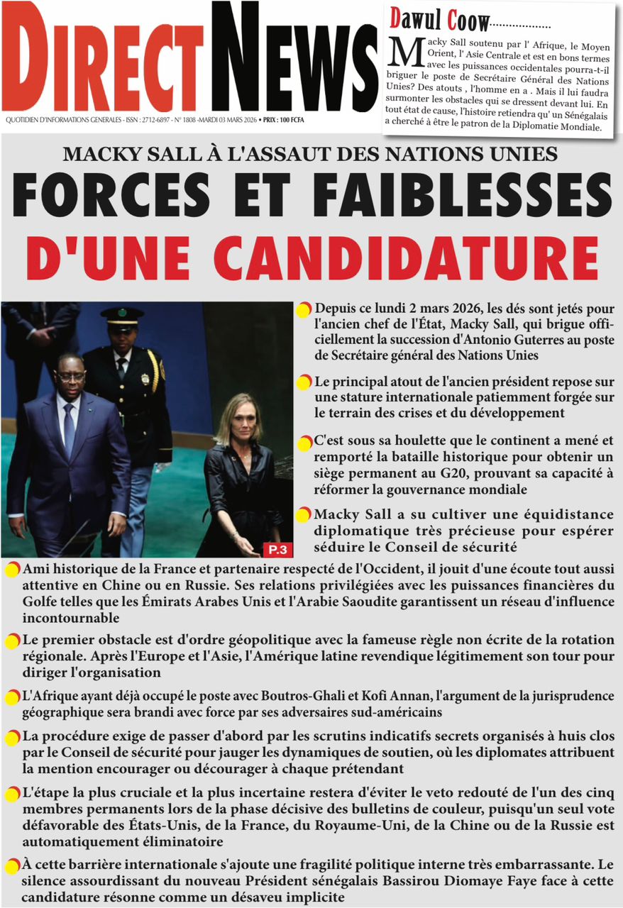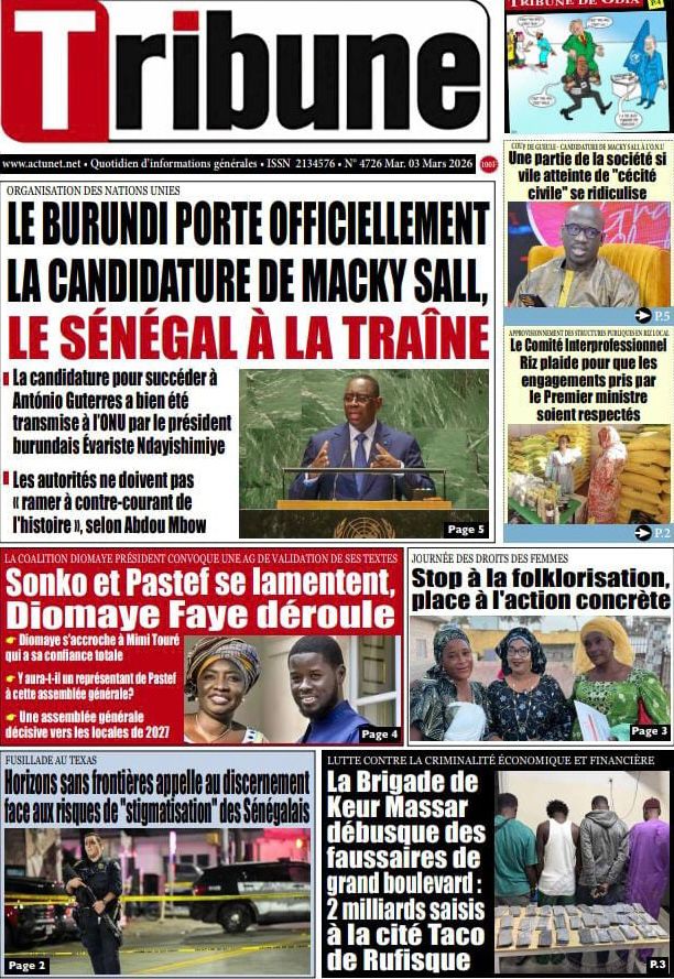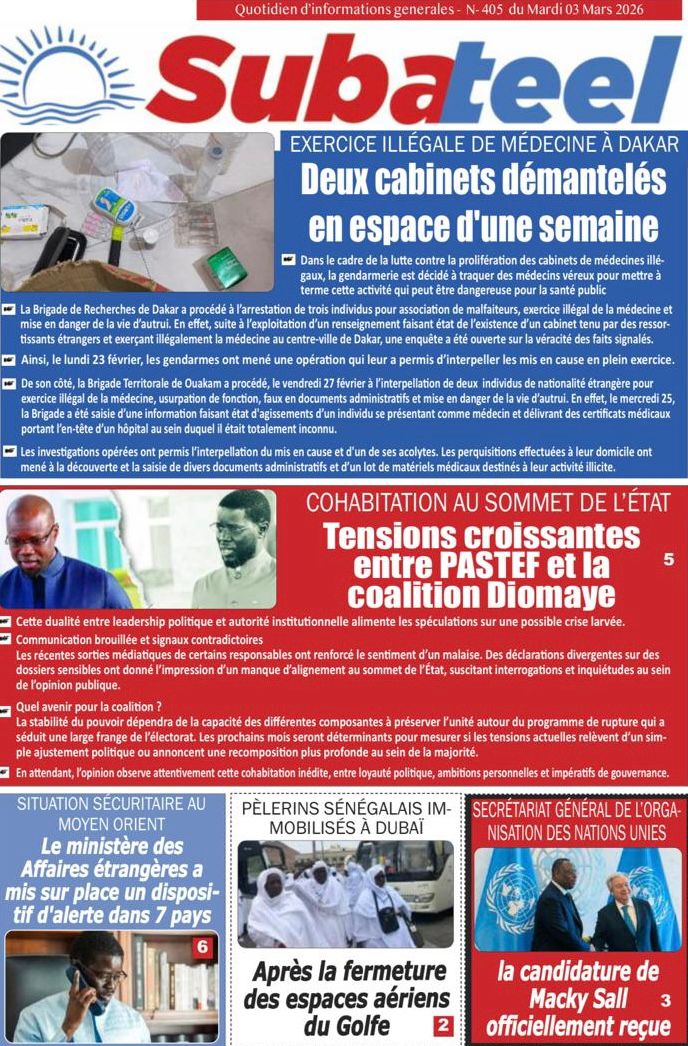 Découvrez les Unes des journaux sénégalais du mardi 03 mars 2026