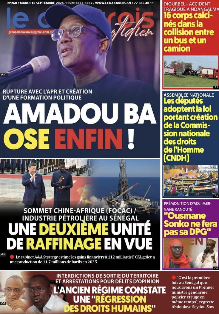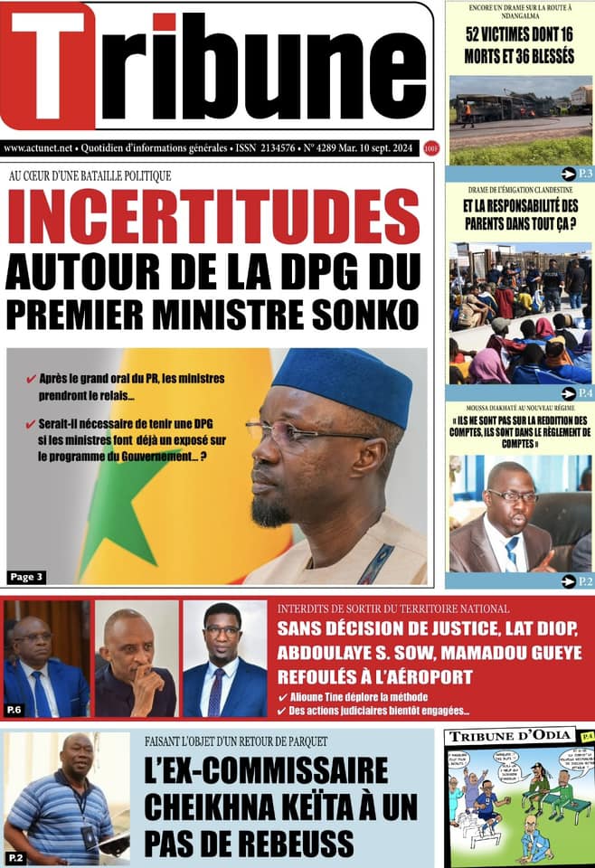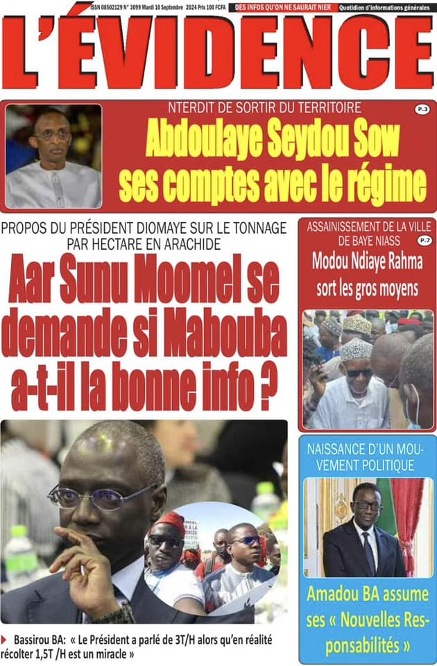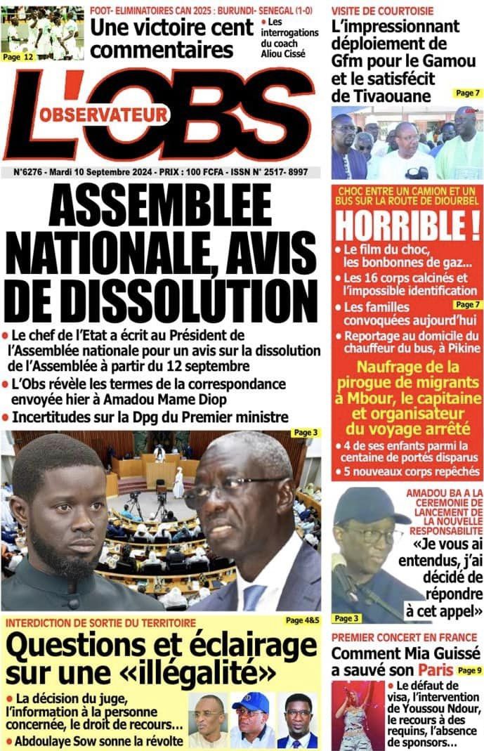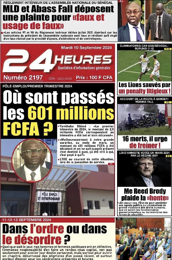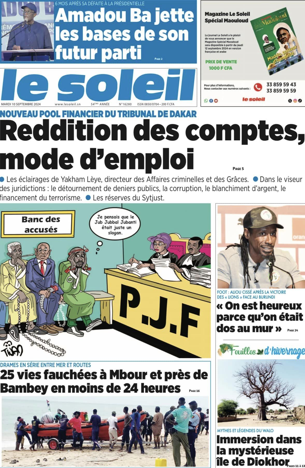 Découvrez les Unes des journaux sénégalais du mardi 10 septembre 2024