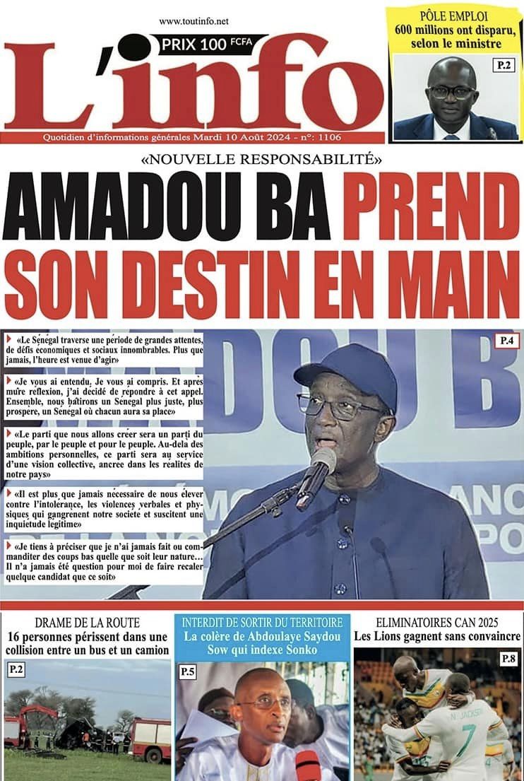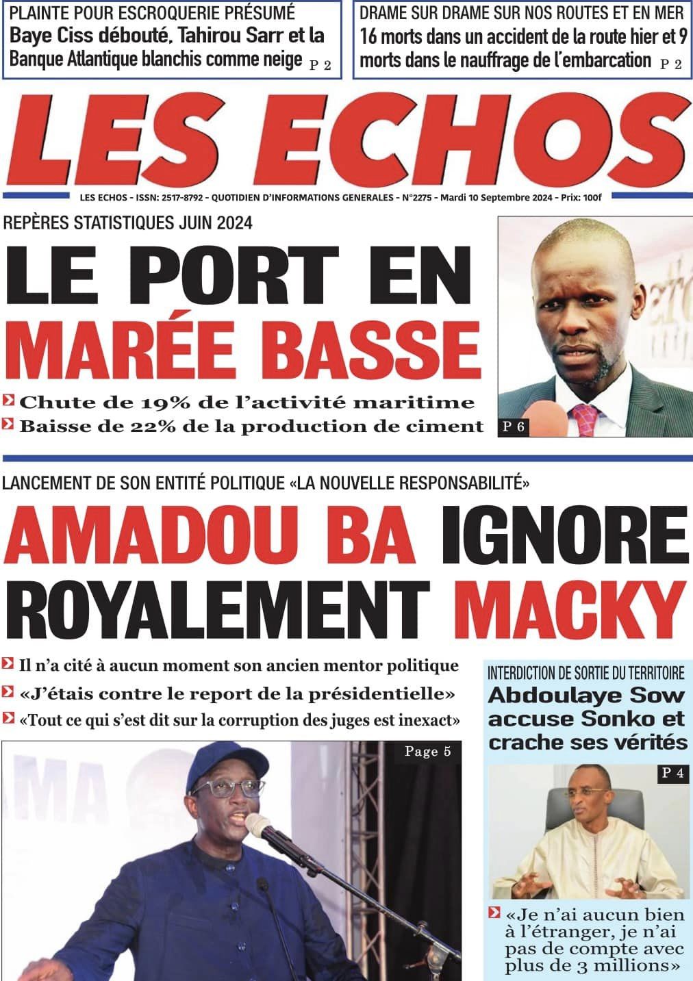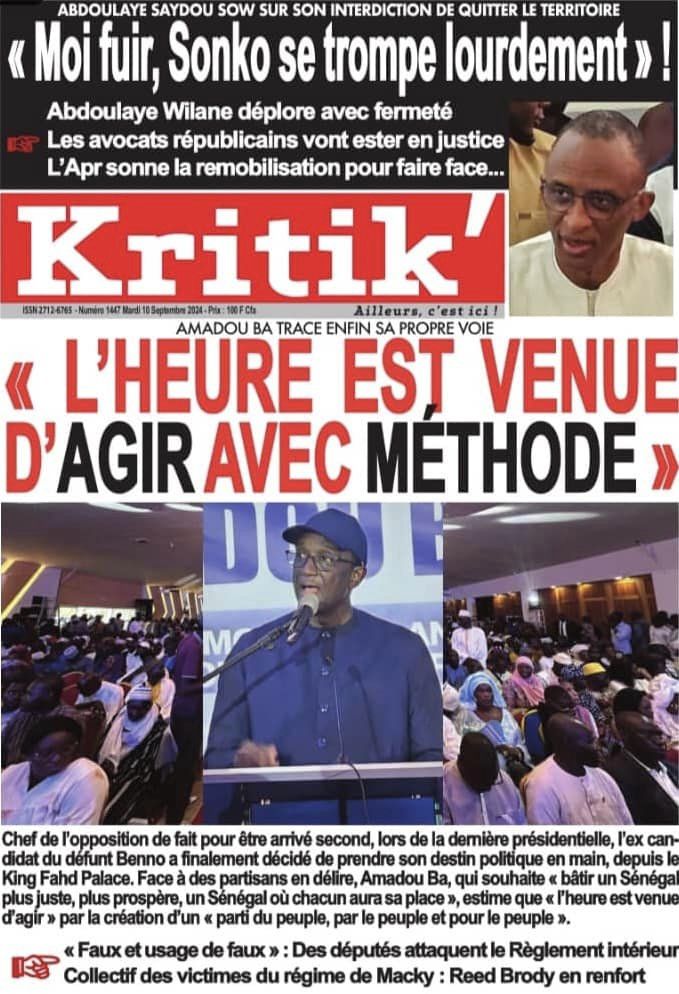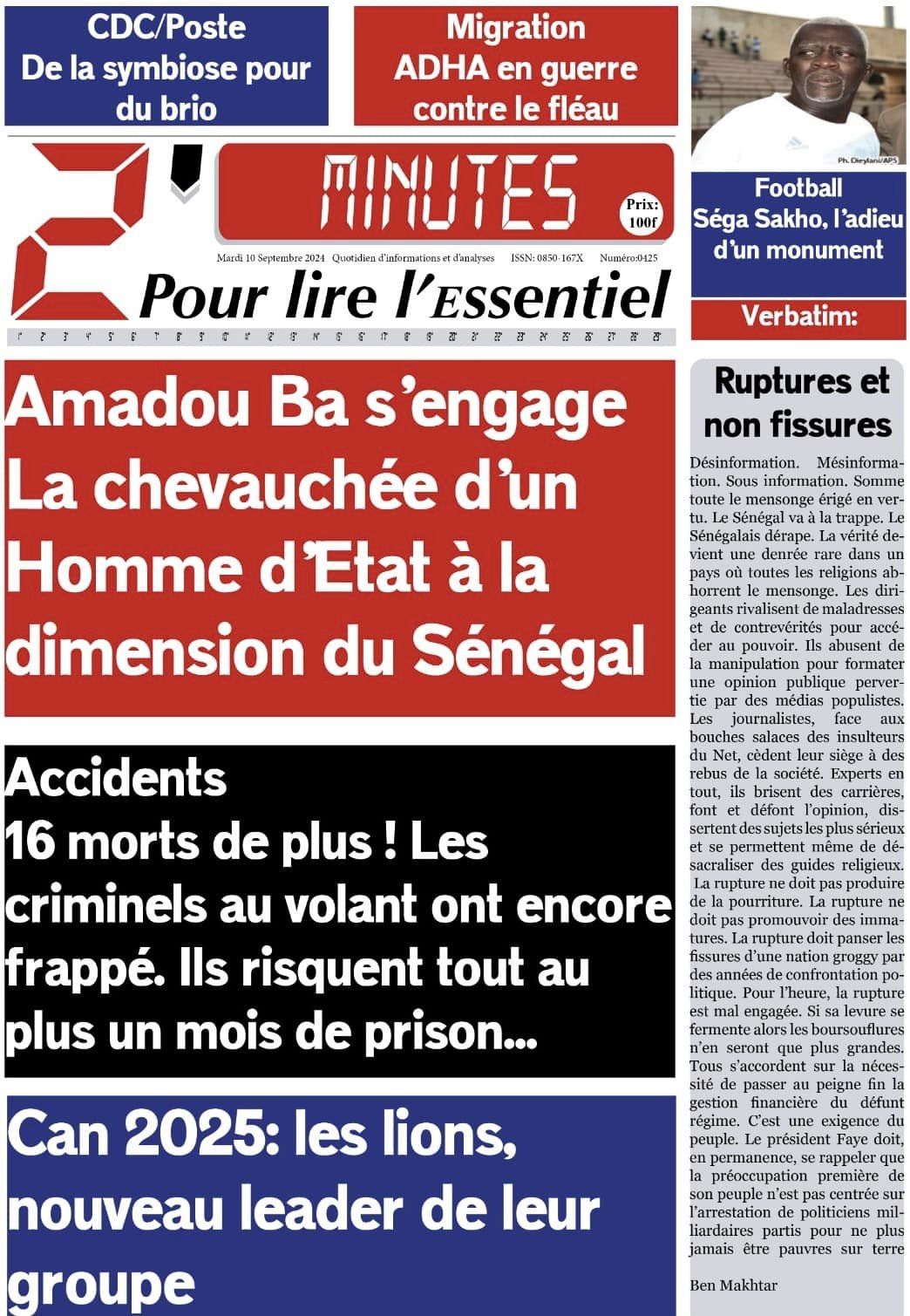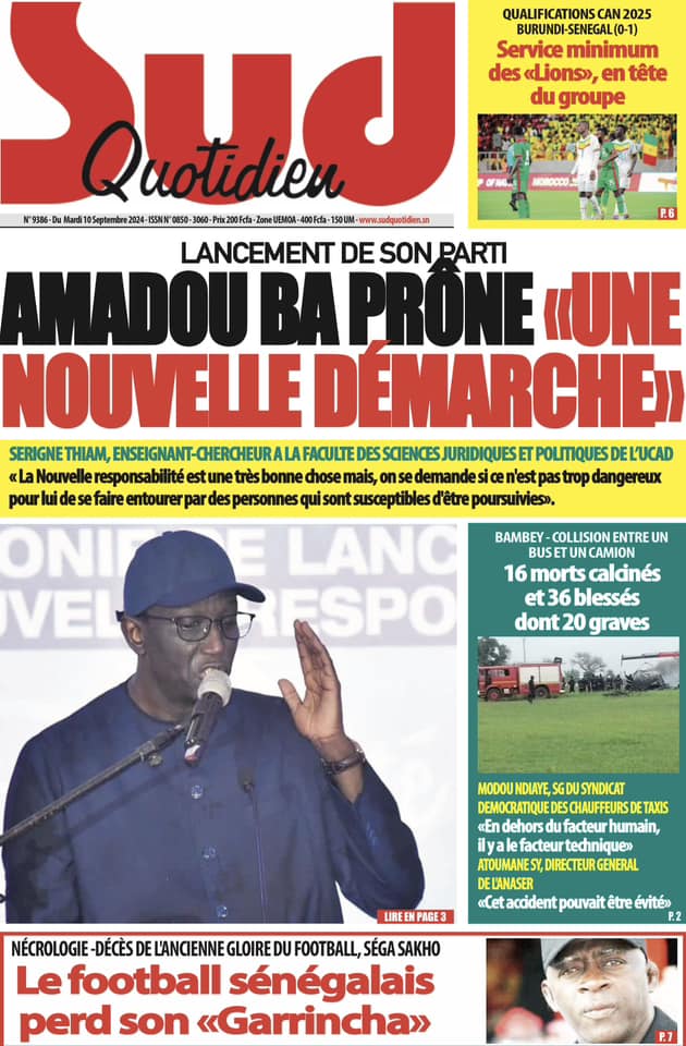 Découvrez les Unes des journaux sénégalais du mardi 10 septembre 2024
