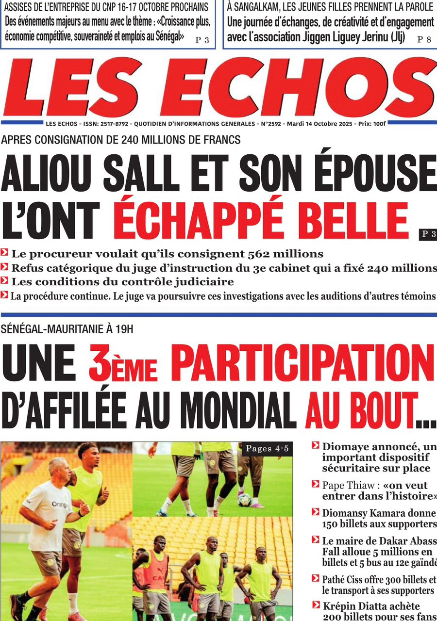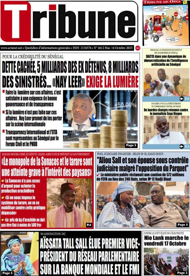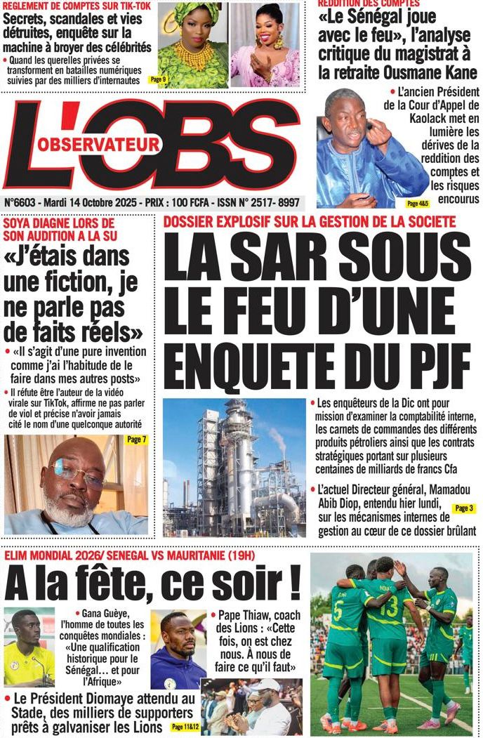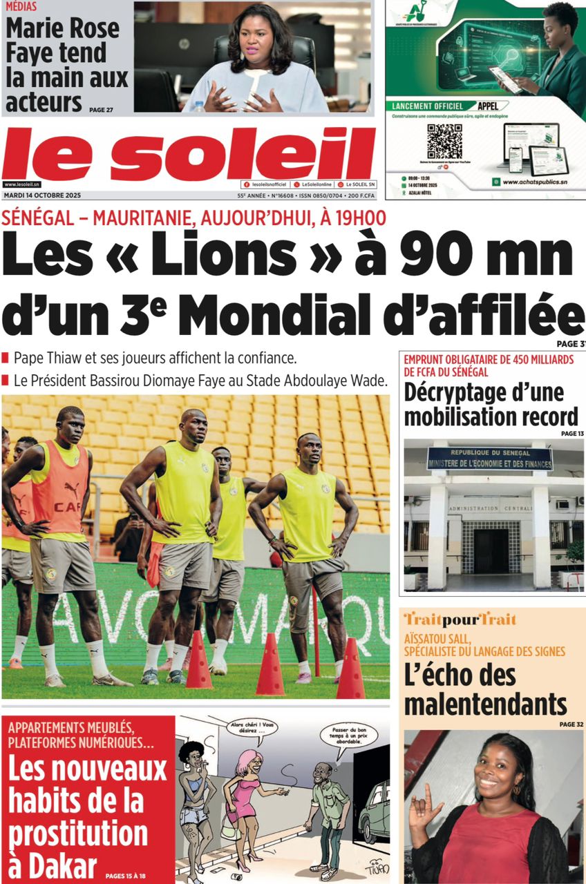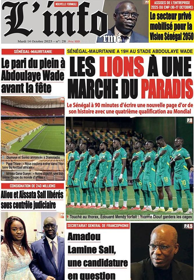 Découvrez les Unes des journaux sénégalais du mardi 14 octobre 2025
